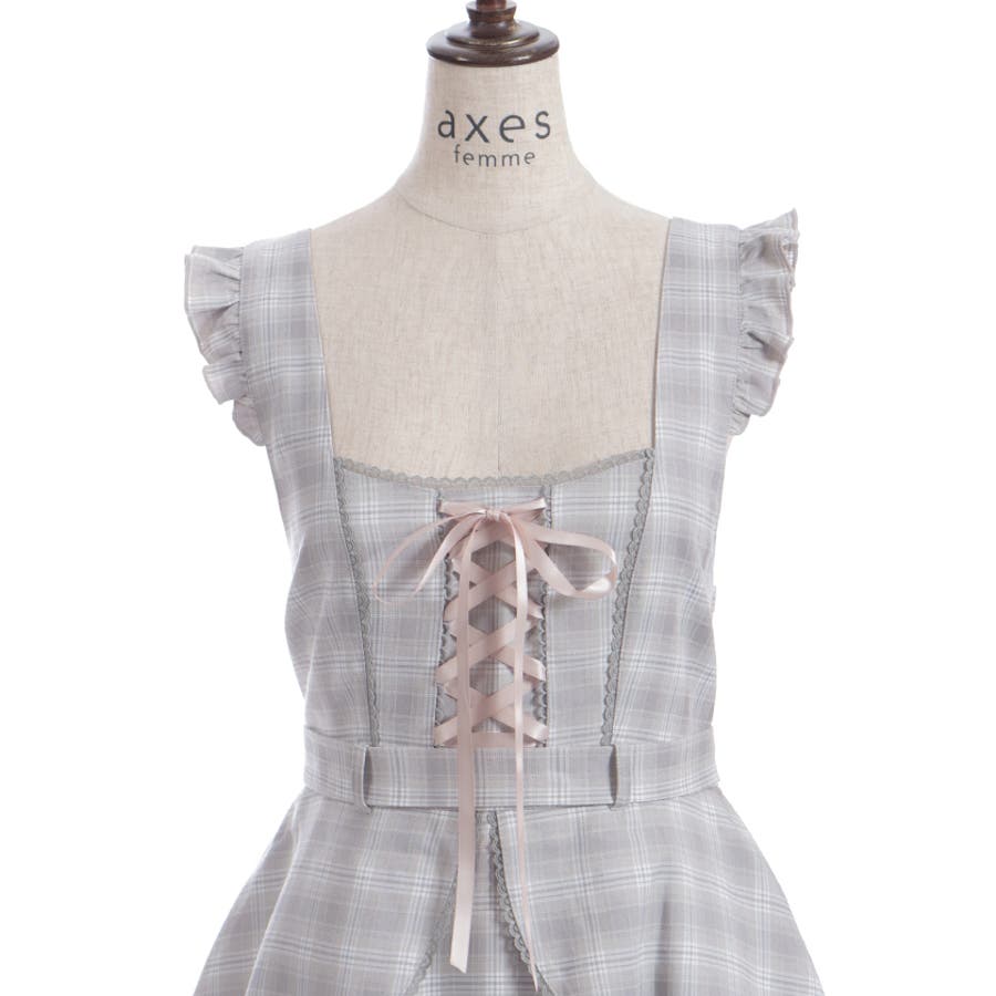 フロントのレースアップリボンがポイントになり、上品な甘さをプラス。