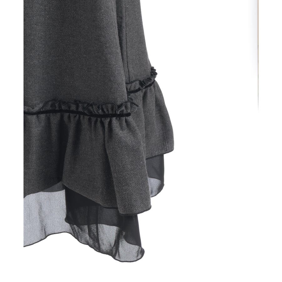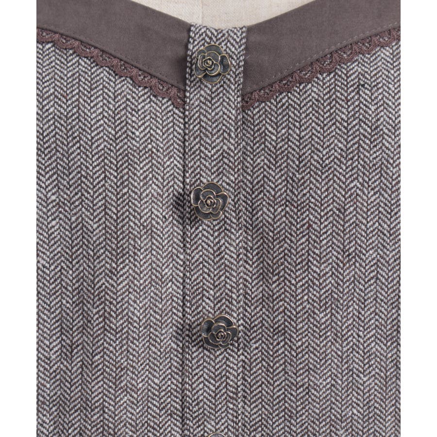ヘリンボン素材を使用した、季節感たっぷりのジャンスカ。ほどよいハリ感と落ち着いた表情が上品で、クラシカルなムードを纏った一枚です。