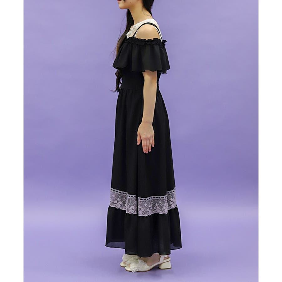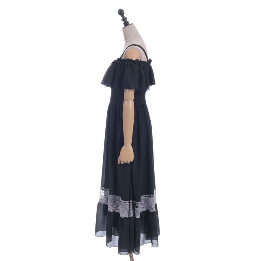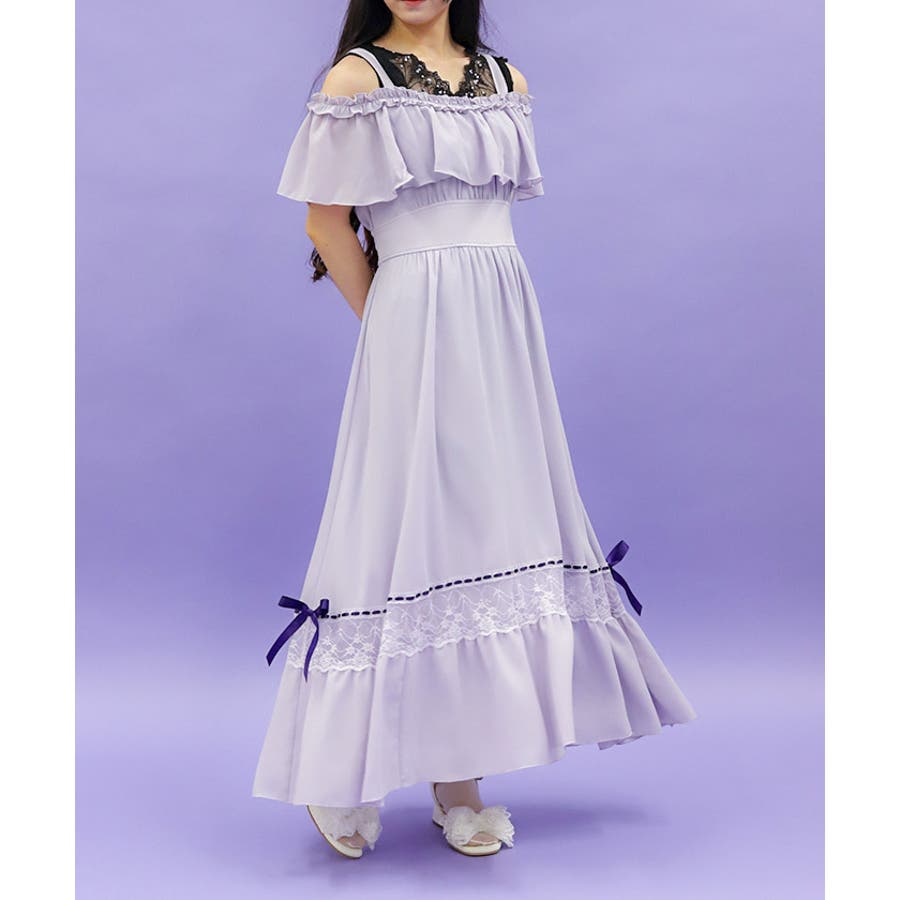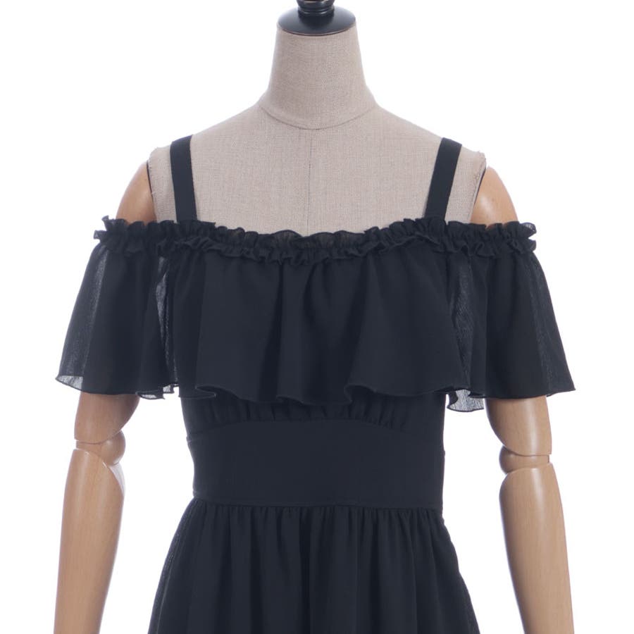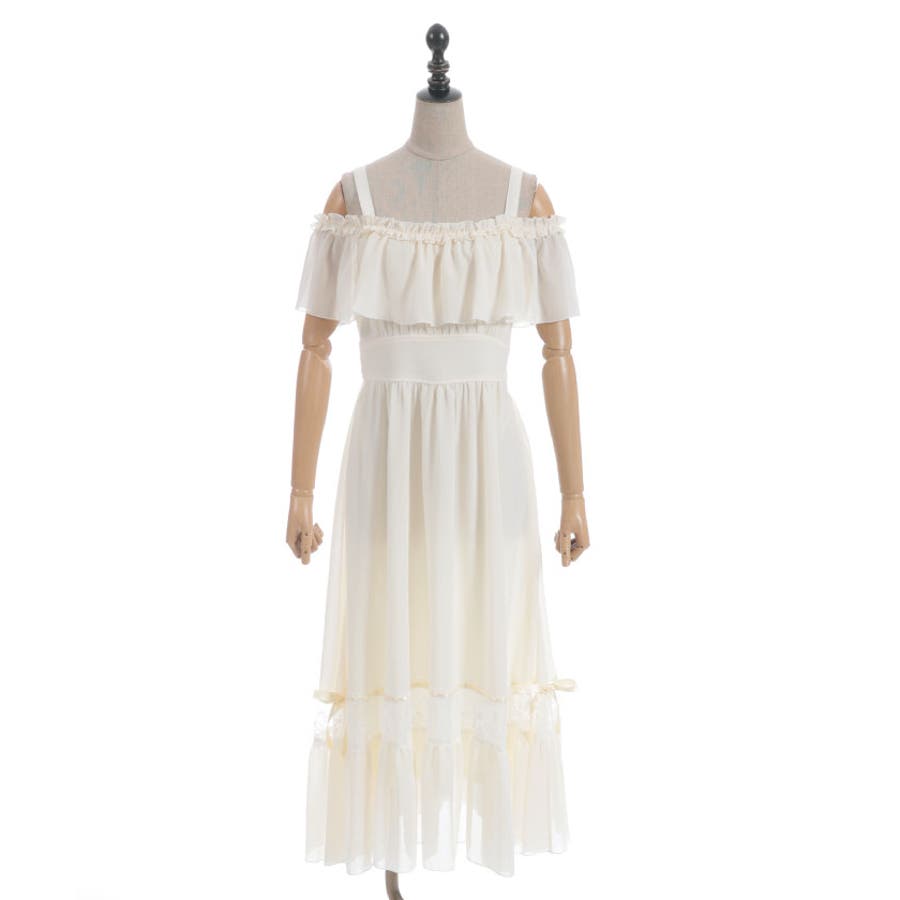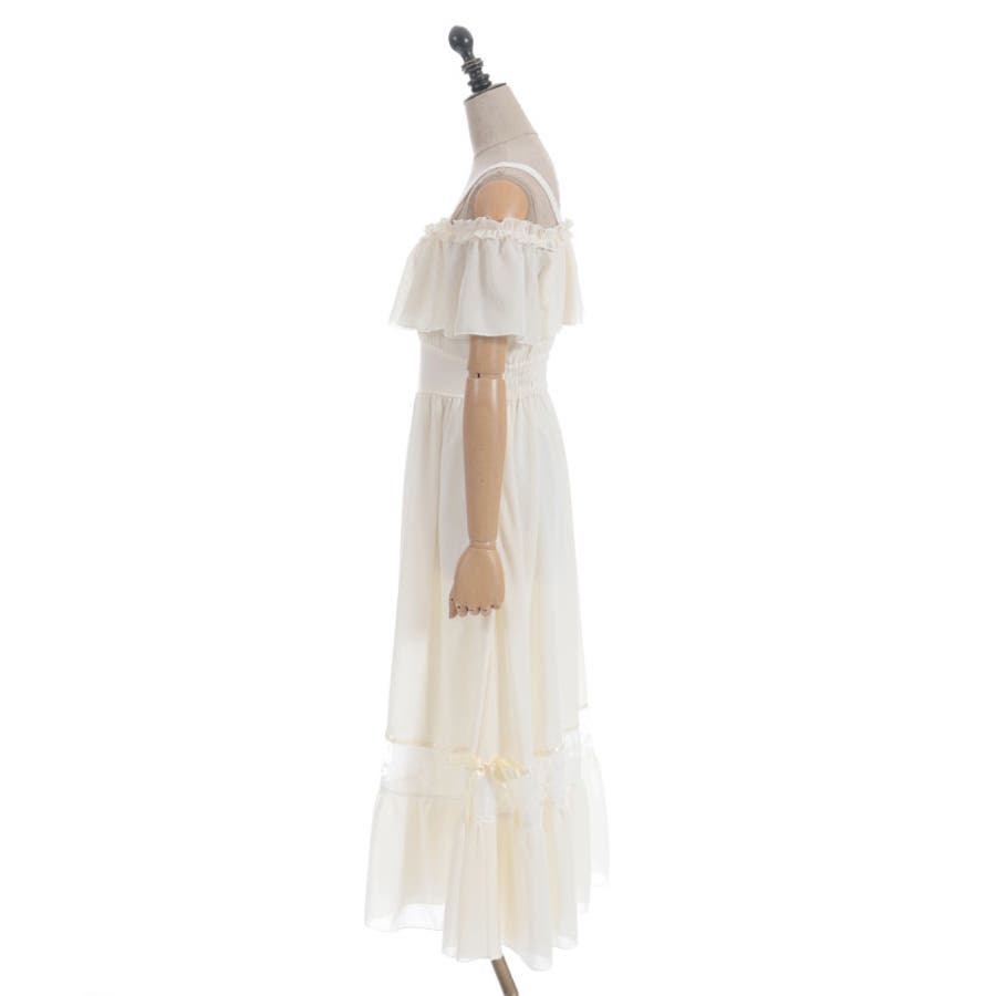 オフショルフリルロングワンピース