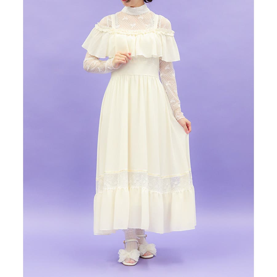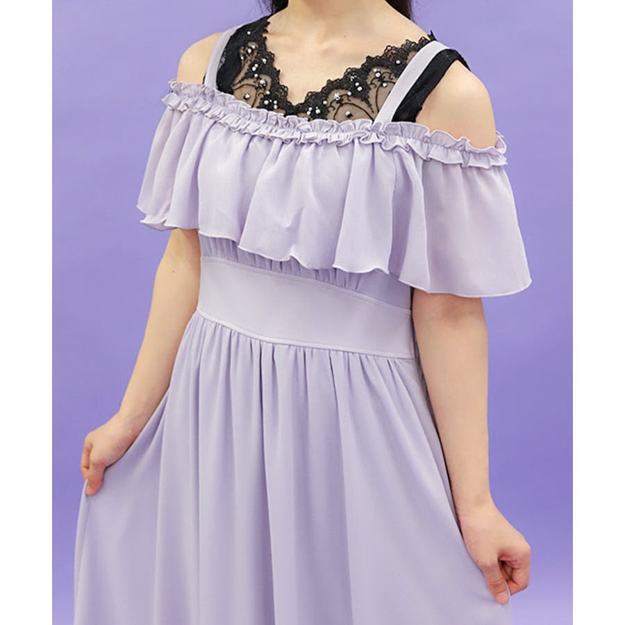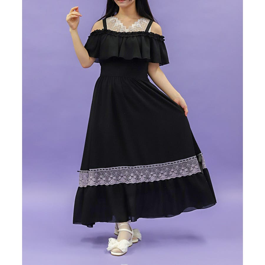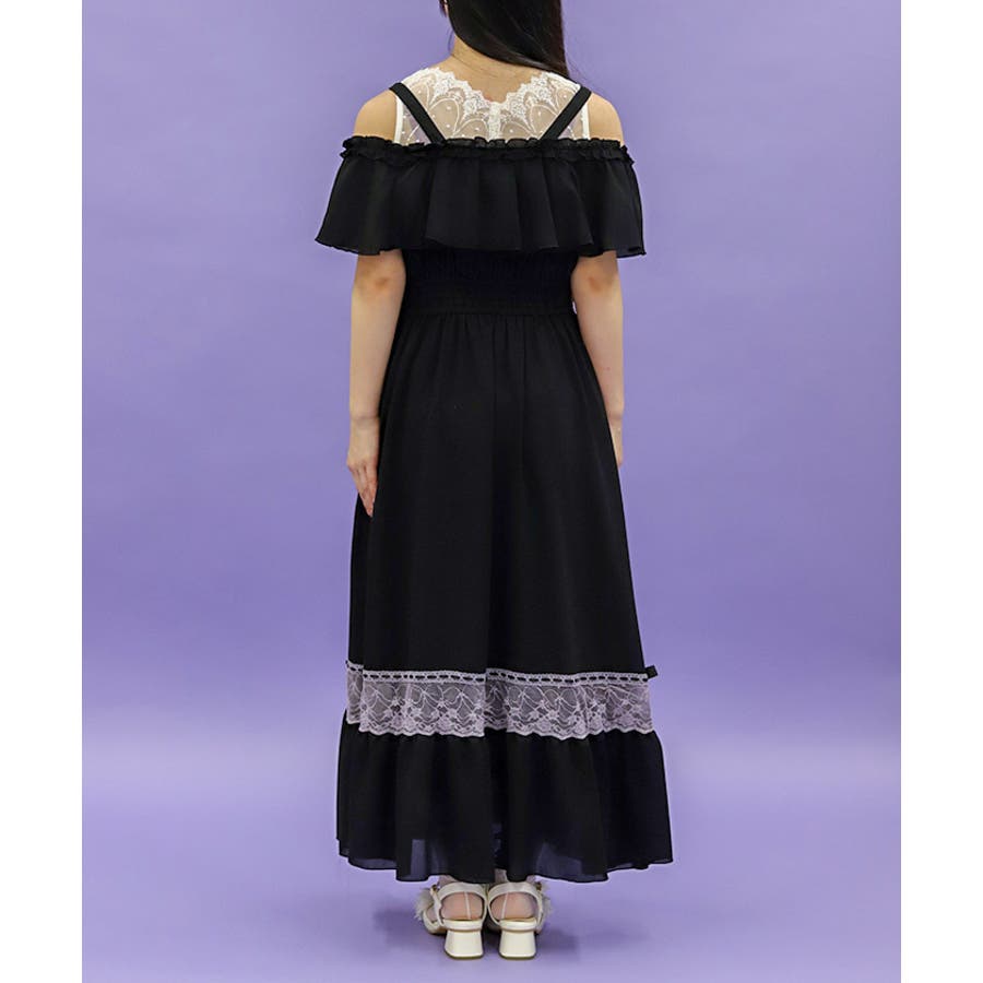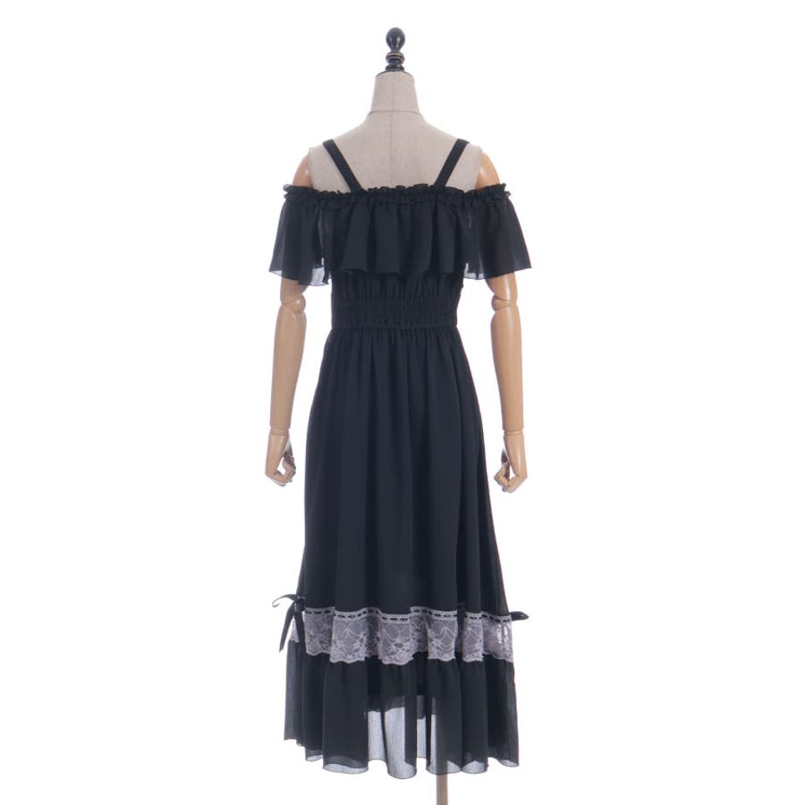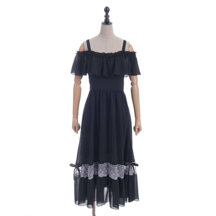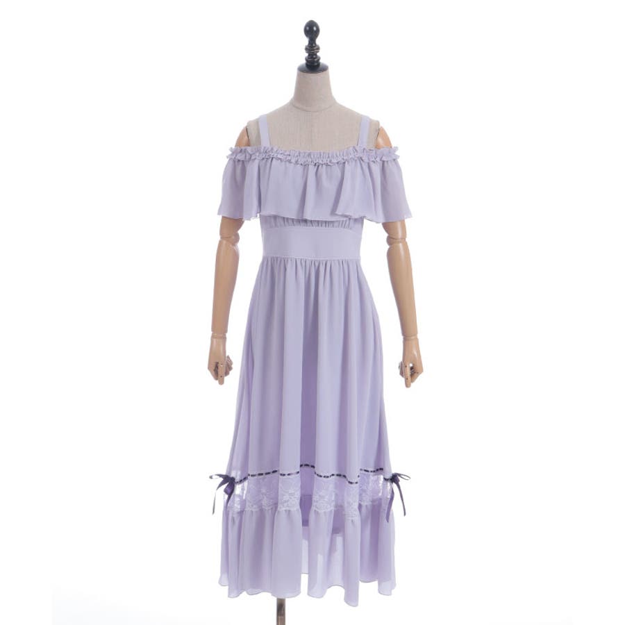 オフショルフリルロングワンピース