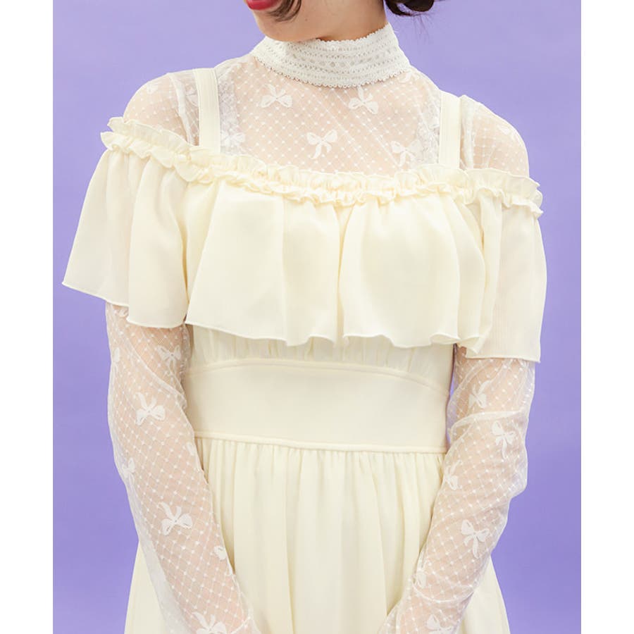 キュートさもありつつオフショルデザインでフェミニンな印象に。