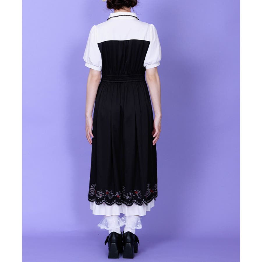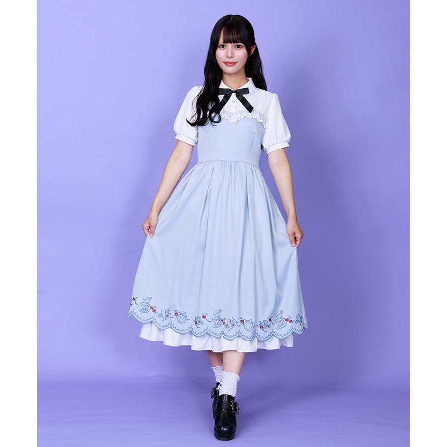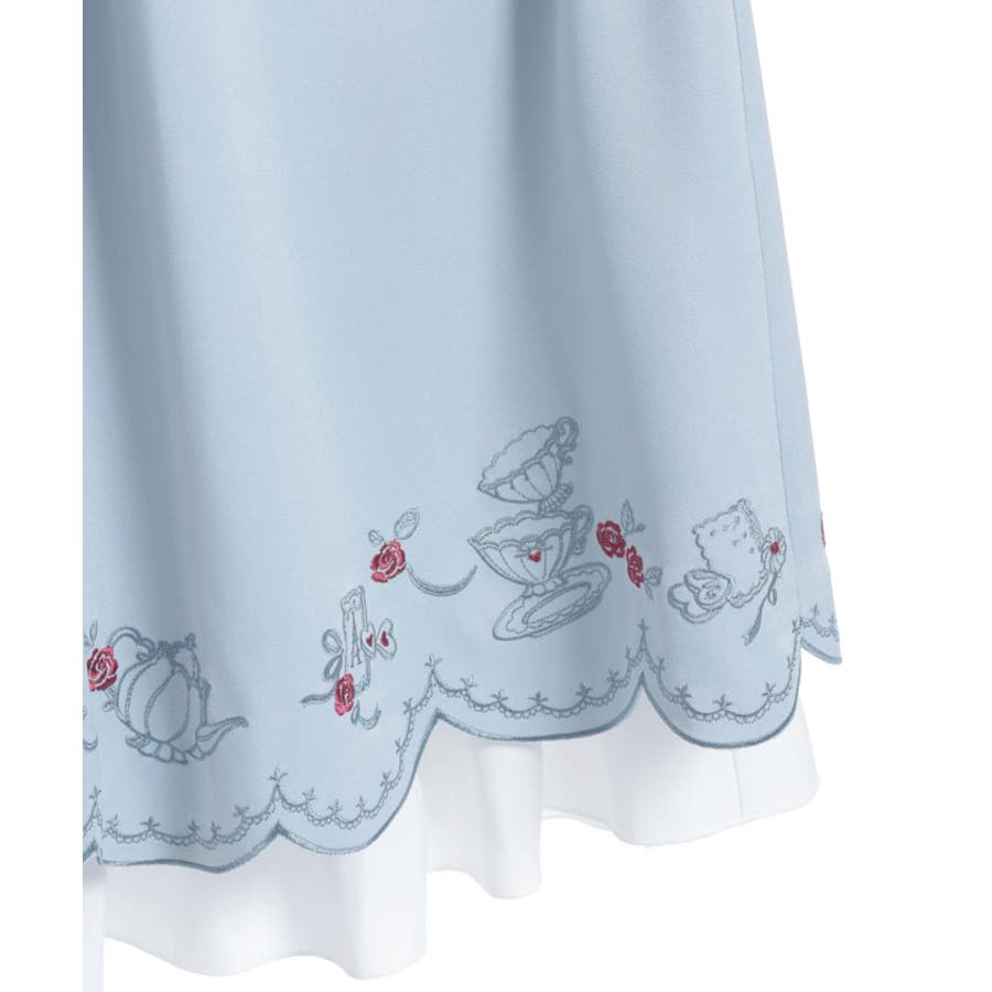 裾にお茶会のシーンをイメージした刺繍をあしらったワンピースです。