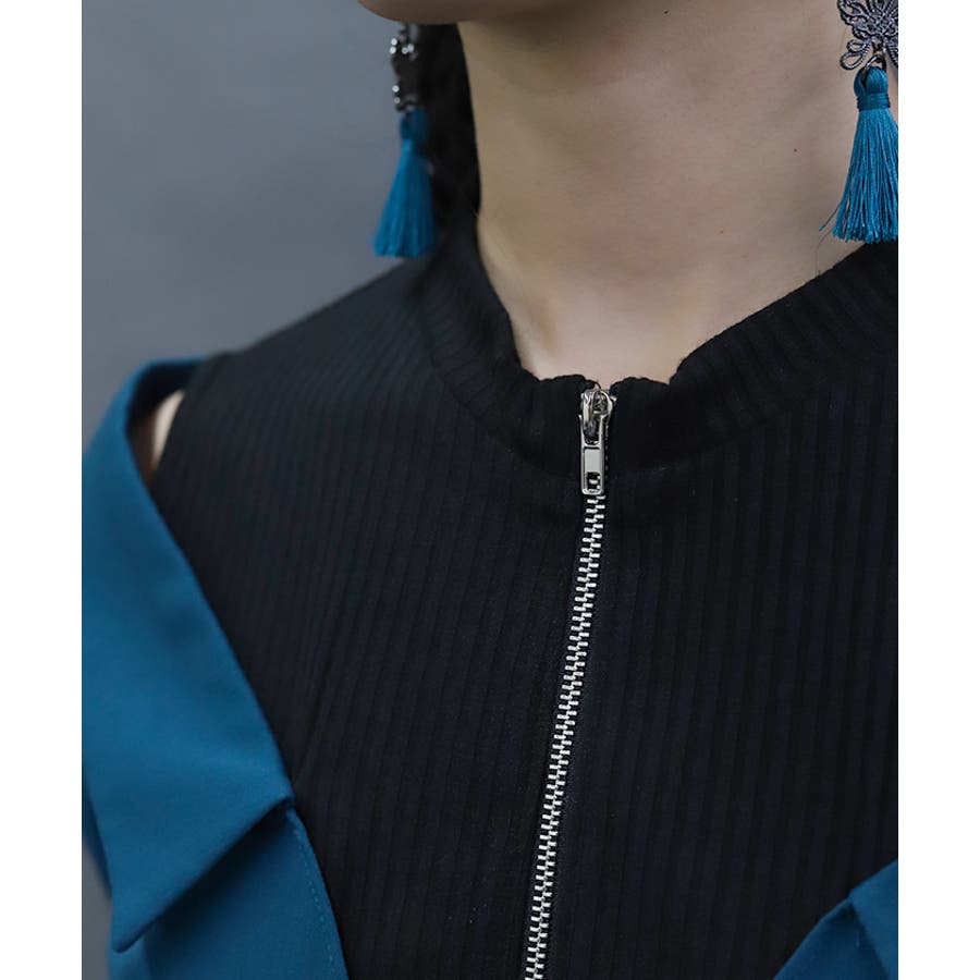 | 素材 | 表地:ポリエステル65%、 :レーヨン32%、 :ポリウレタン3%、リブ:ポリエステル92%、 :ポリウレタン8%、裏地:ポリエステル100% |