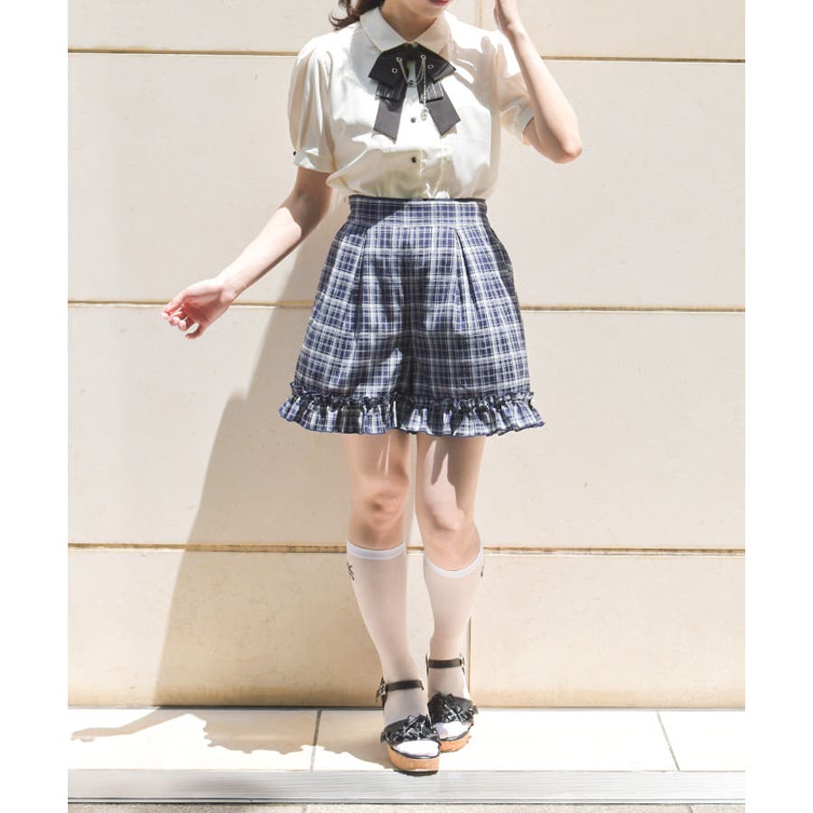 ショートパンツは単品でも着まわしやすい裾フリルのデザインです。
