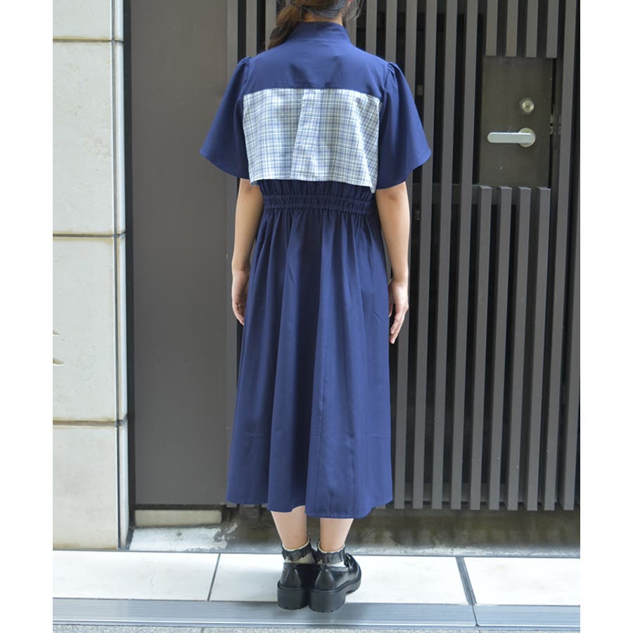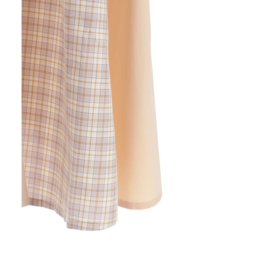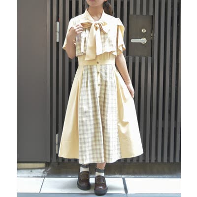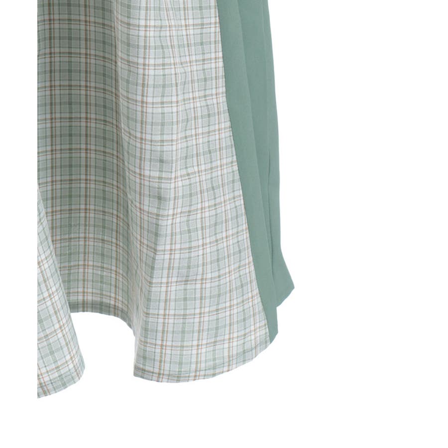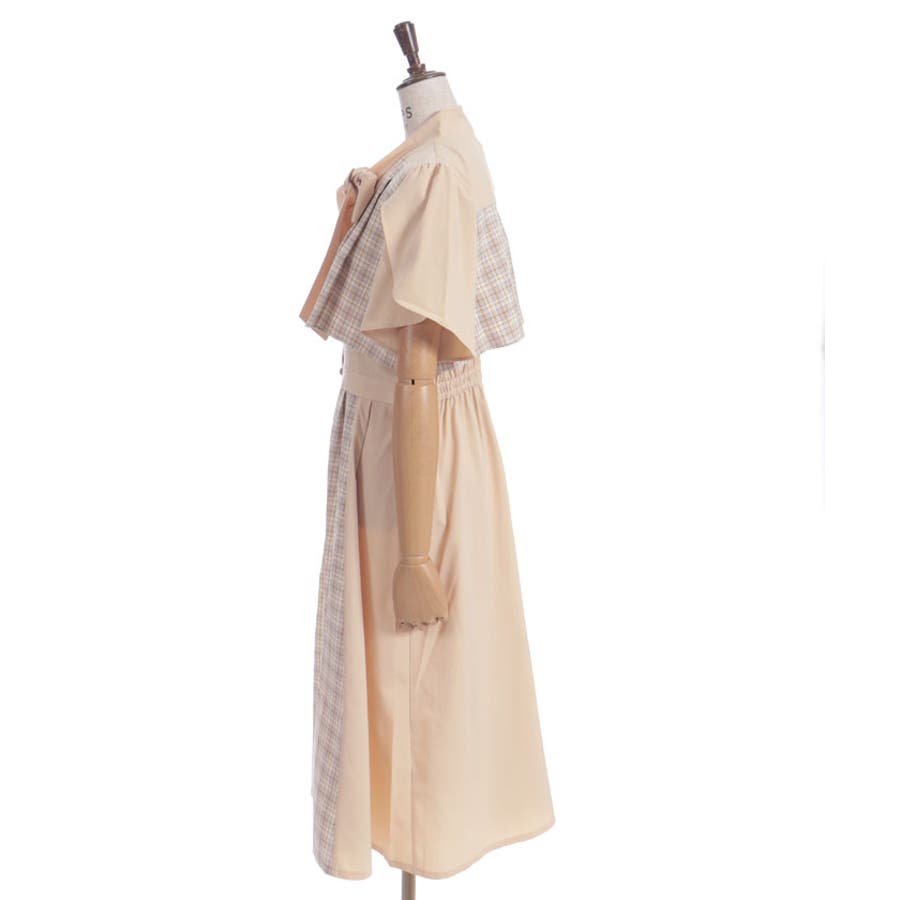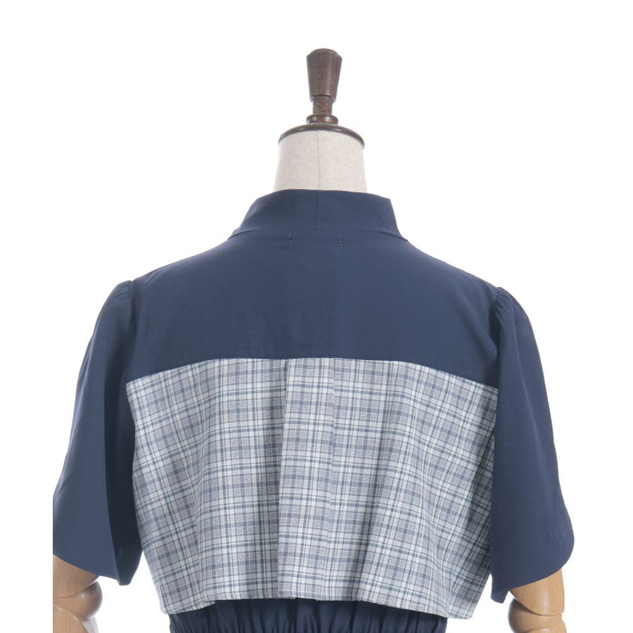 チェック柄と無地を組み合わせたパッチワークデザインが目をひくワンピース。
