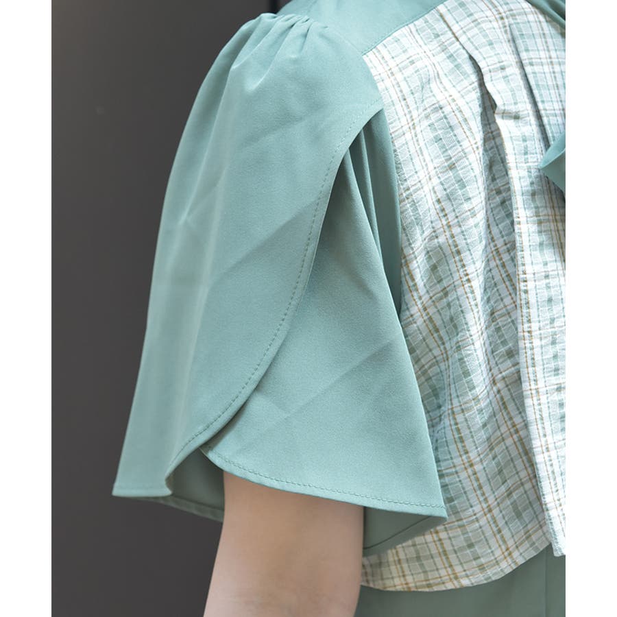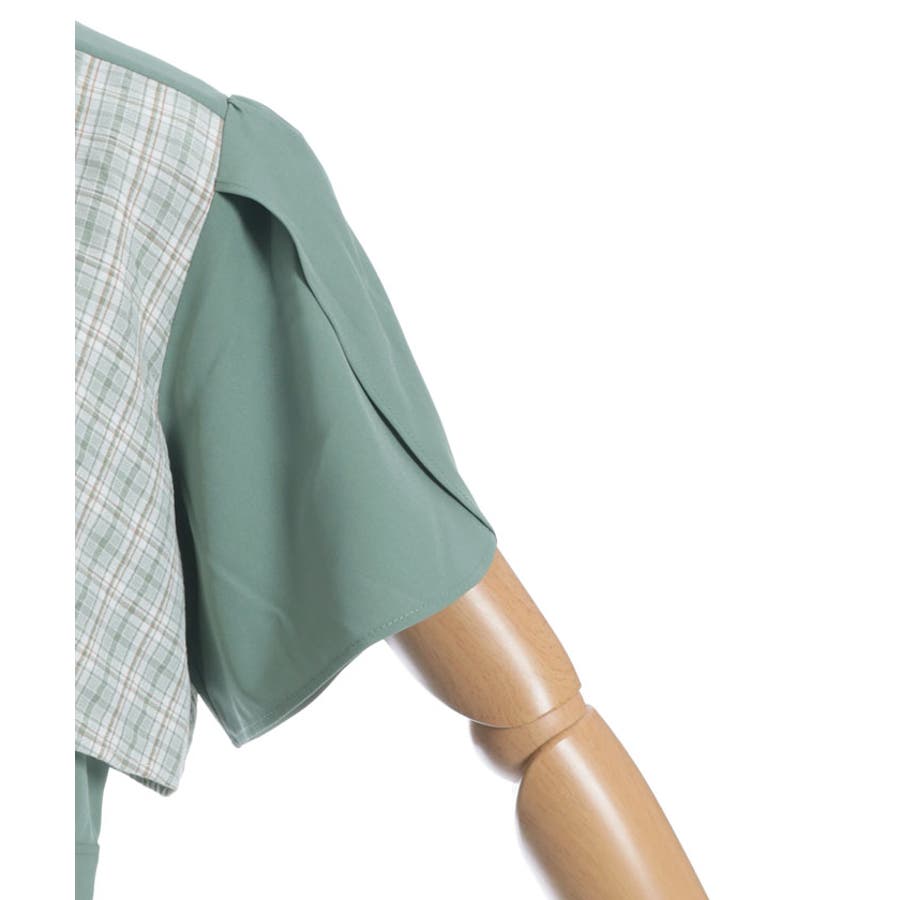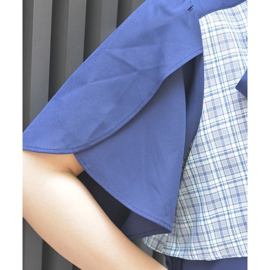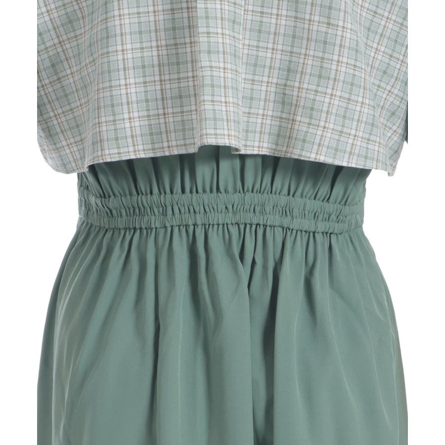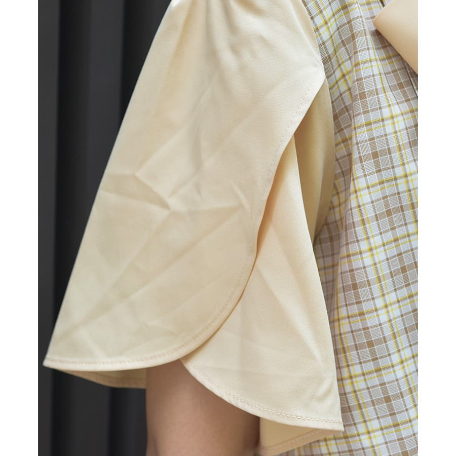 チェック柄と無地を組み合わせたパッチワークデザインが目をひくワンピース。