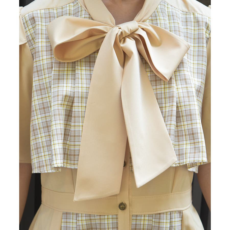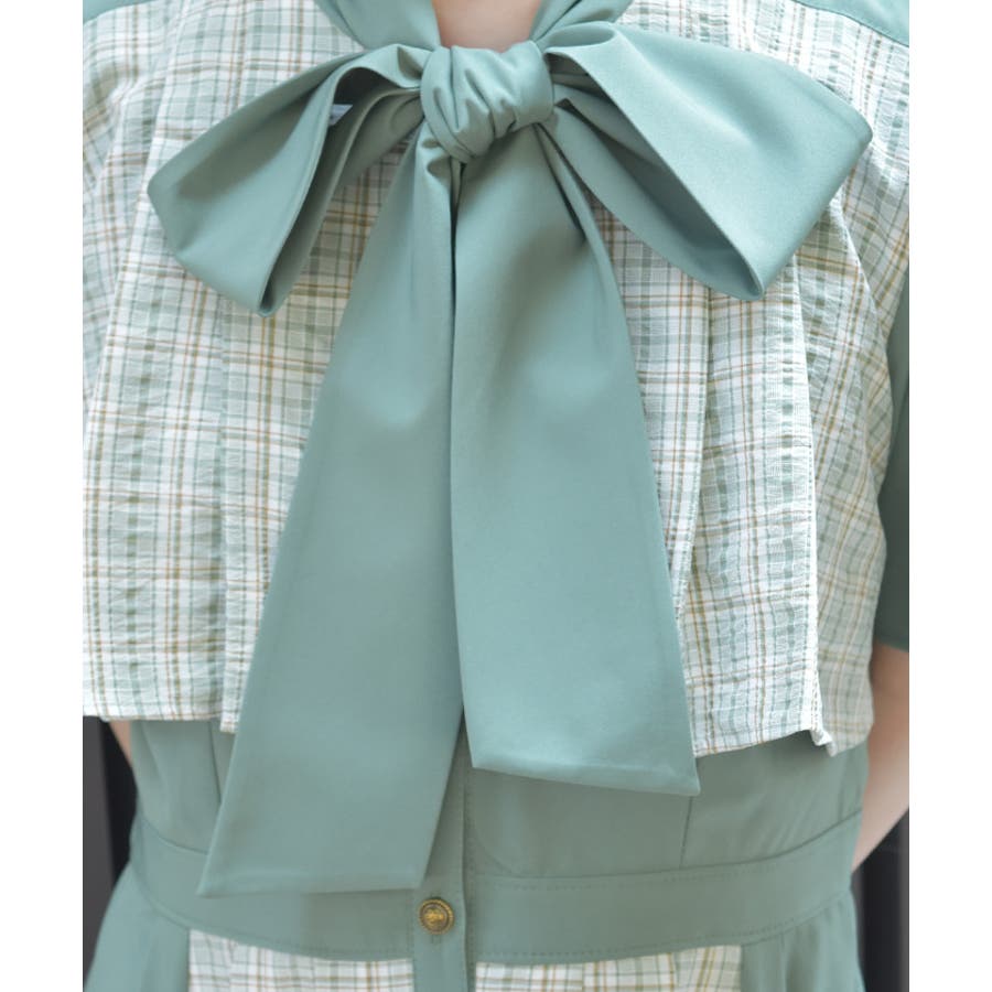フロントのリボンディテールが上品なアクセントに。裏地なしで軽やかな着心地が魅力です。