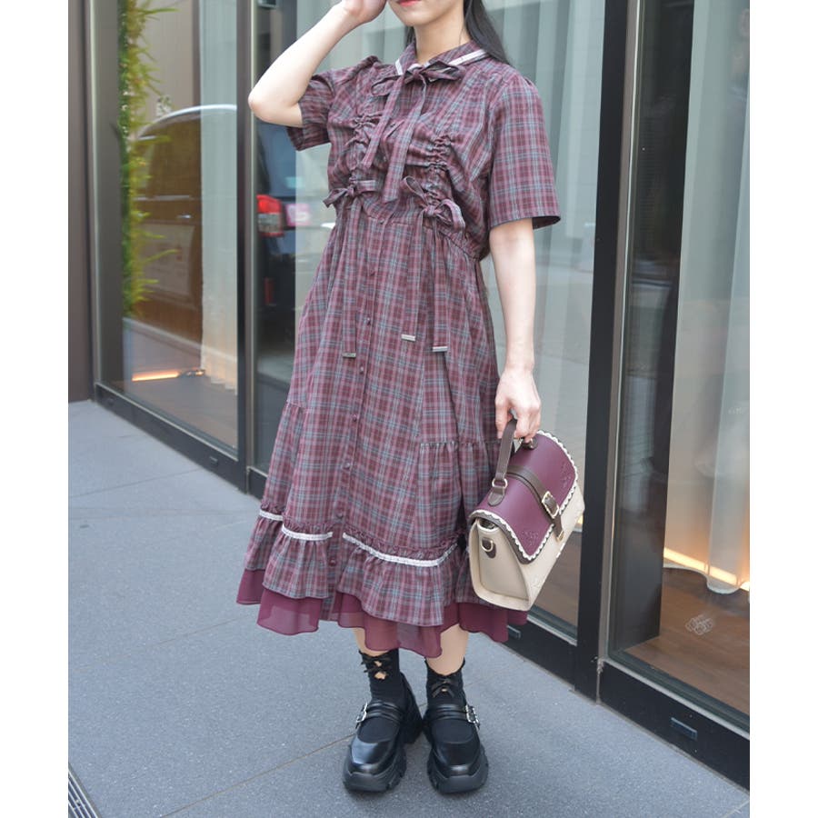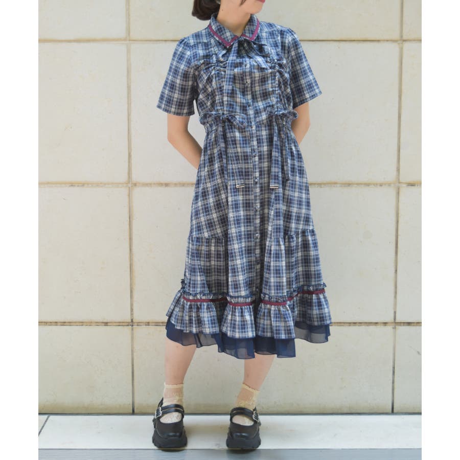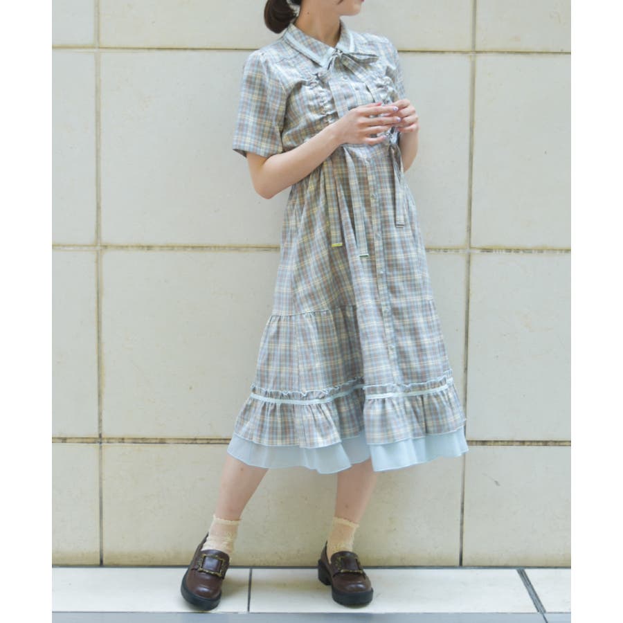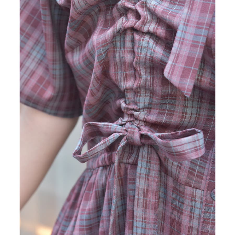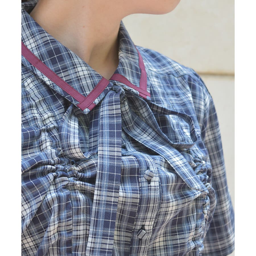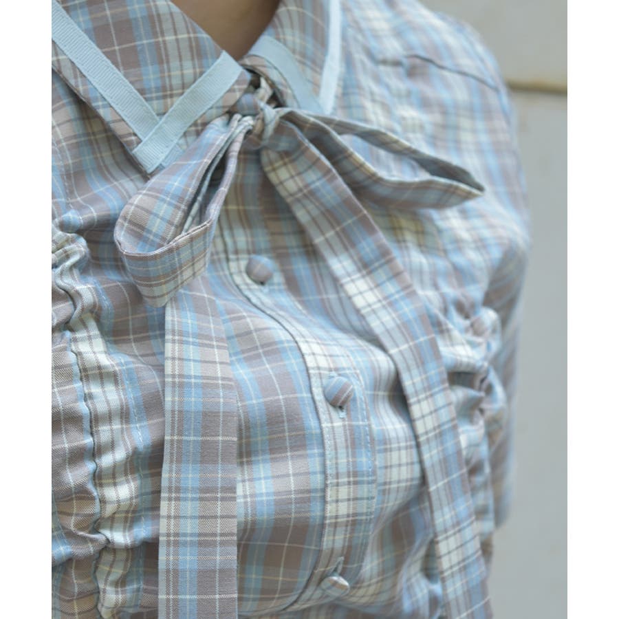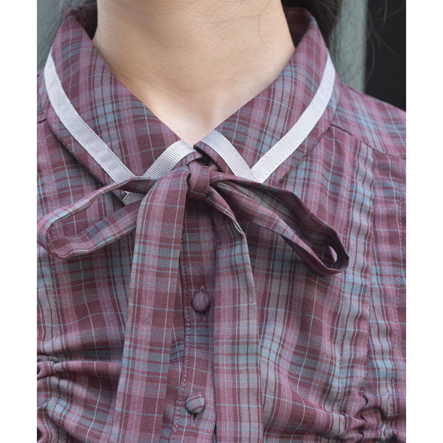 プレッピーライクな印象を与えるシャツカラーやリボンディティールがアクセント◎。