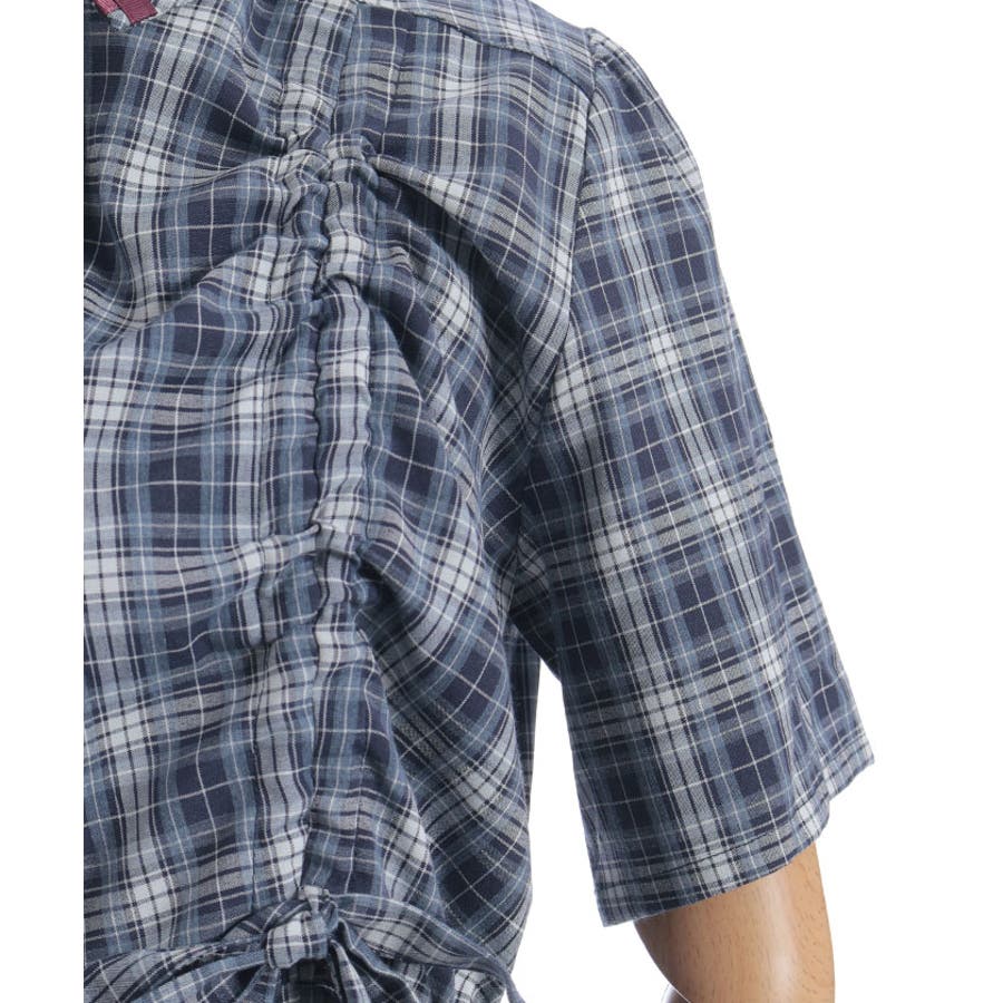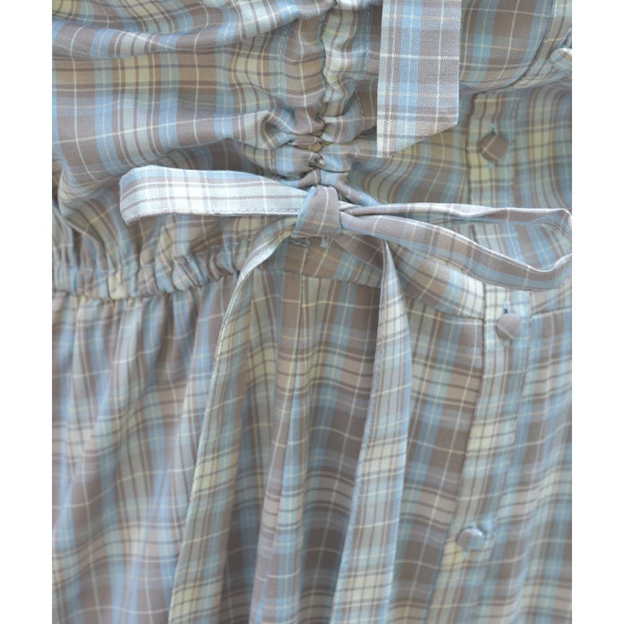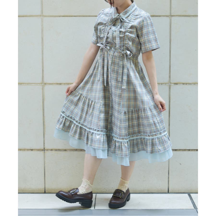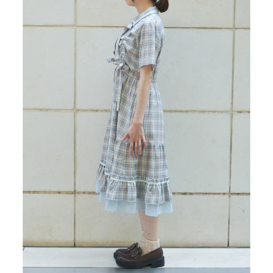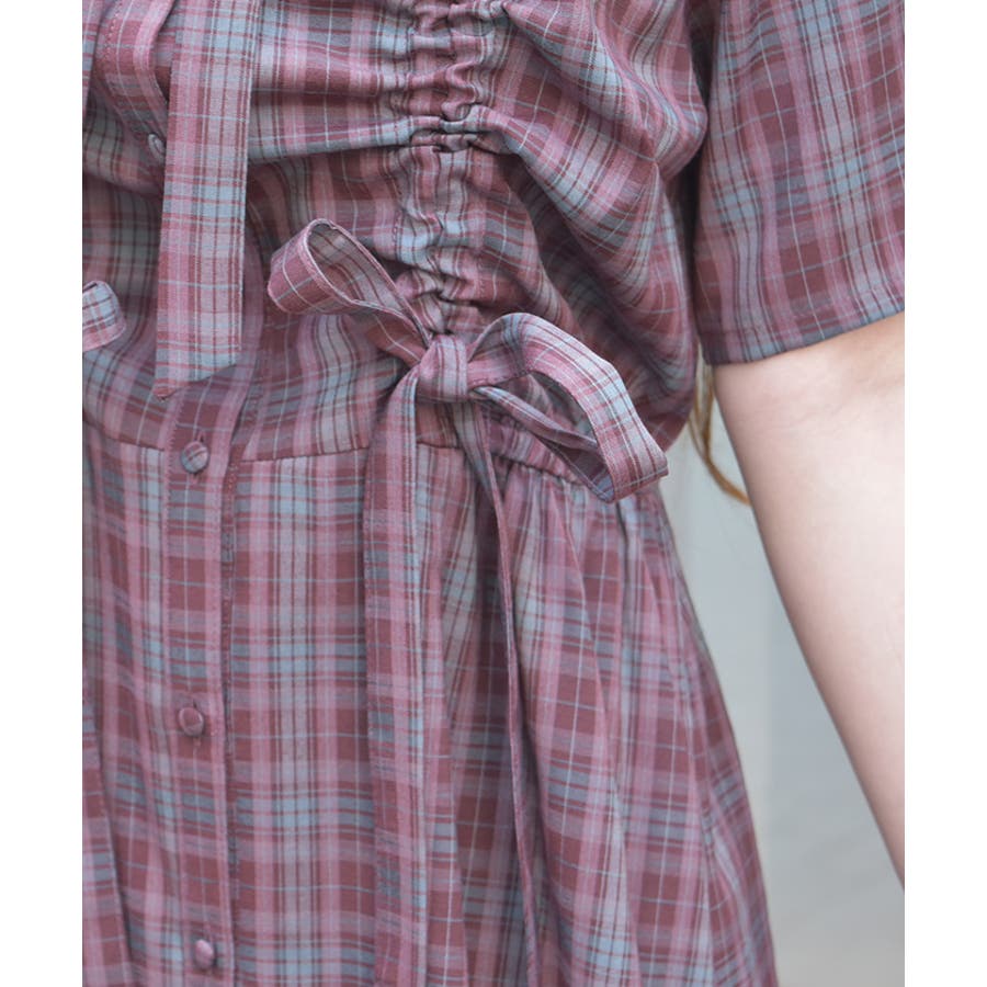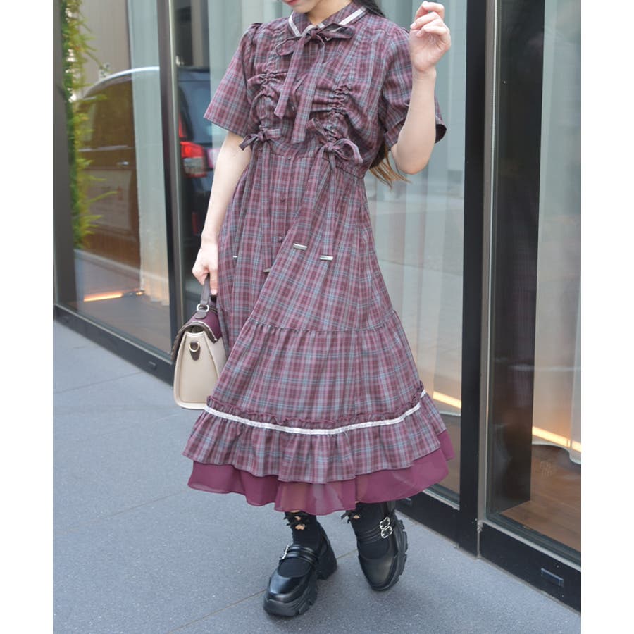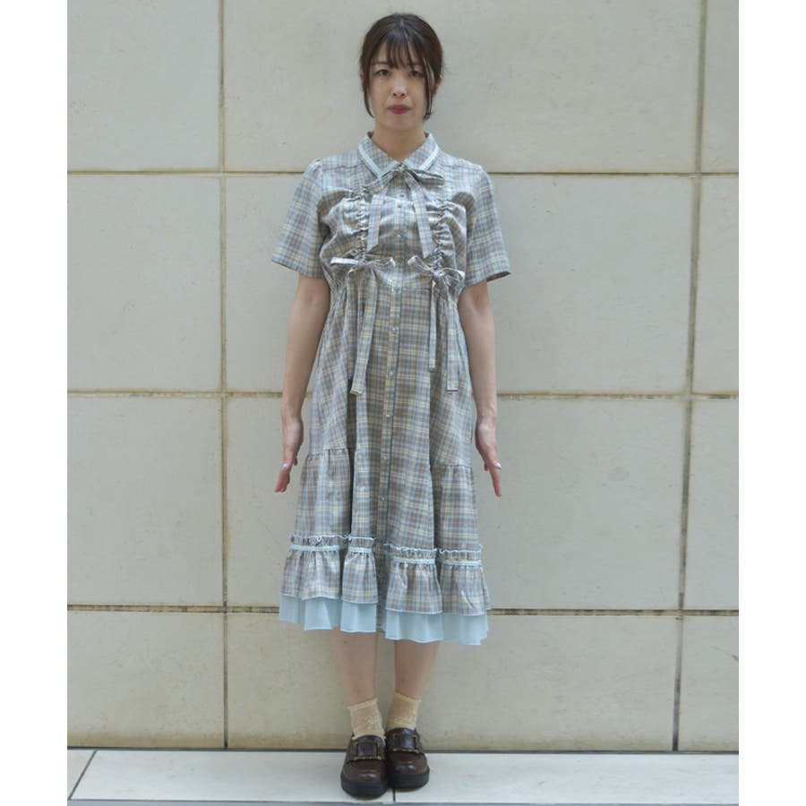 プレッピーライクな印象を与えるシャツカラーやリボンディティールがアクセント◎。