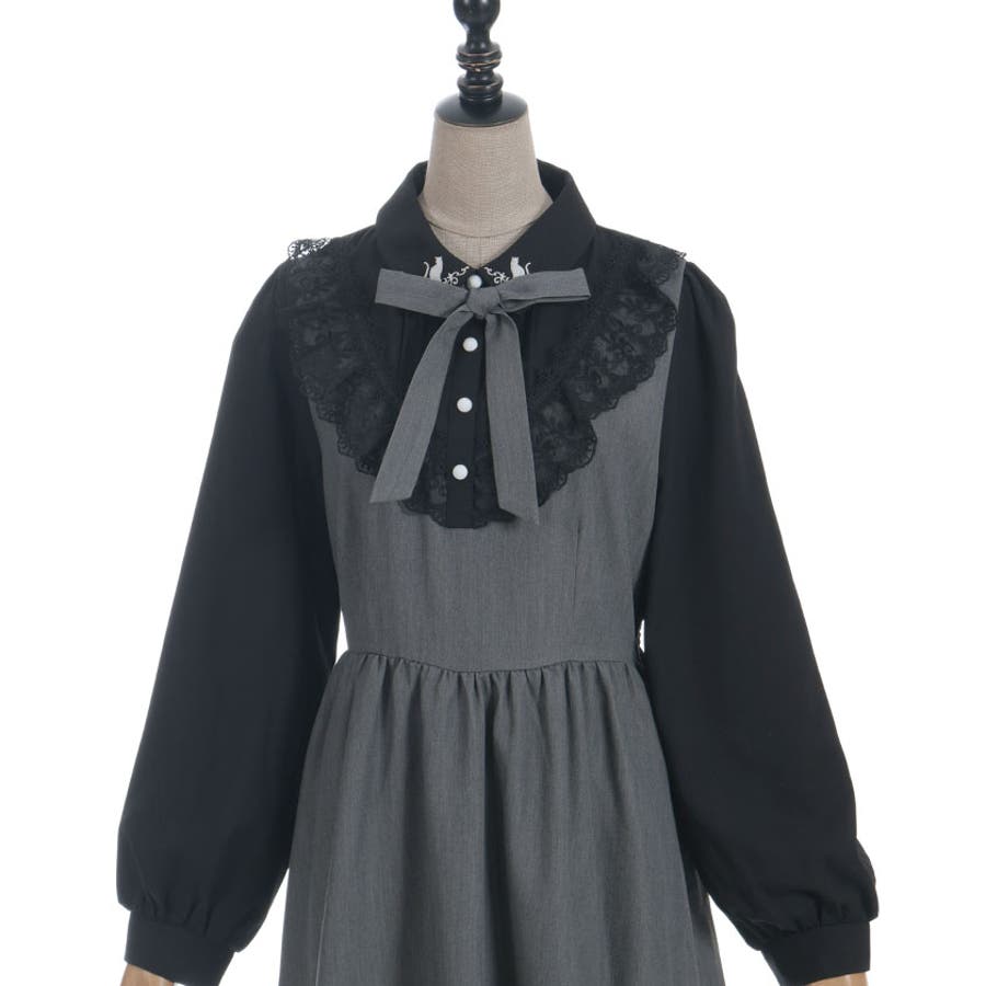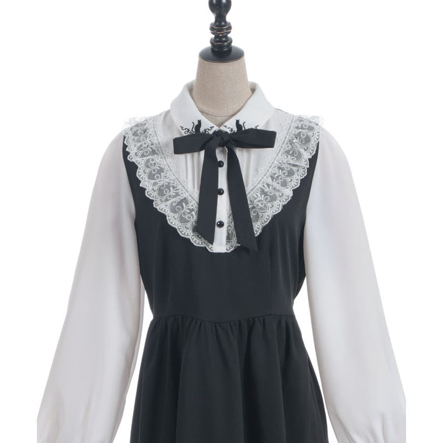 猫刺繍ブロッキングワンピース