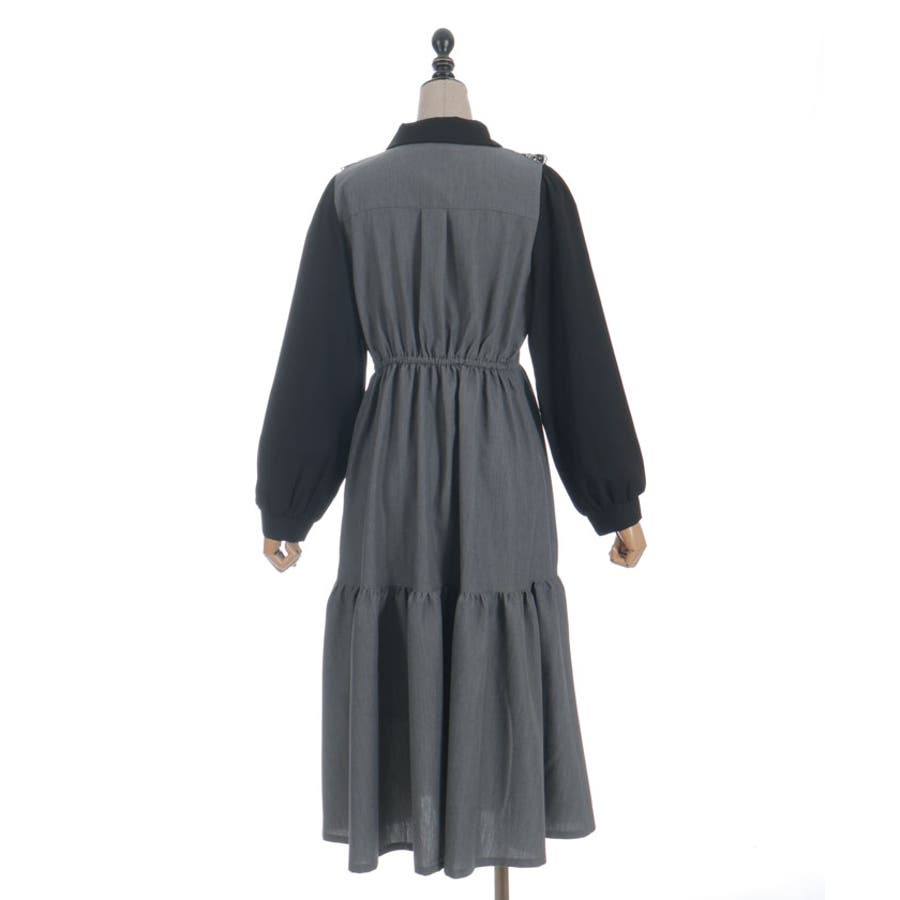 制服風の清楚なブロッキングデザインのロングワンピースです。
