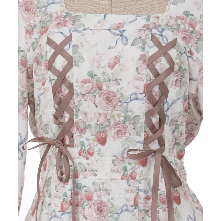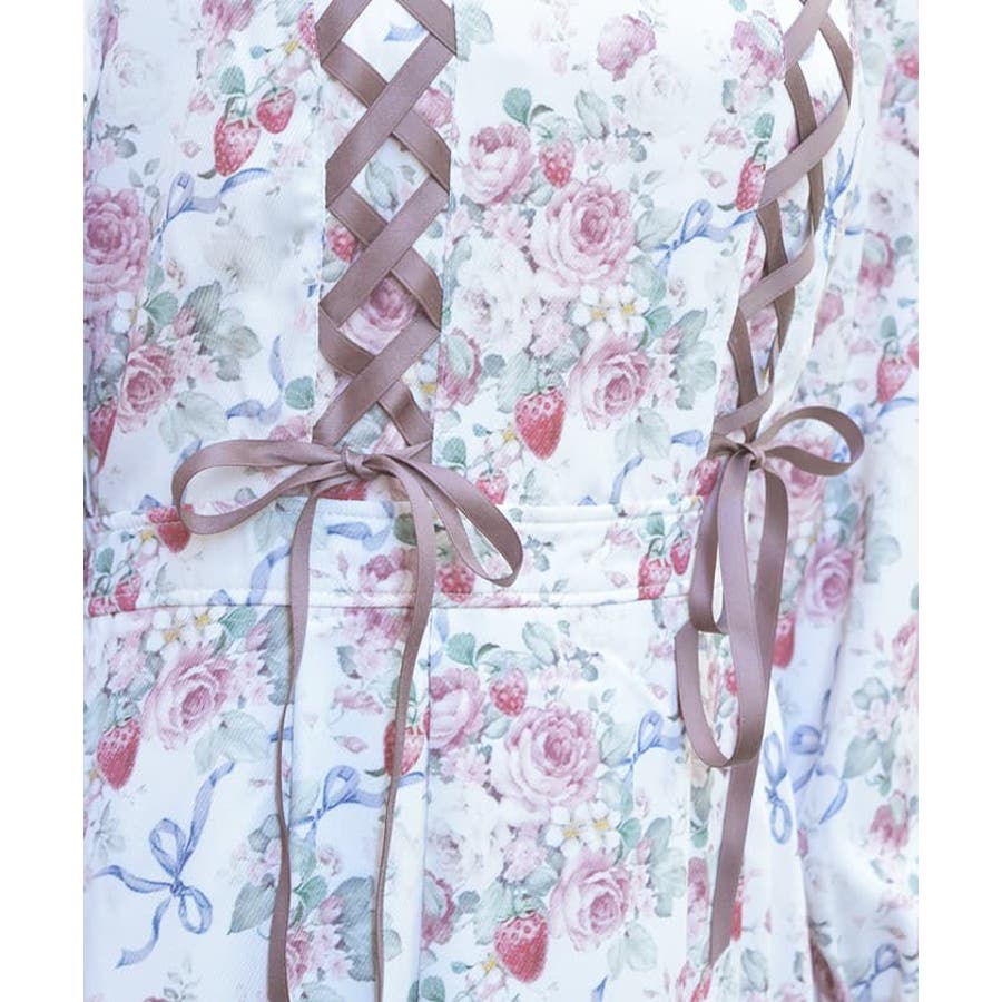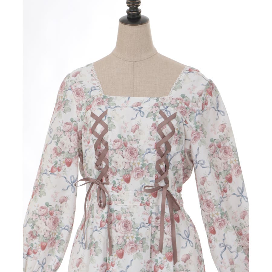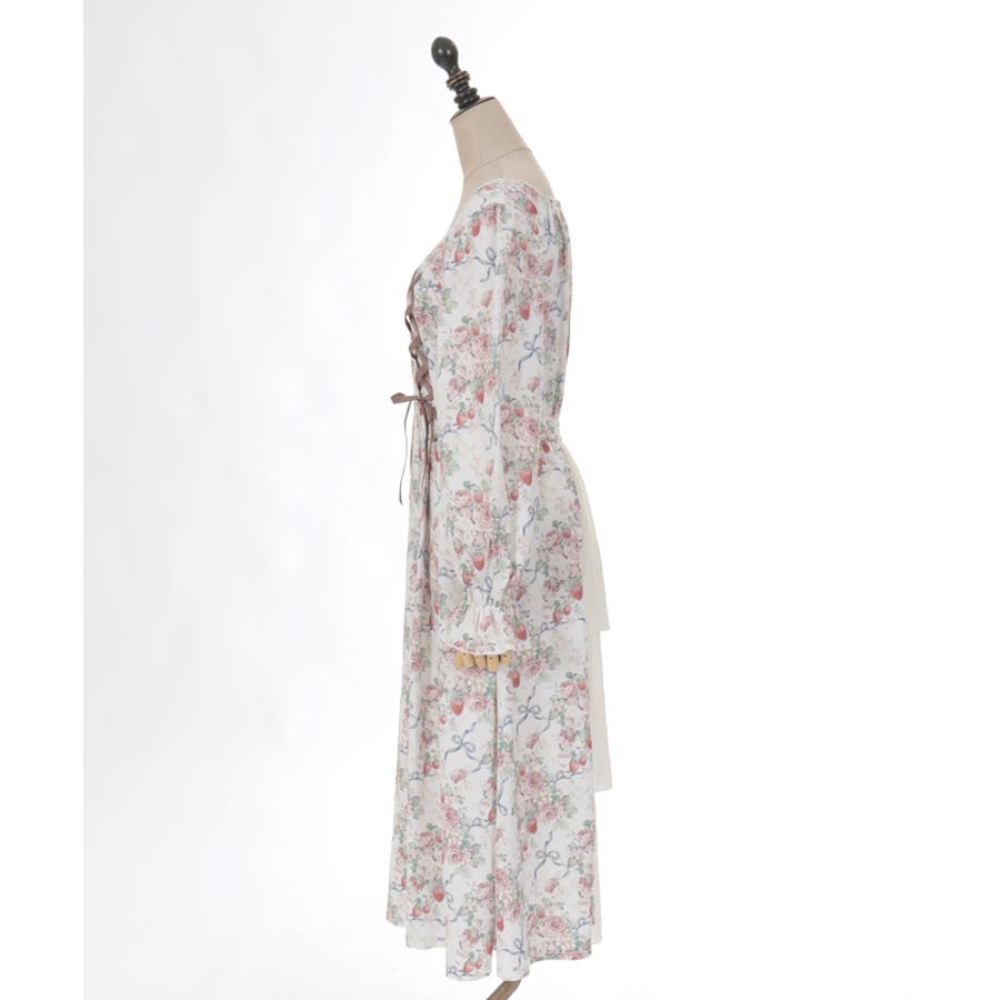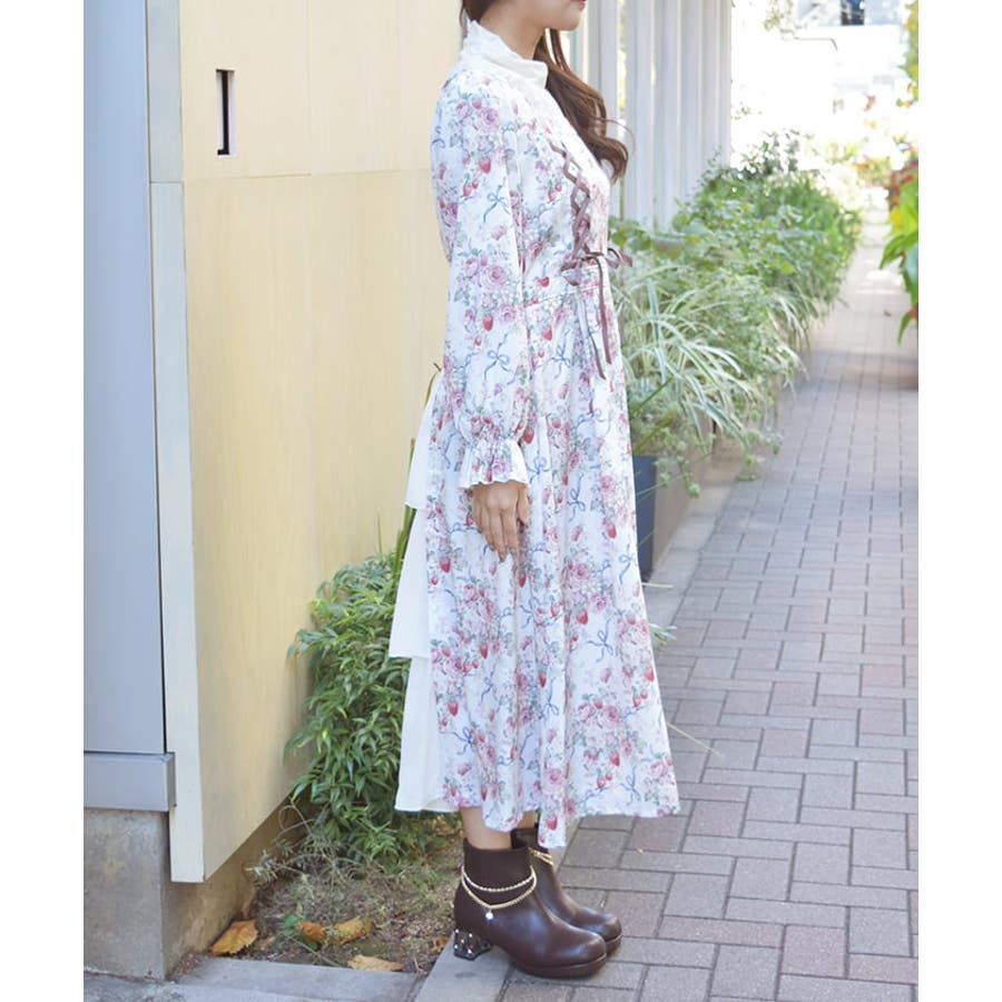 いちごとバラのモチーフを溶け込ませた図案を起こし、オリジナルプリントにあしらった特別なワンピースです。