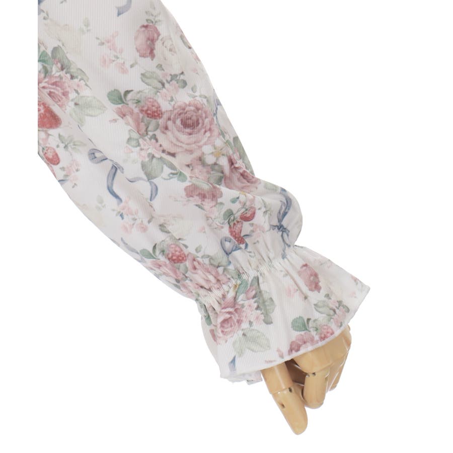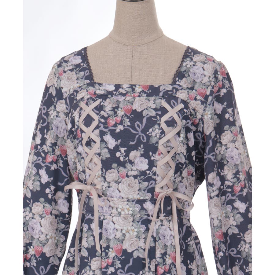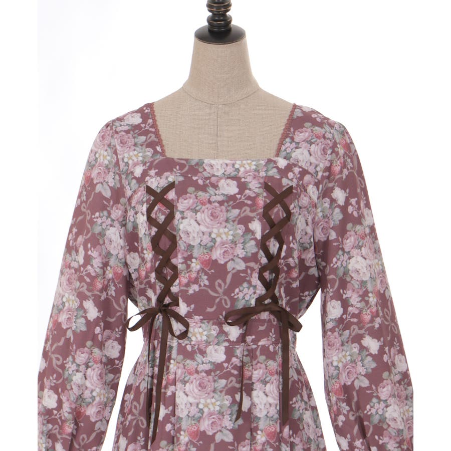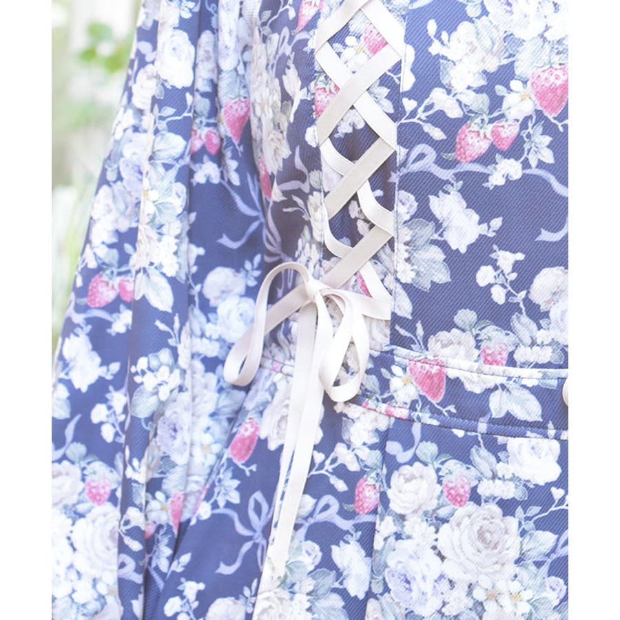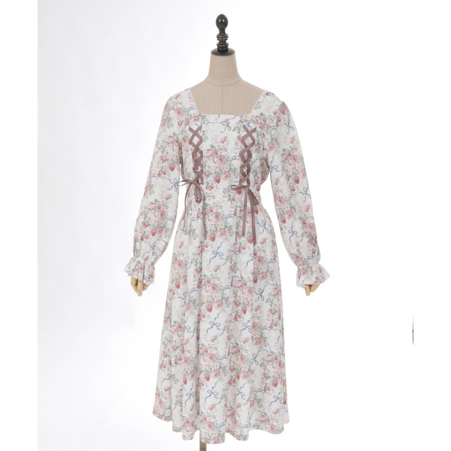 いちごとバラのモチーフを溶け込ませた図案を起こし、オリジナルプリントにあしらった特別なワンピースです。