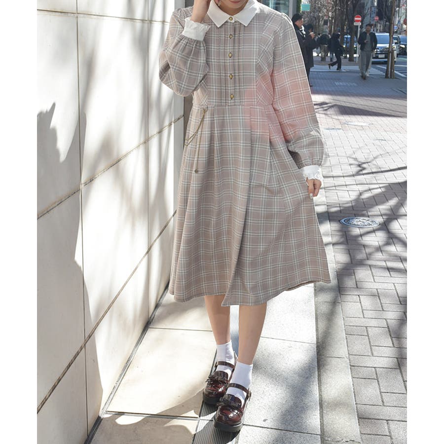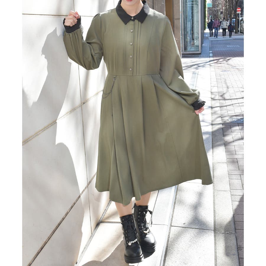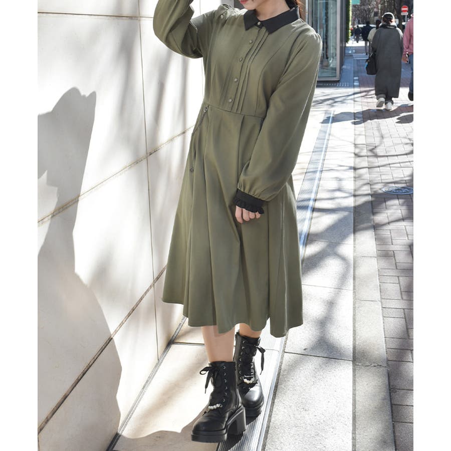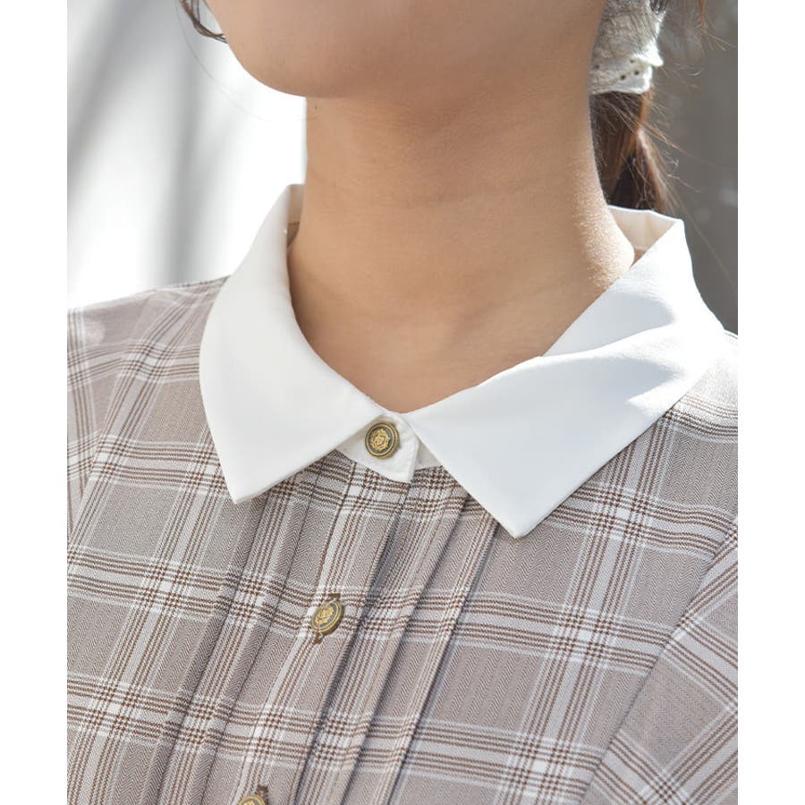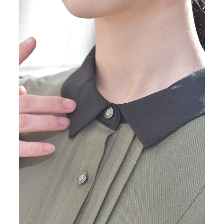 クラシカルなシャツワンピースにメッキ使いがアクセントになったデザインです。