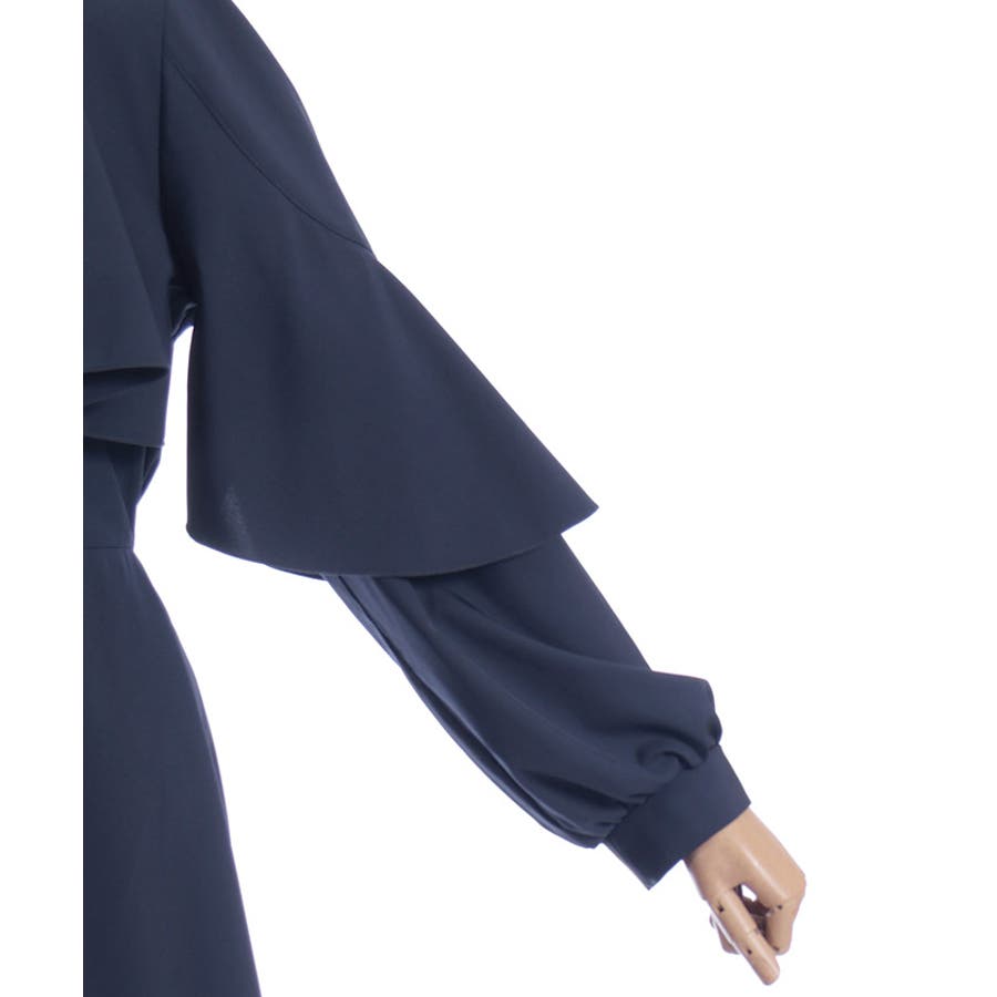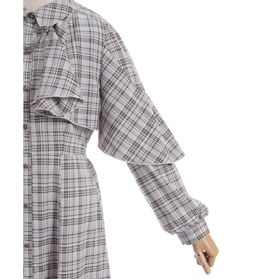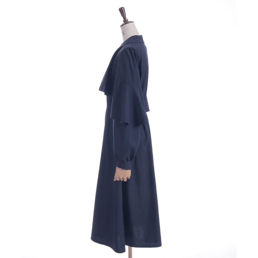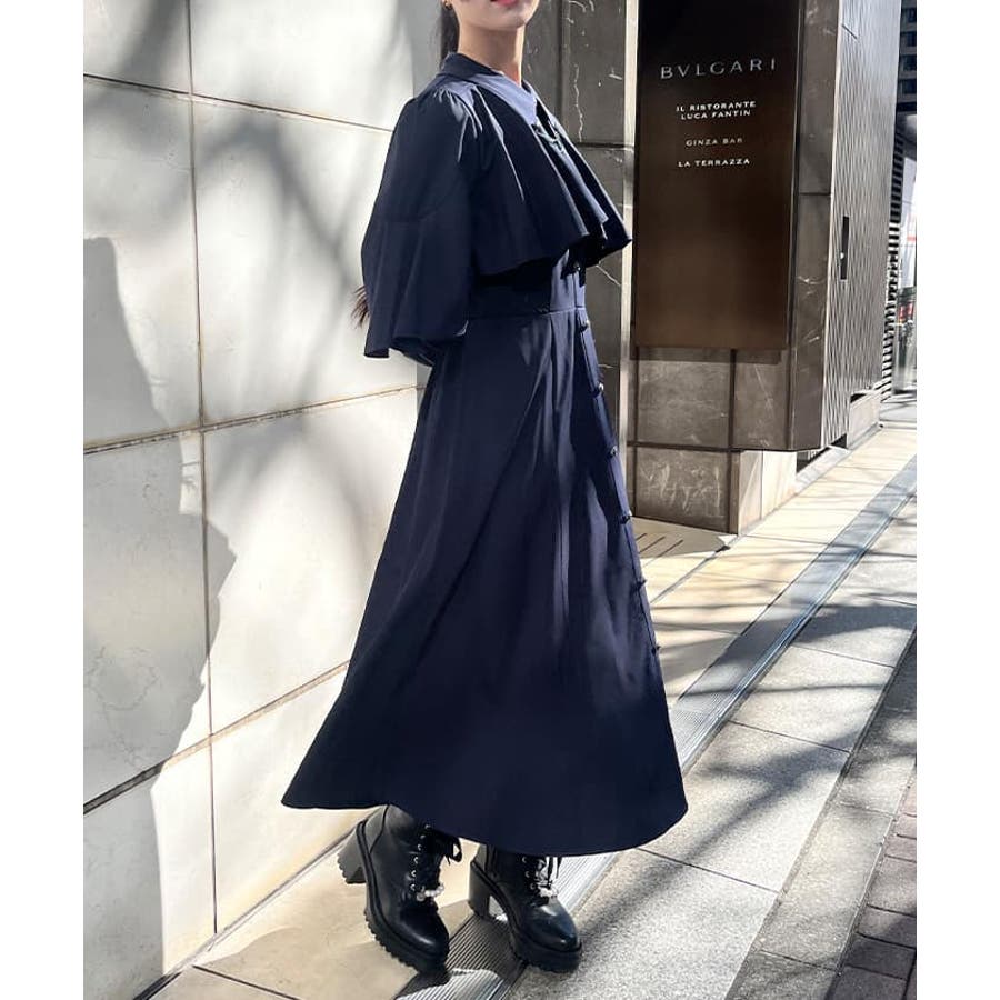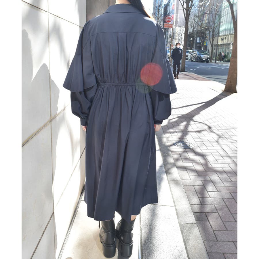 ウエスト部分は程よくフィットし裾にかけて広がるフレアシルエットが、女性らしいムードを引き立てます。