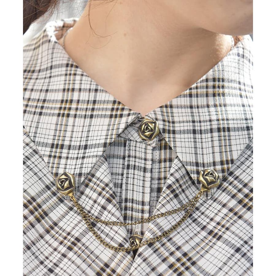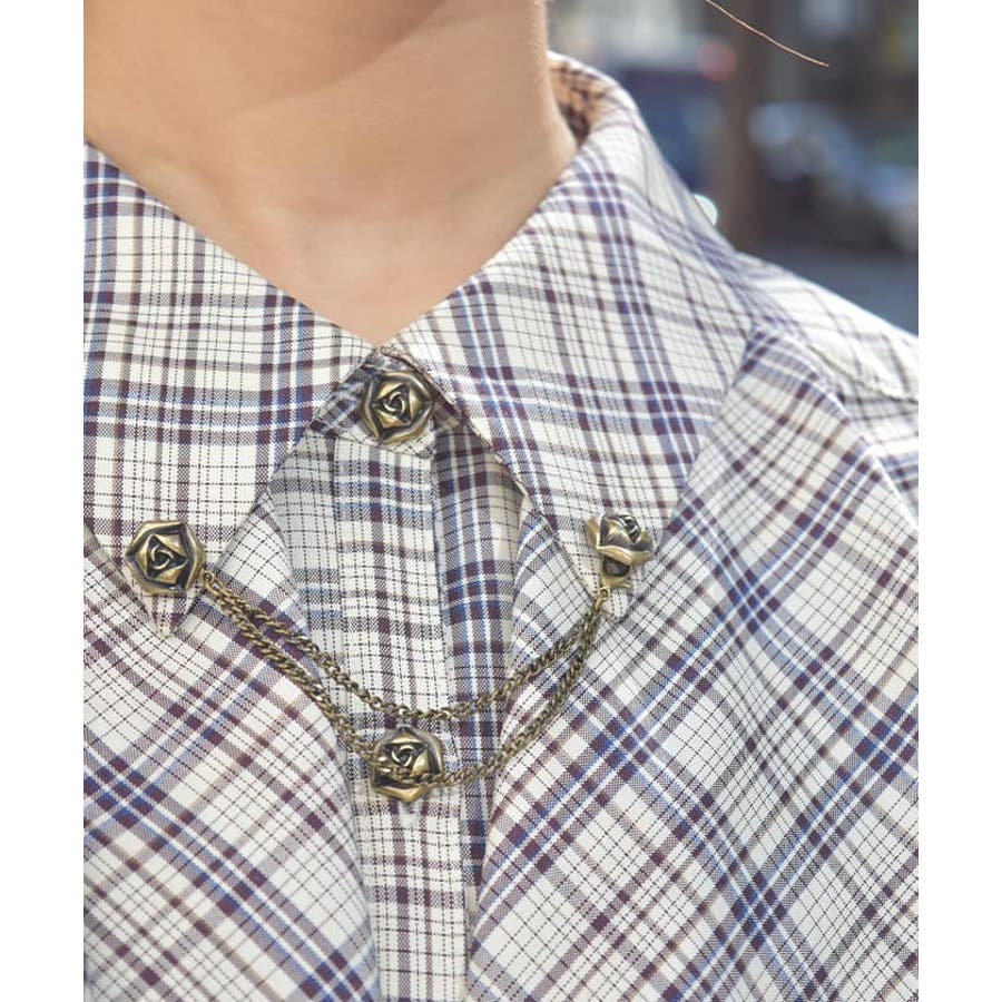 シャツカラーに取り入れたチェーンデザインがポイントです。