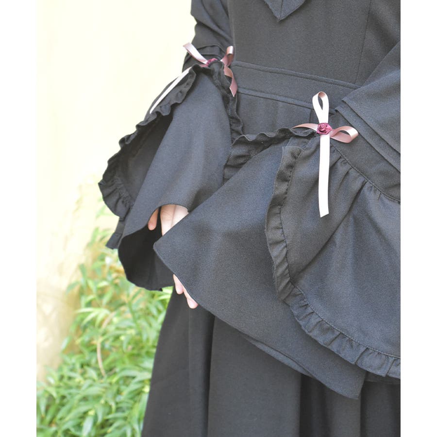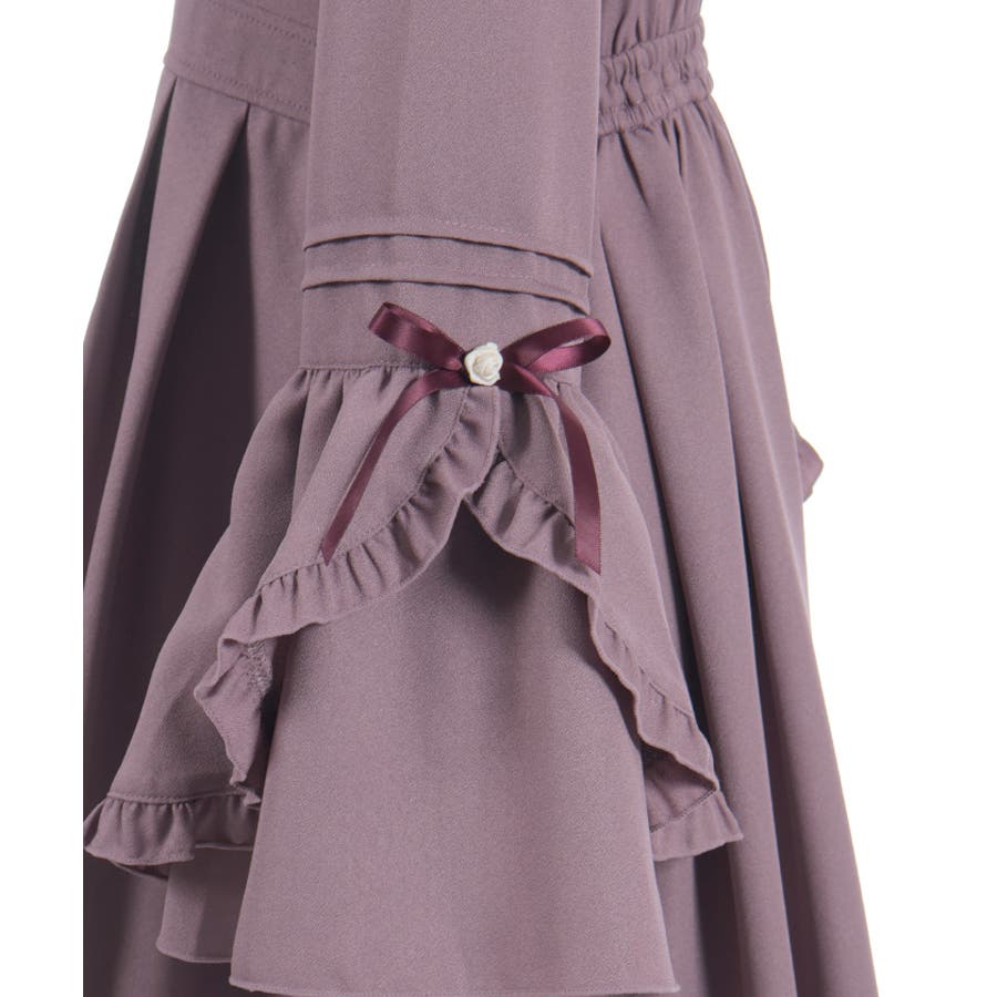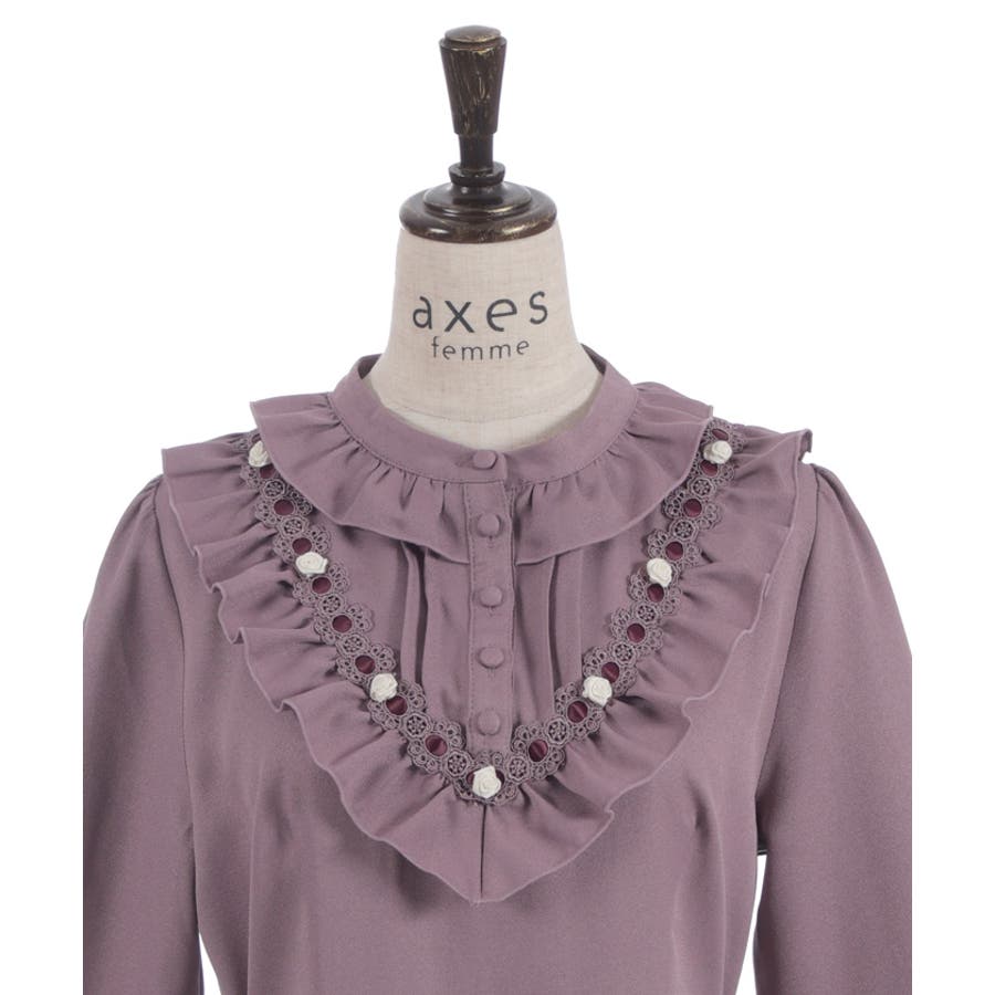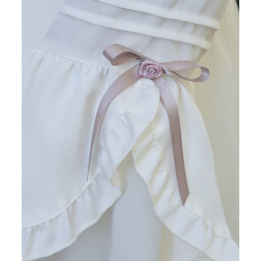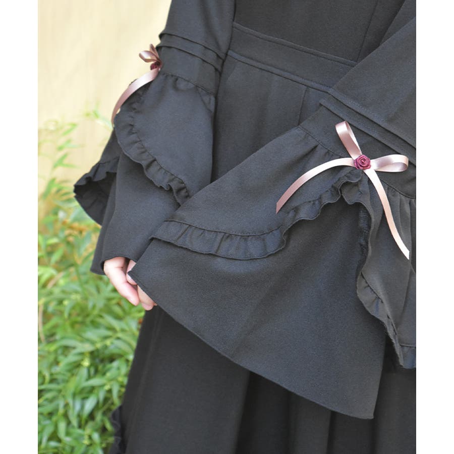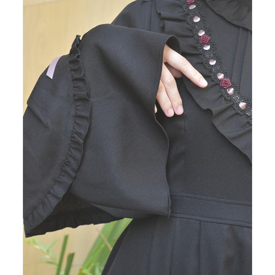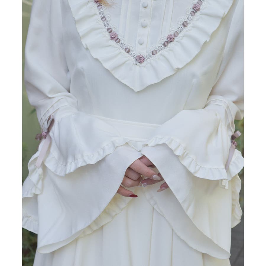 袖口にもリボン×巻きバラ、裾にもはしごレースをあしらった、装飾性の高いアイテムです。