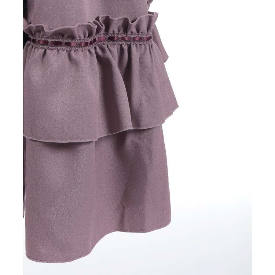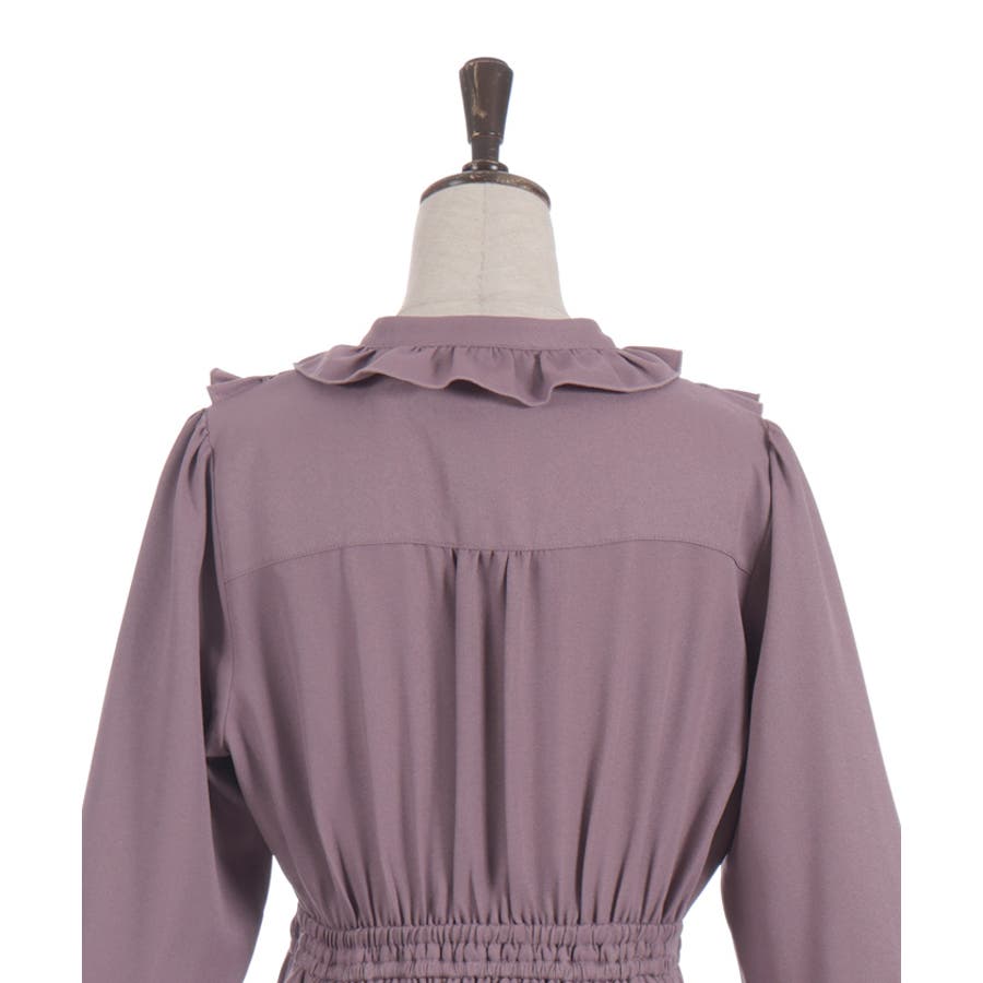 広めのフリル幅とボリューム感がありながら、スッキリ見えるよう、V切替に。