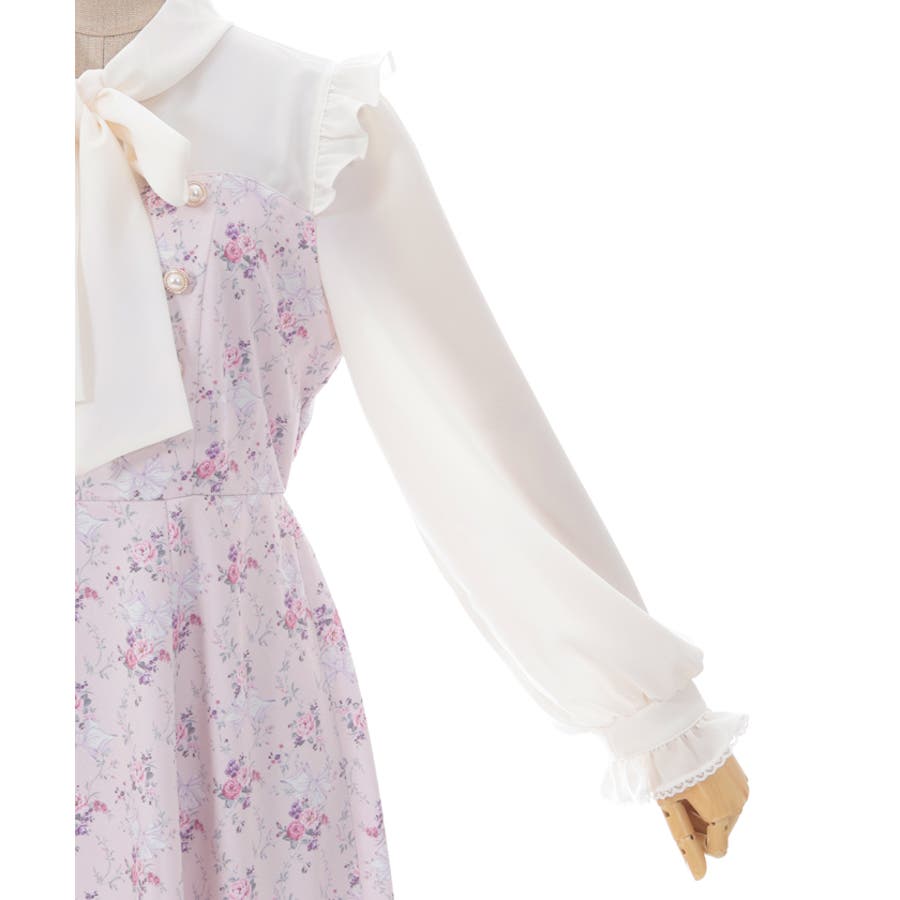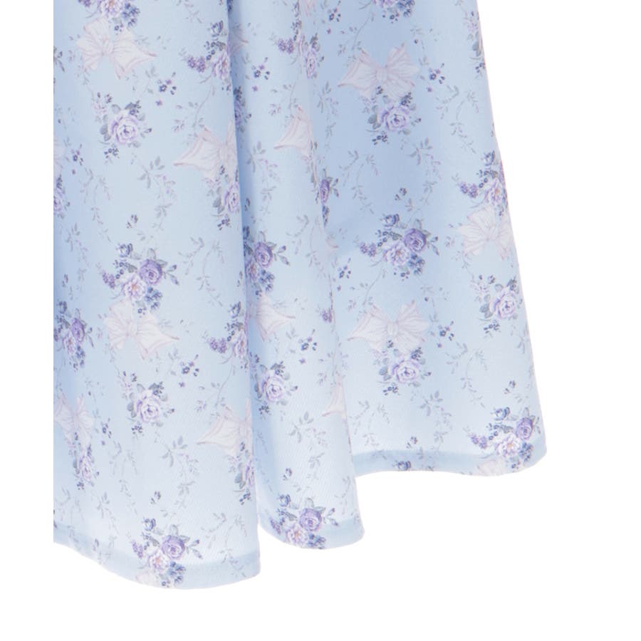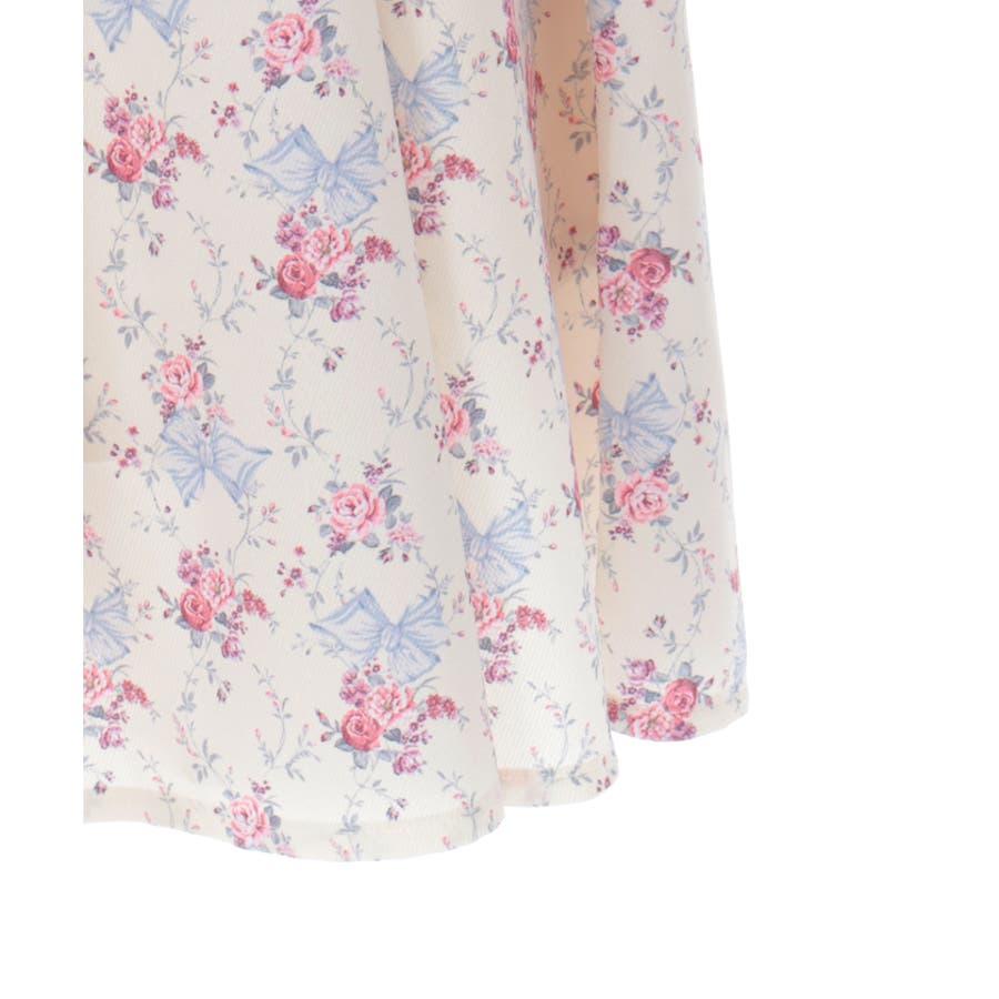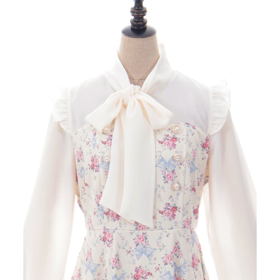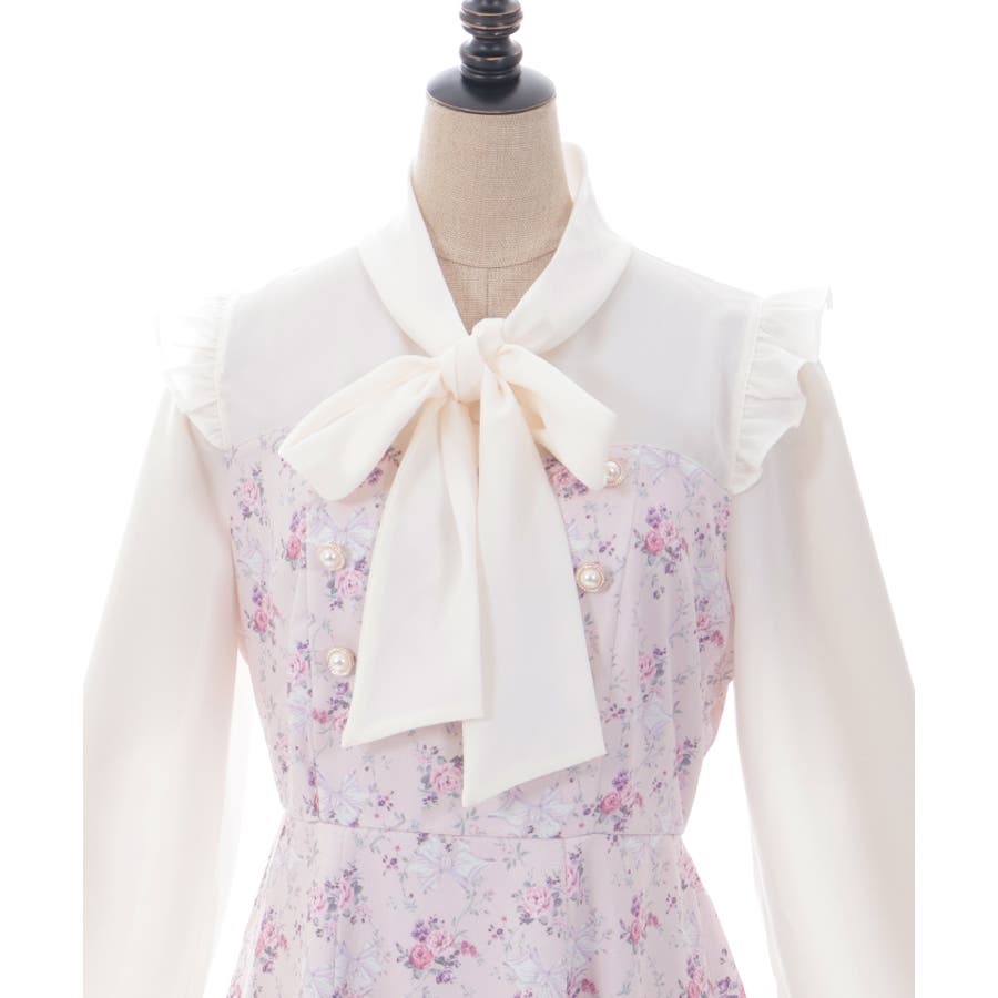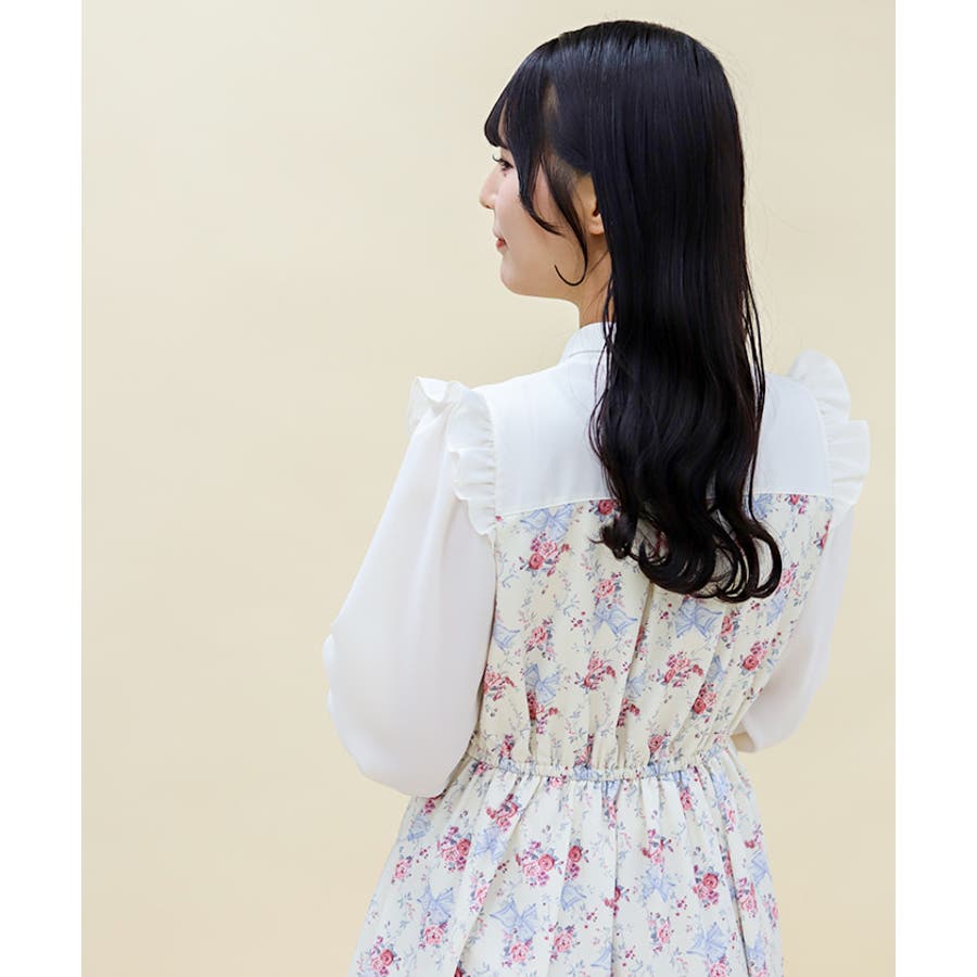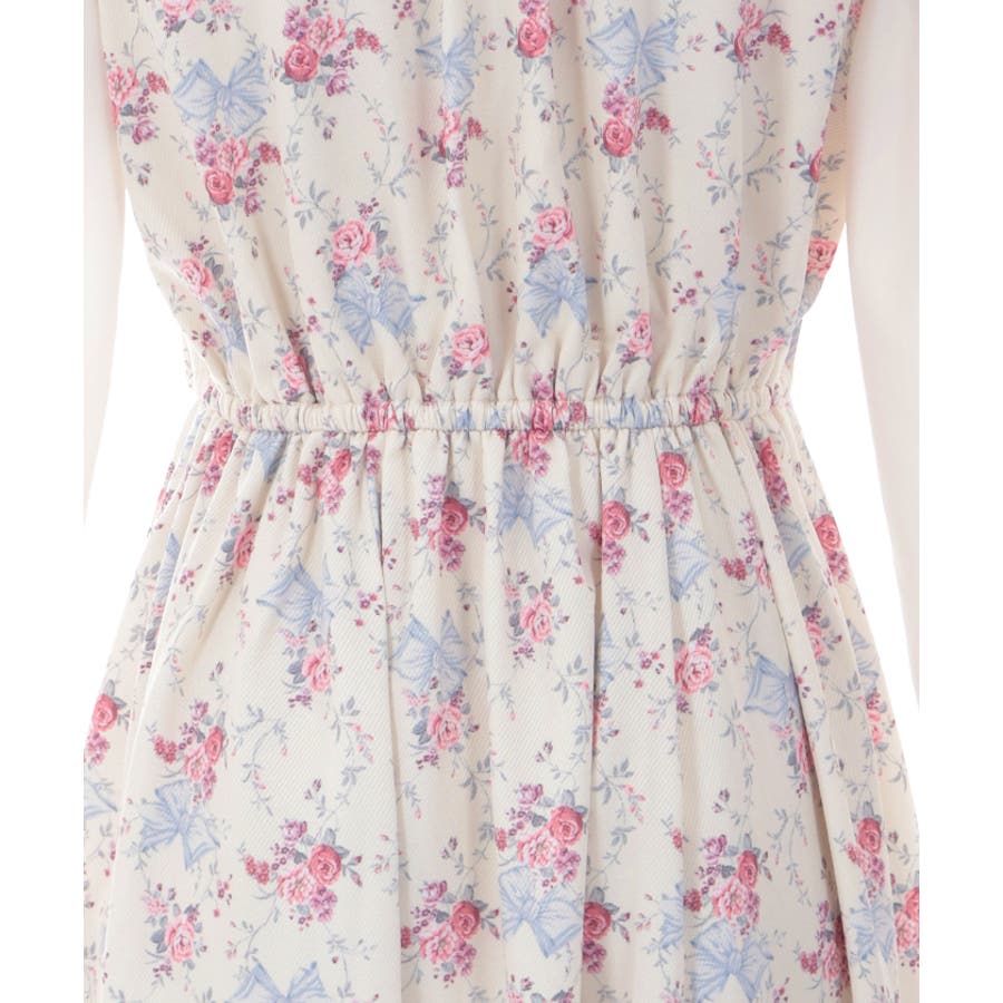 ブーケとリボンを散りばめた華やかなプリントが目を惹くワンピースです。