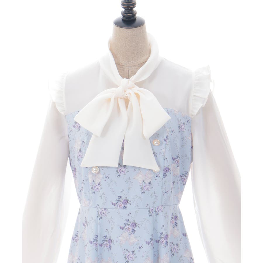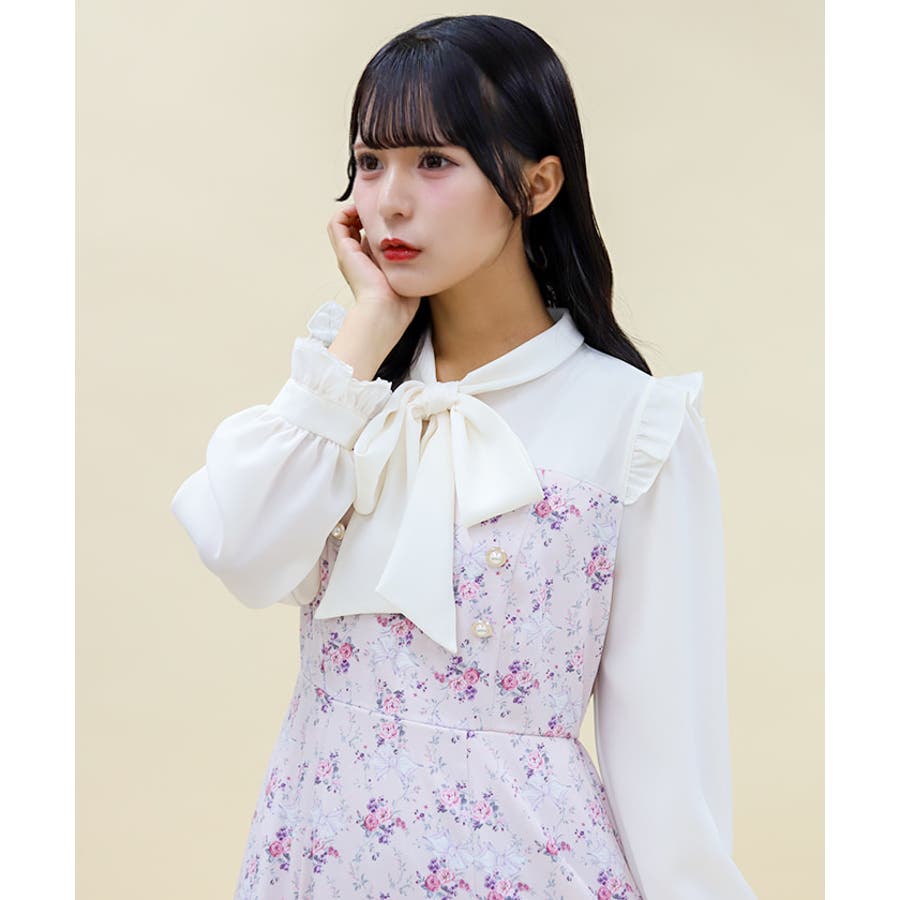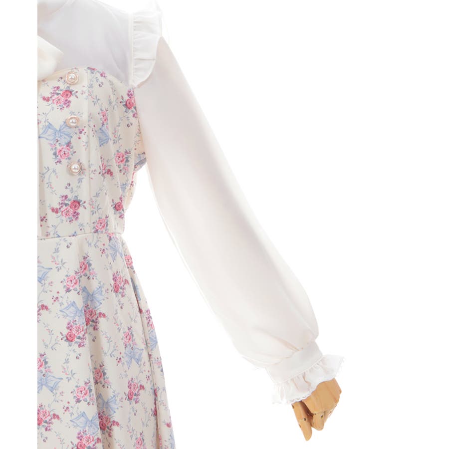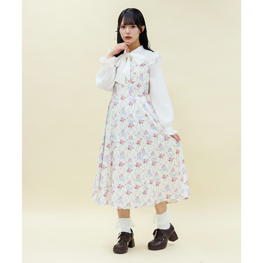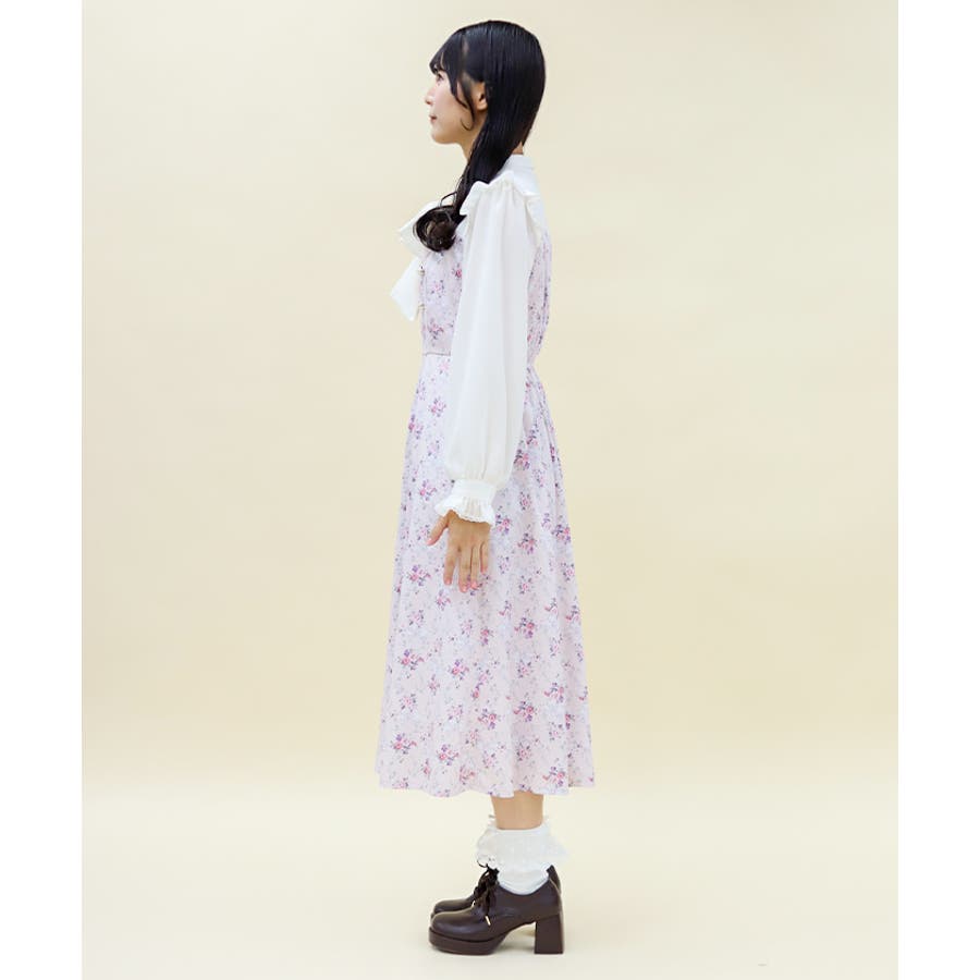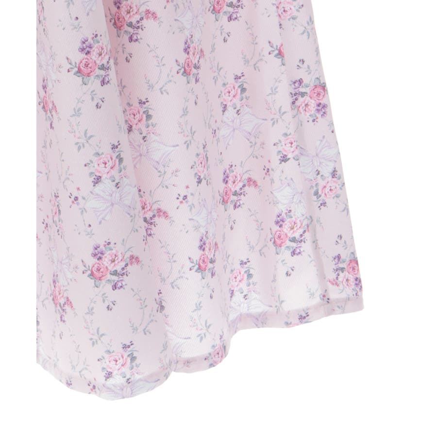 ブーケとリボンを散りばめた華やかなプリントが目を惹くワンピースです。