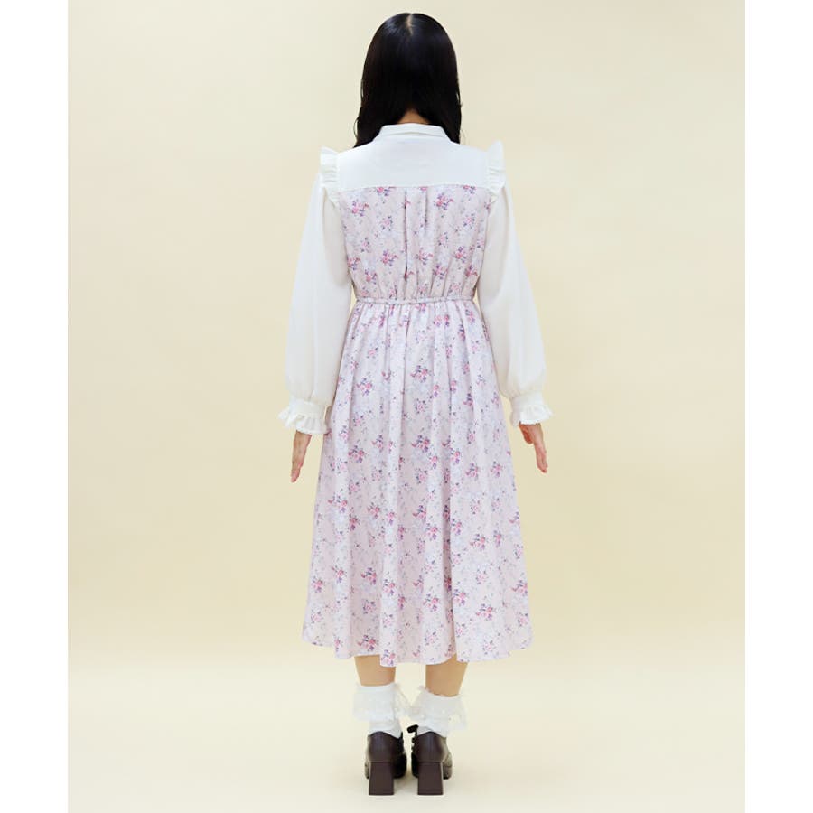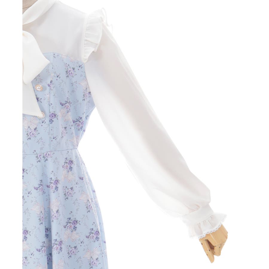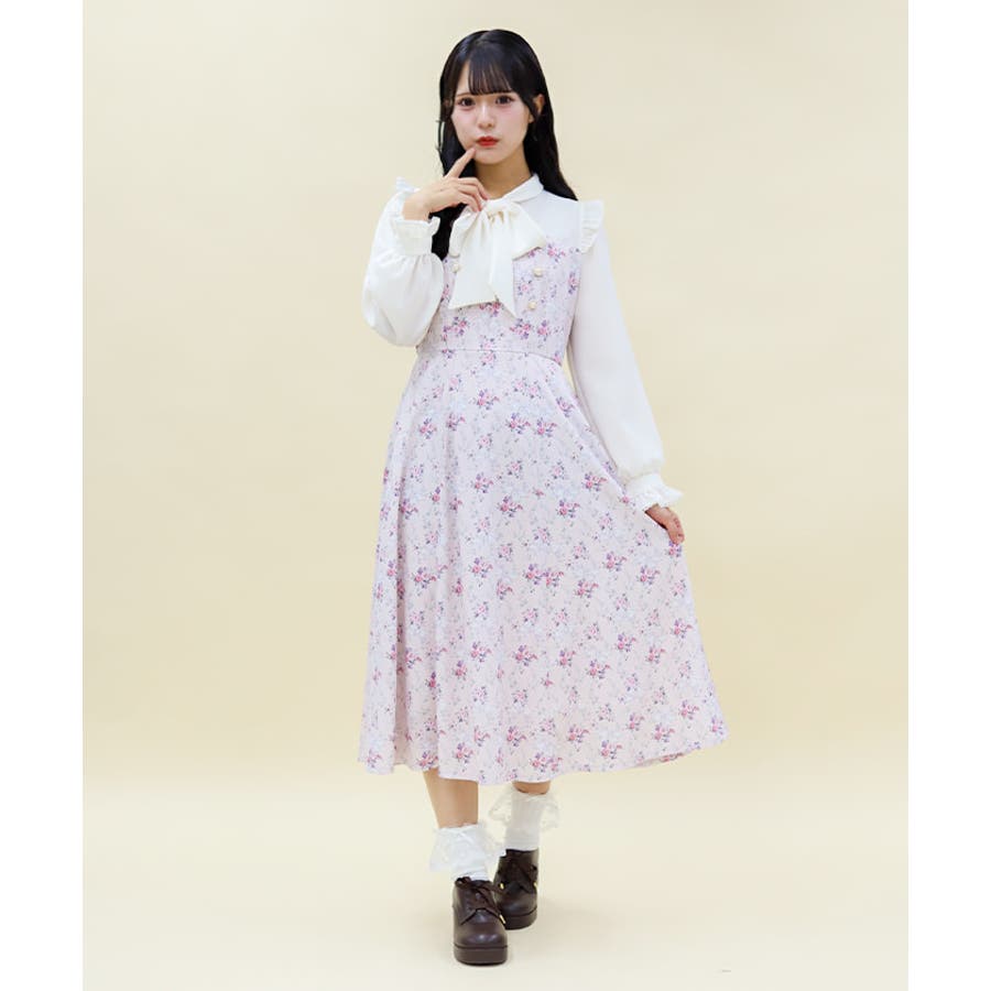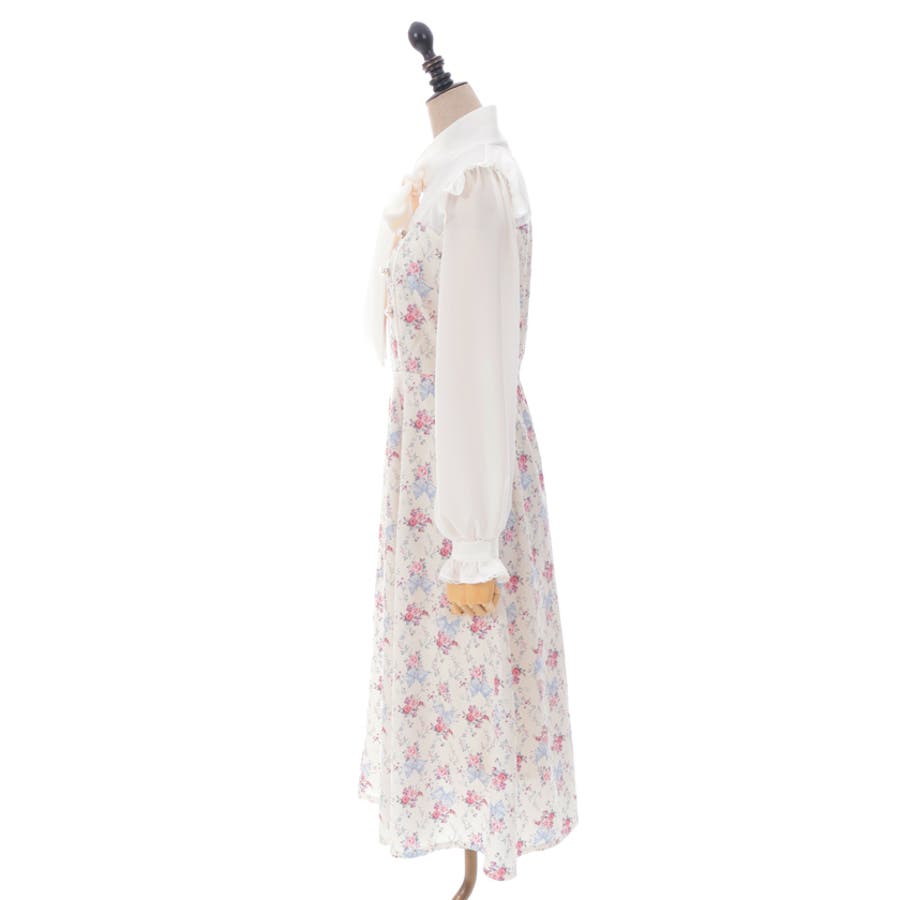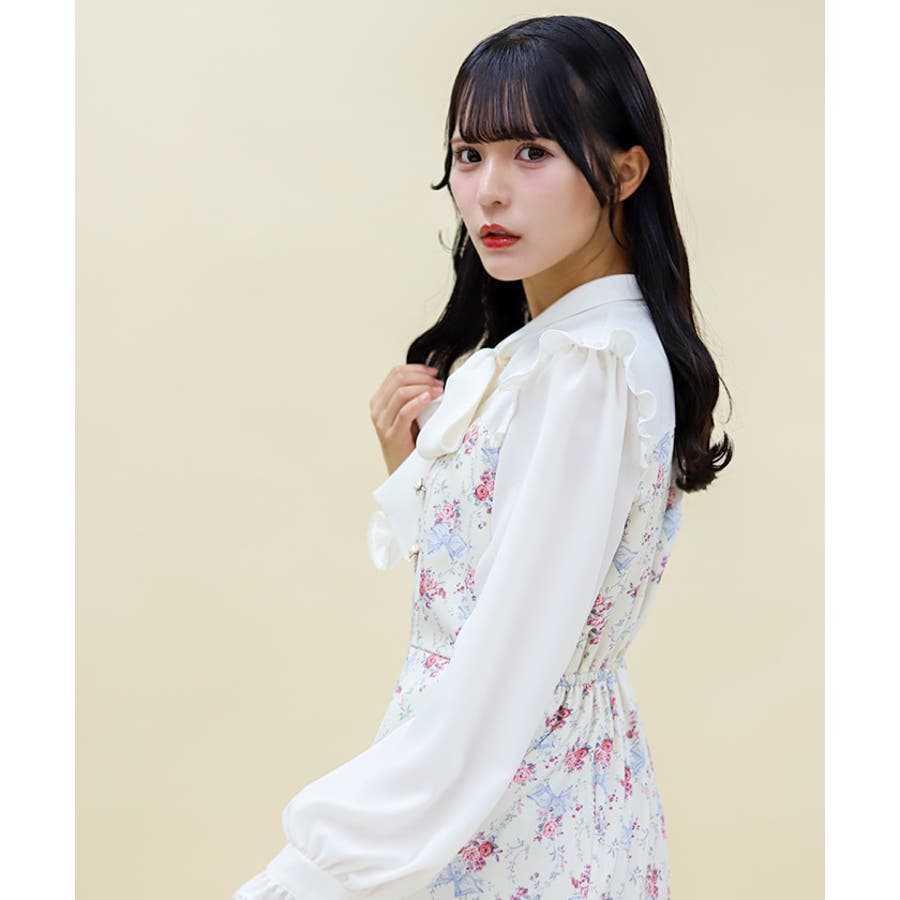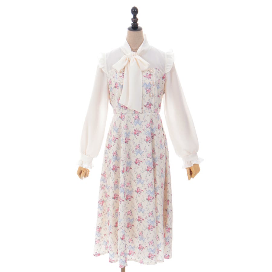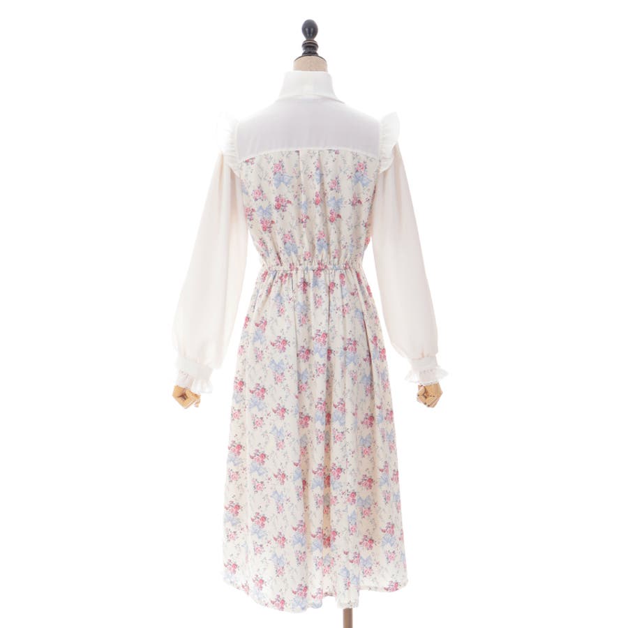 ブーケとリボンを散りばめた華やかなプリントが目を惹くワンピースです。