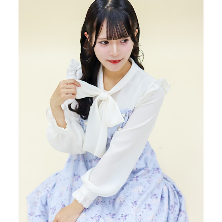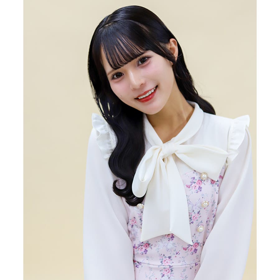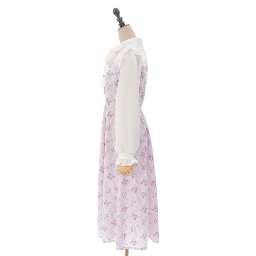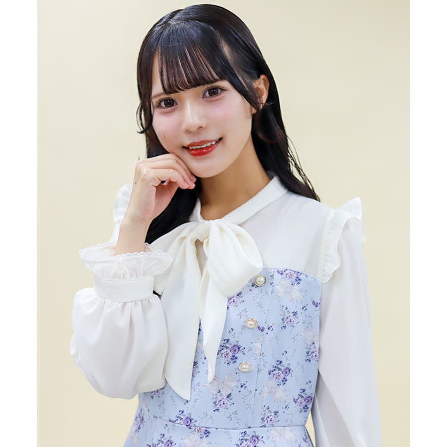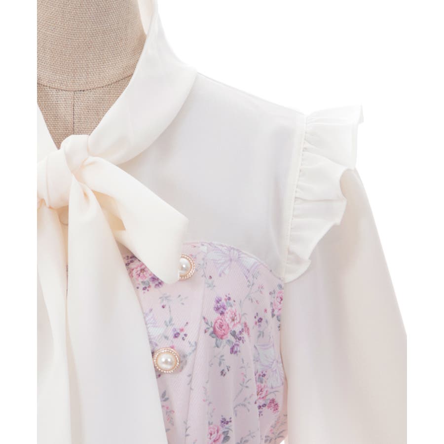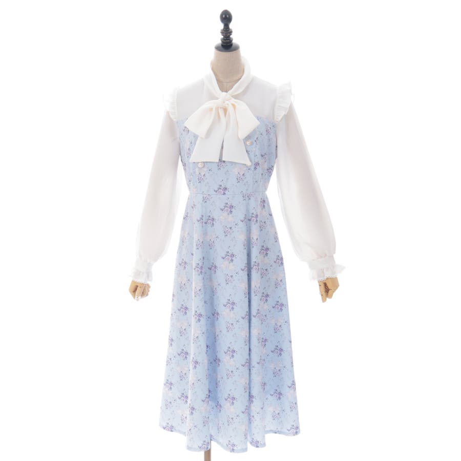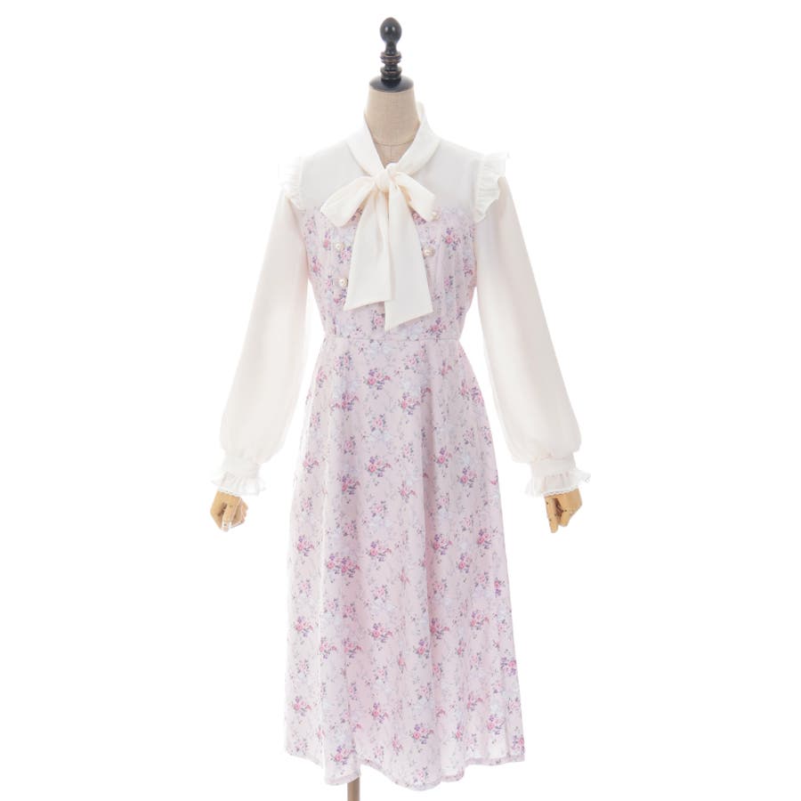 ブーケとリボンを散りばめた華やかなプリントが目を惹くワンピースです。