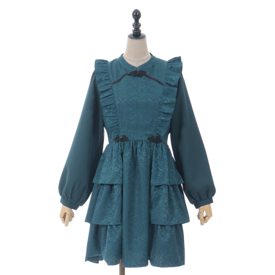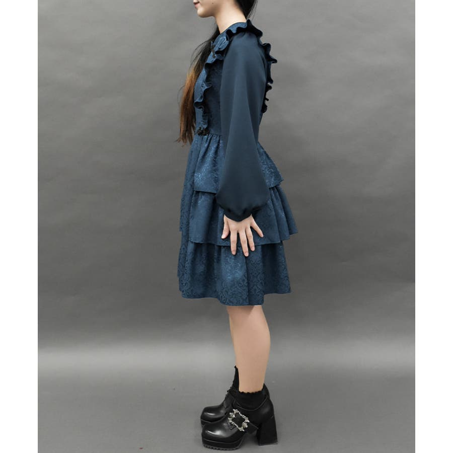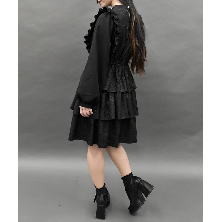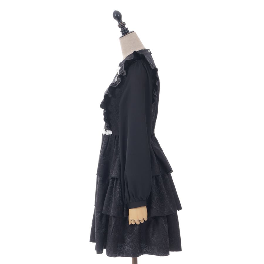 ジャカード生地が華やかなミニ丈ワンピースです。