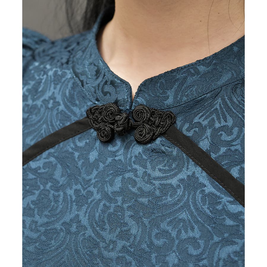 組紐から着想を得たアジアンノットボタンをポイントにあしらいました。