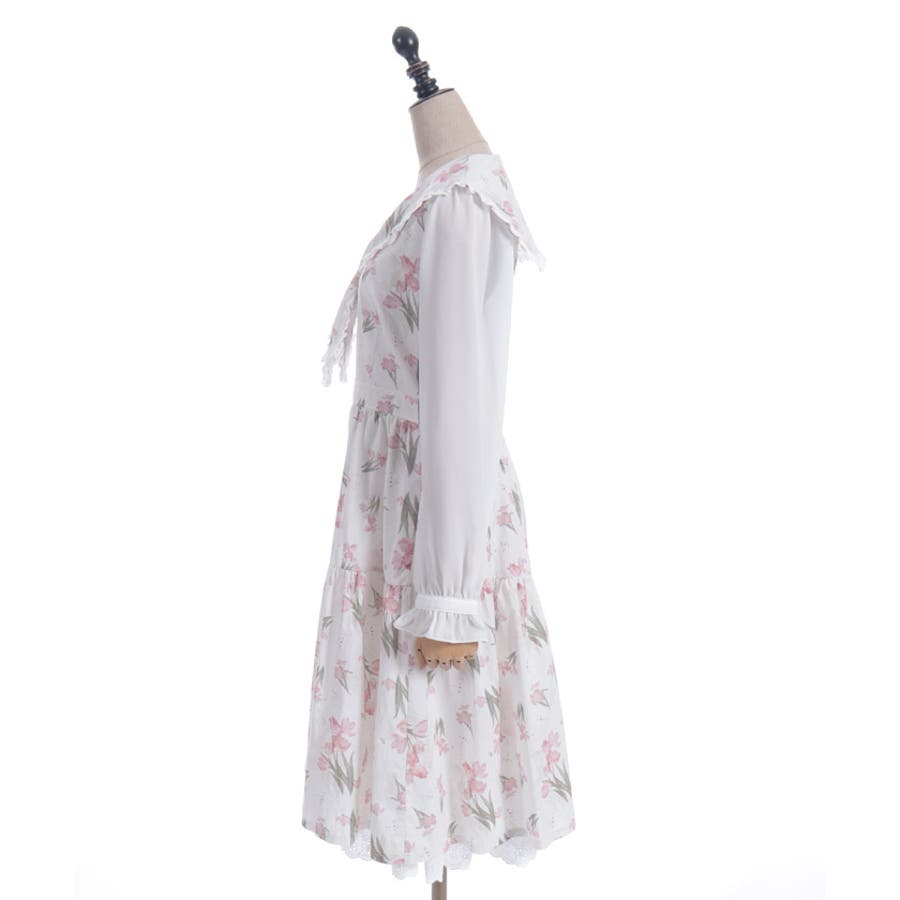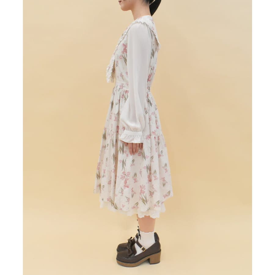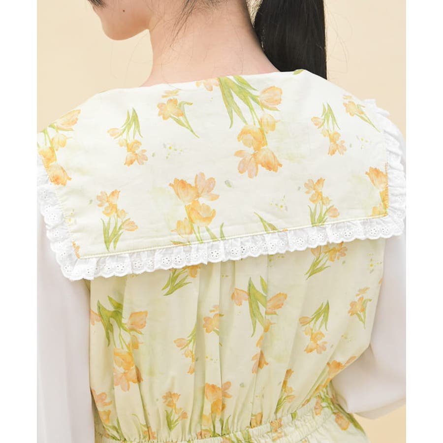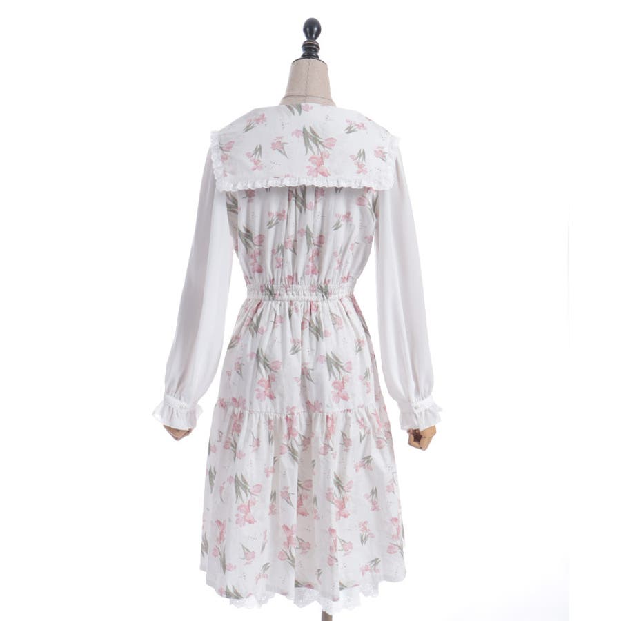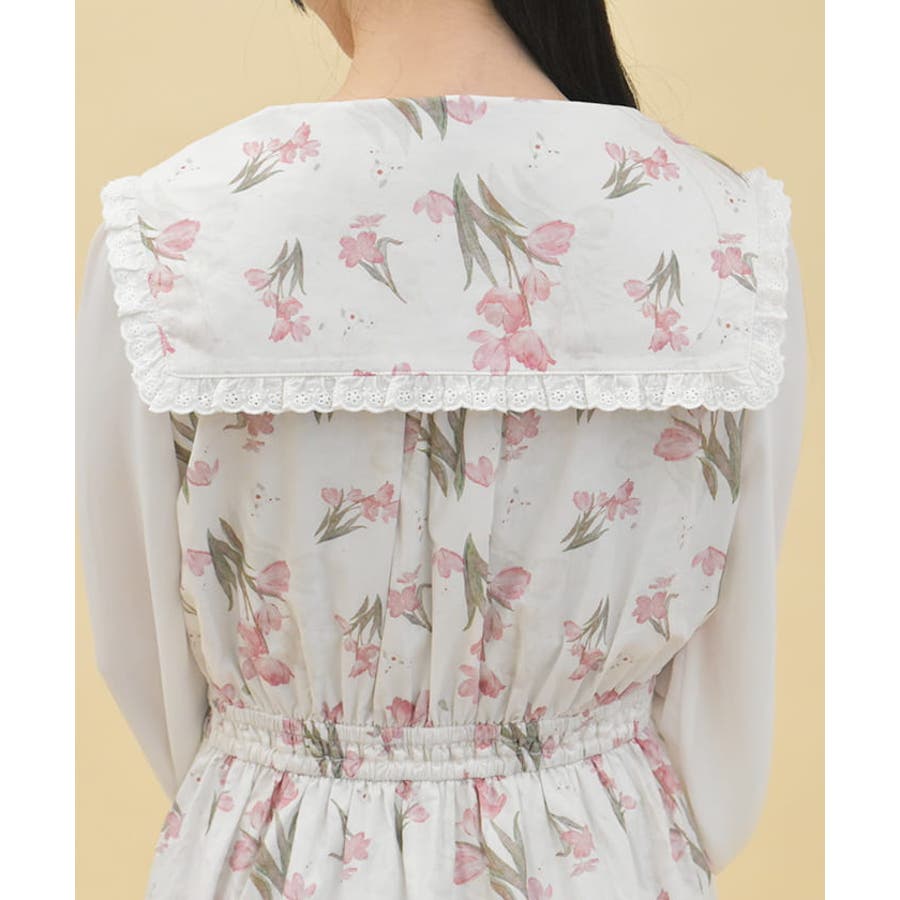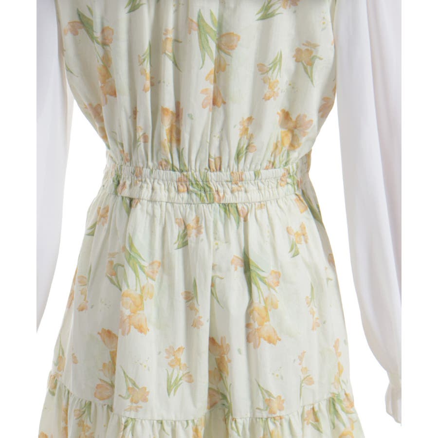 春らしいフラワープリント生地が目を惹くガーリーなワンピースです。