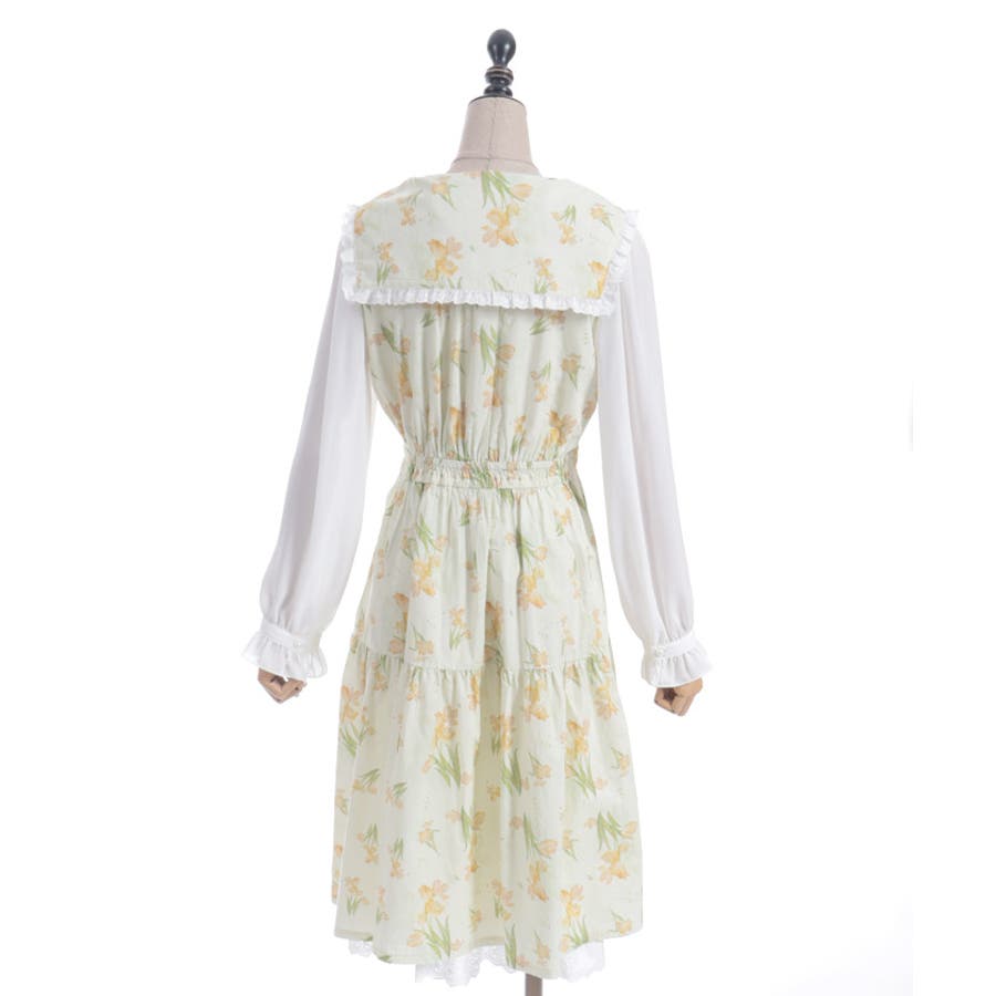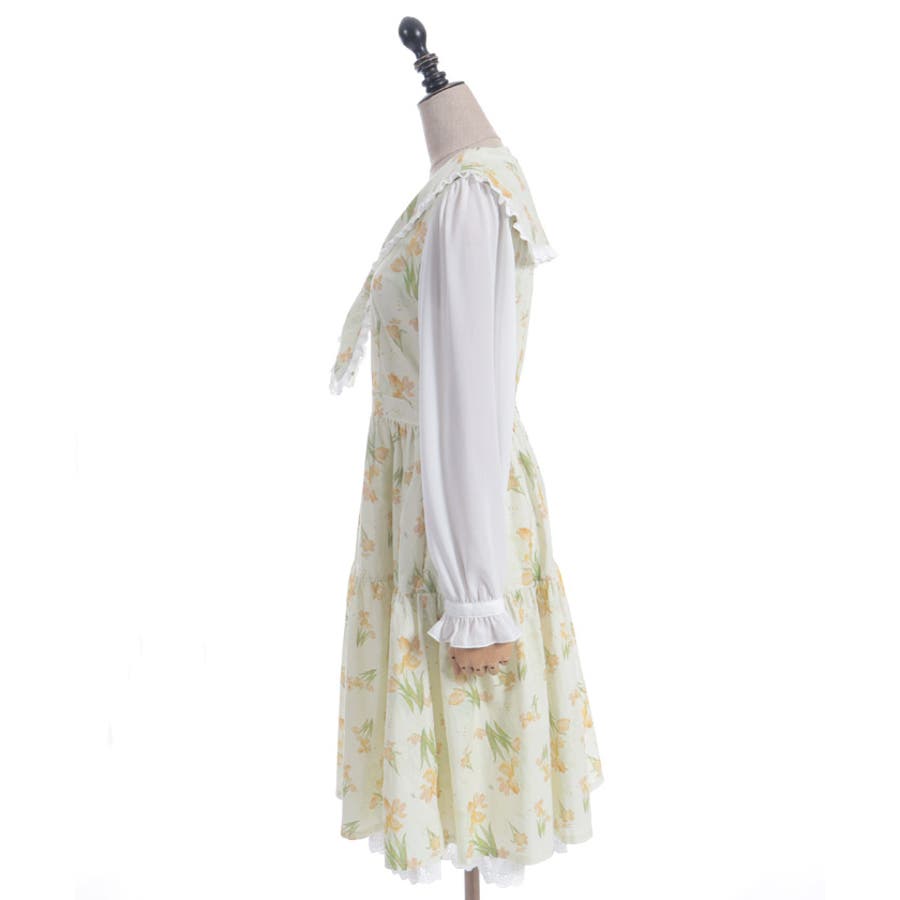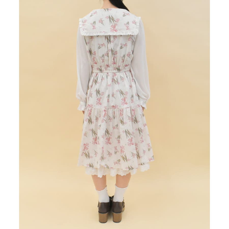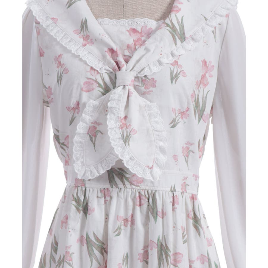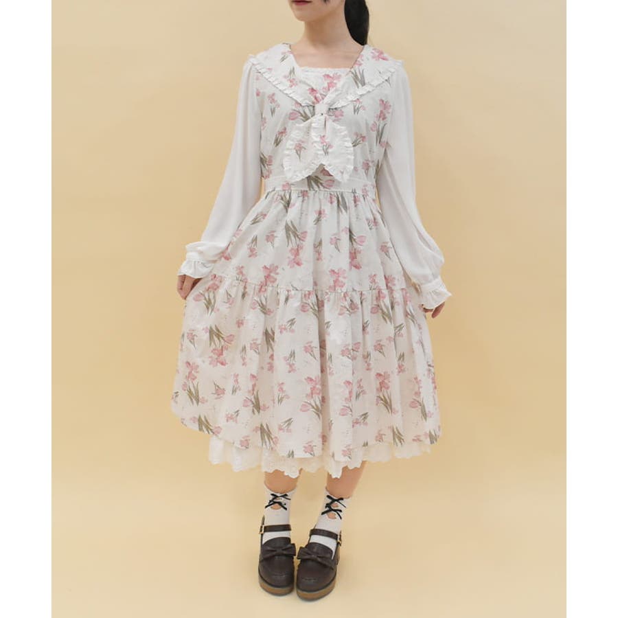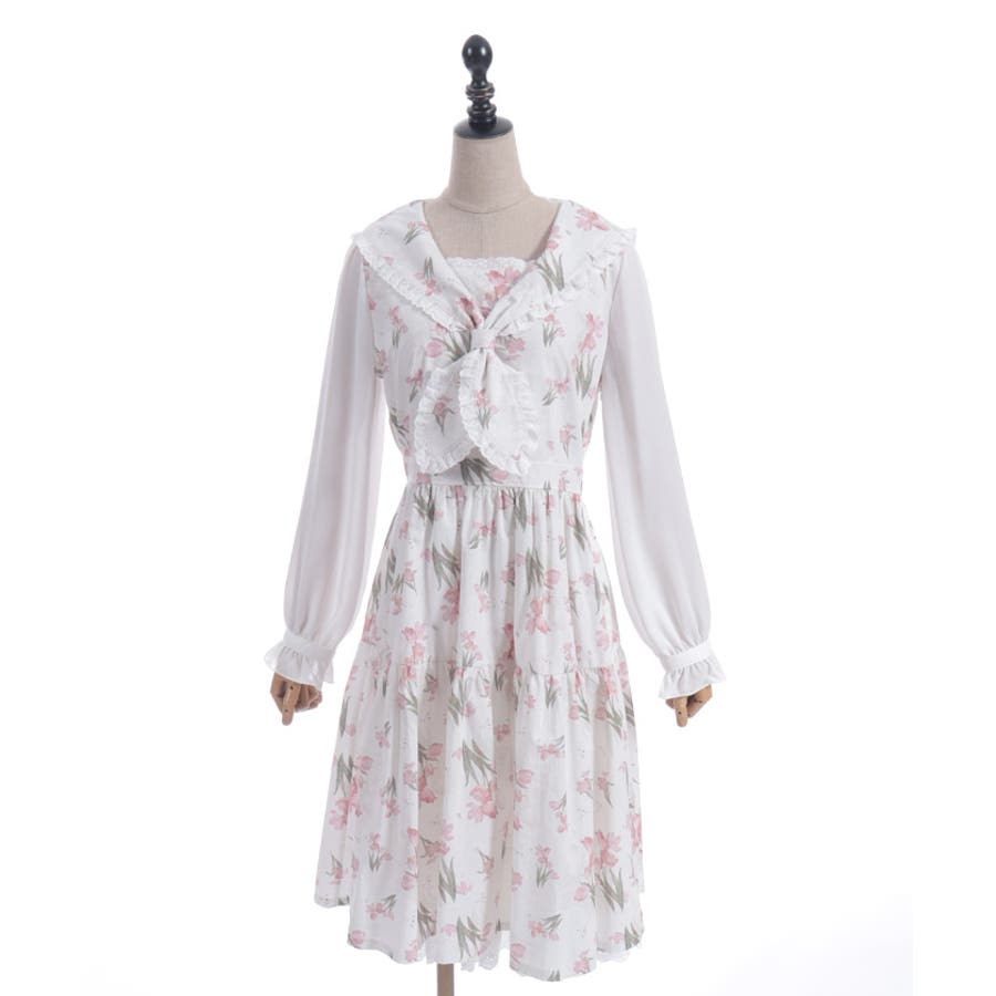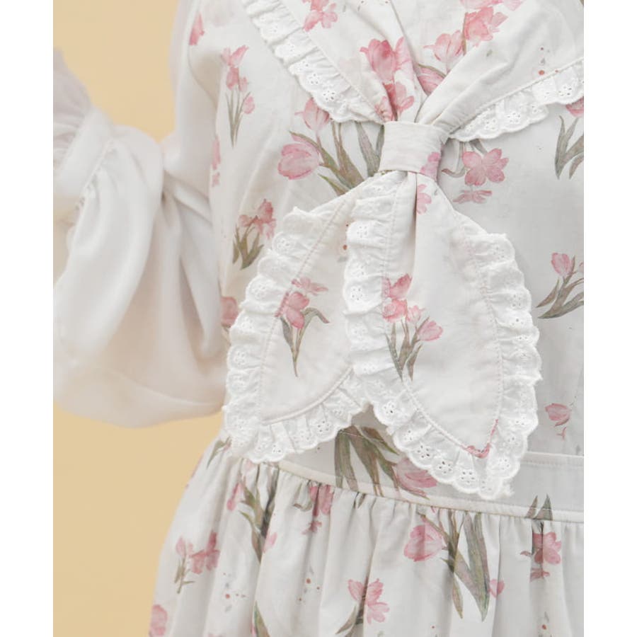 春らしいフラワープリント生地が目を惹くガーリーなワンピースです。