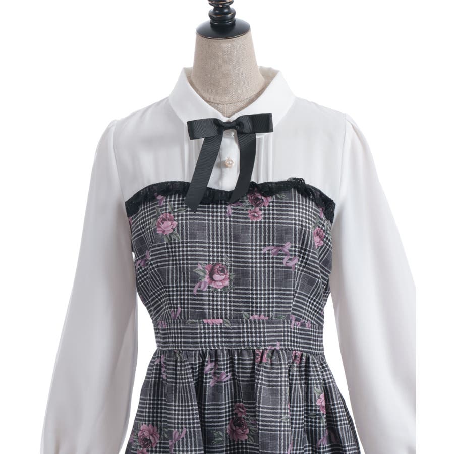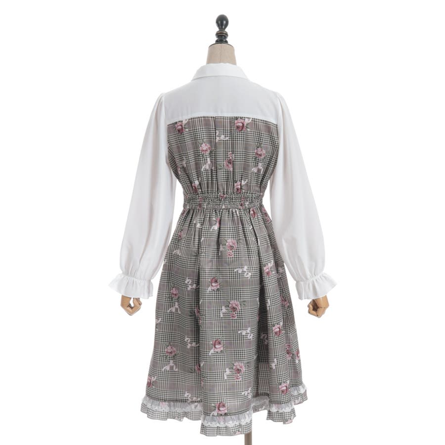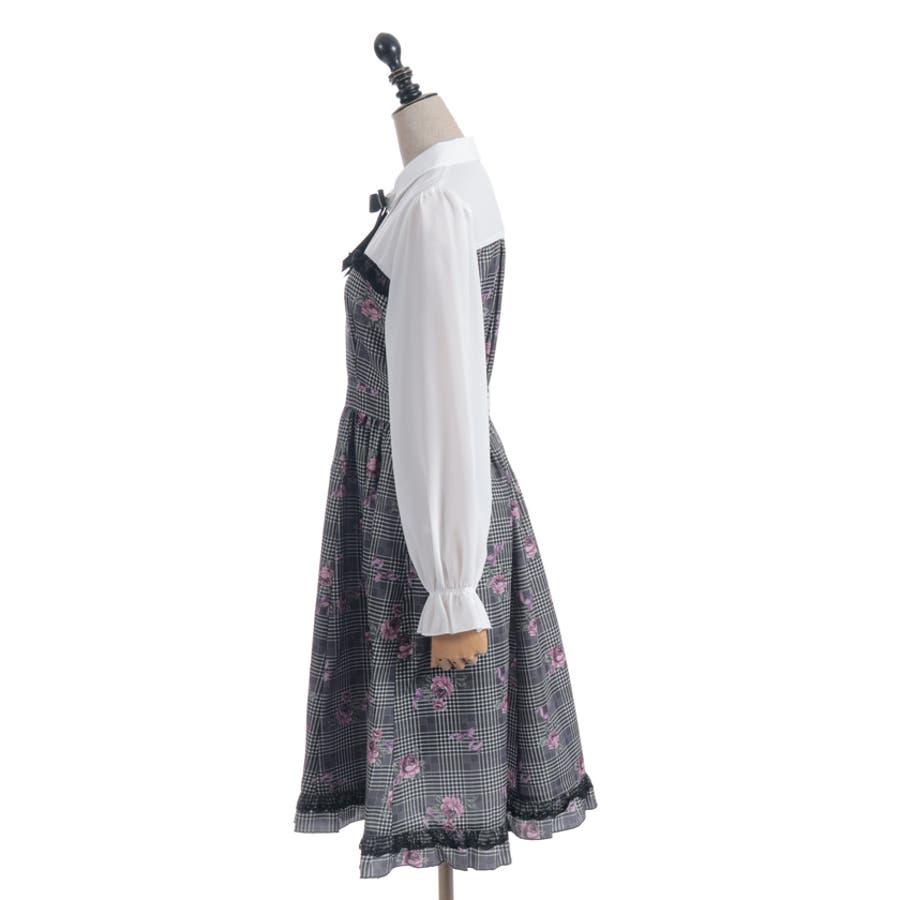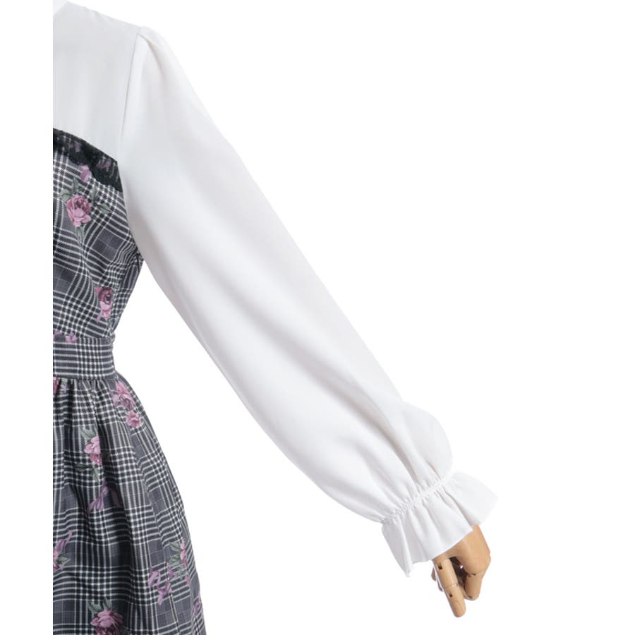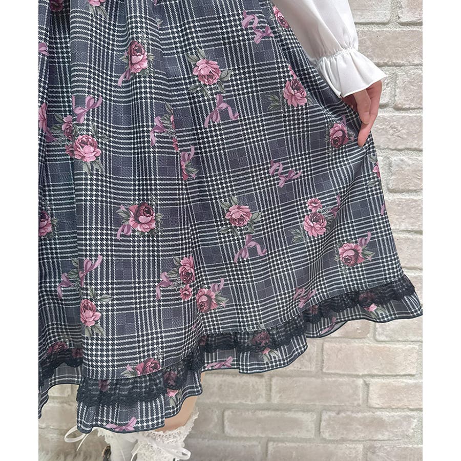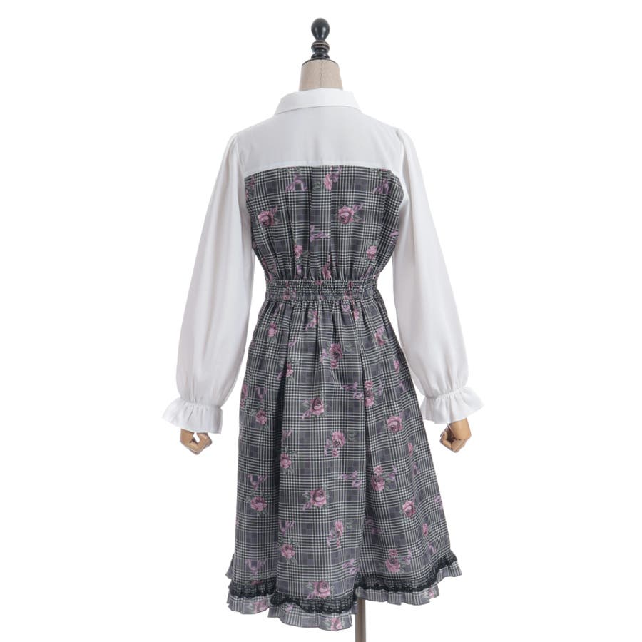 ホリデームードにぴったりのチェック×ローズ柄のワンピース