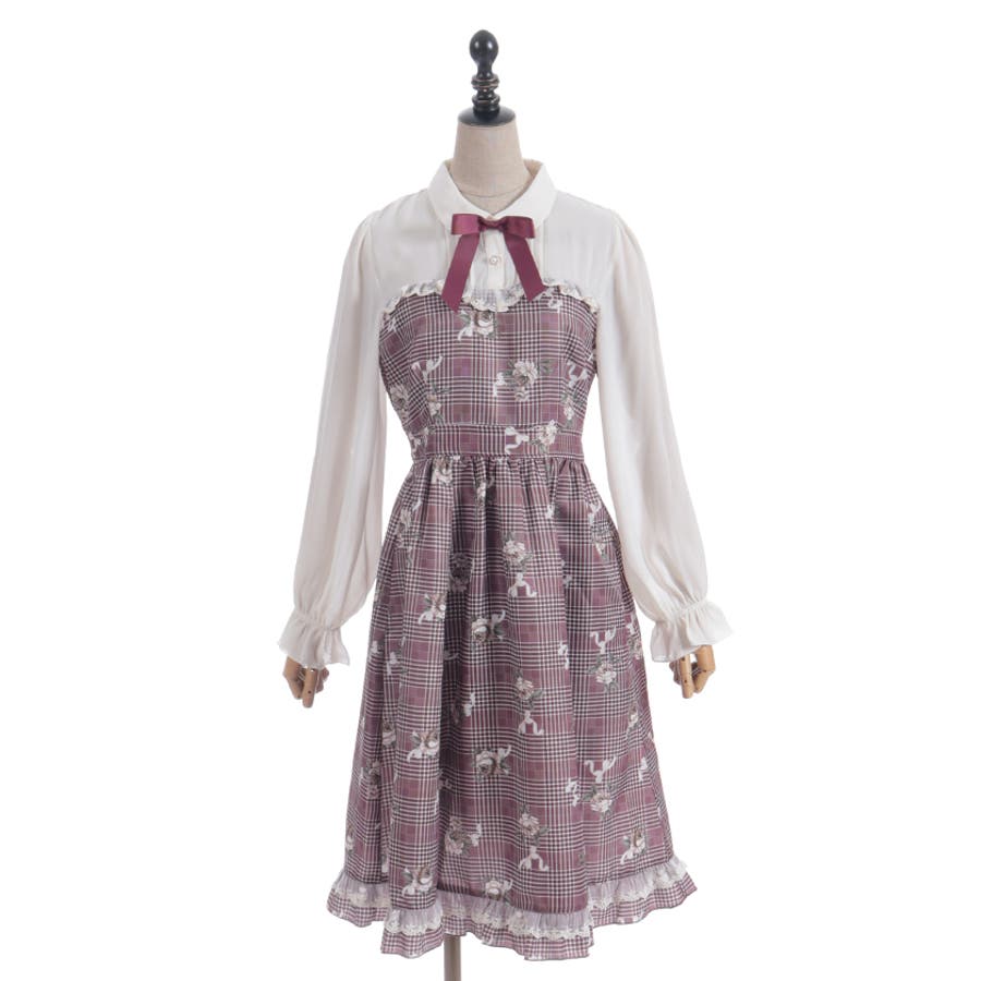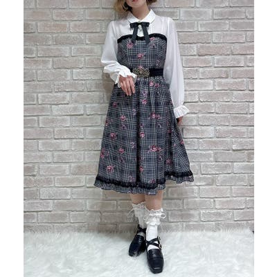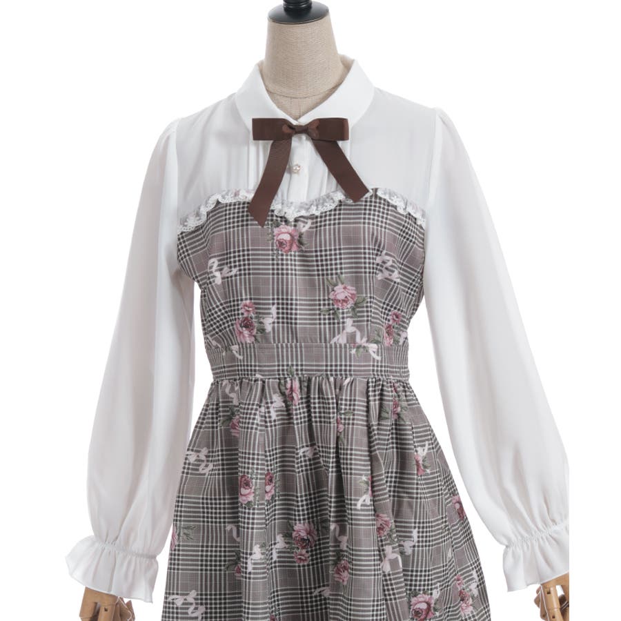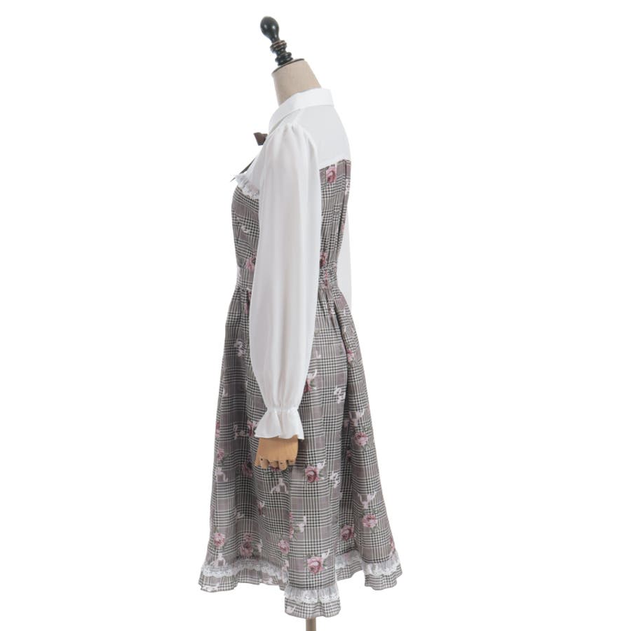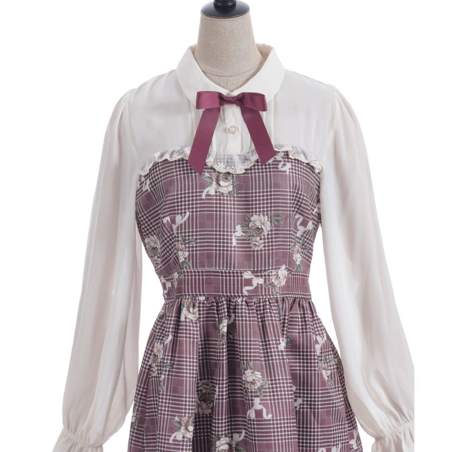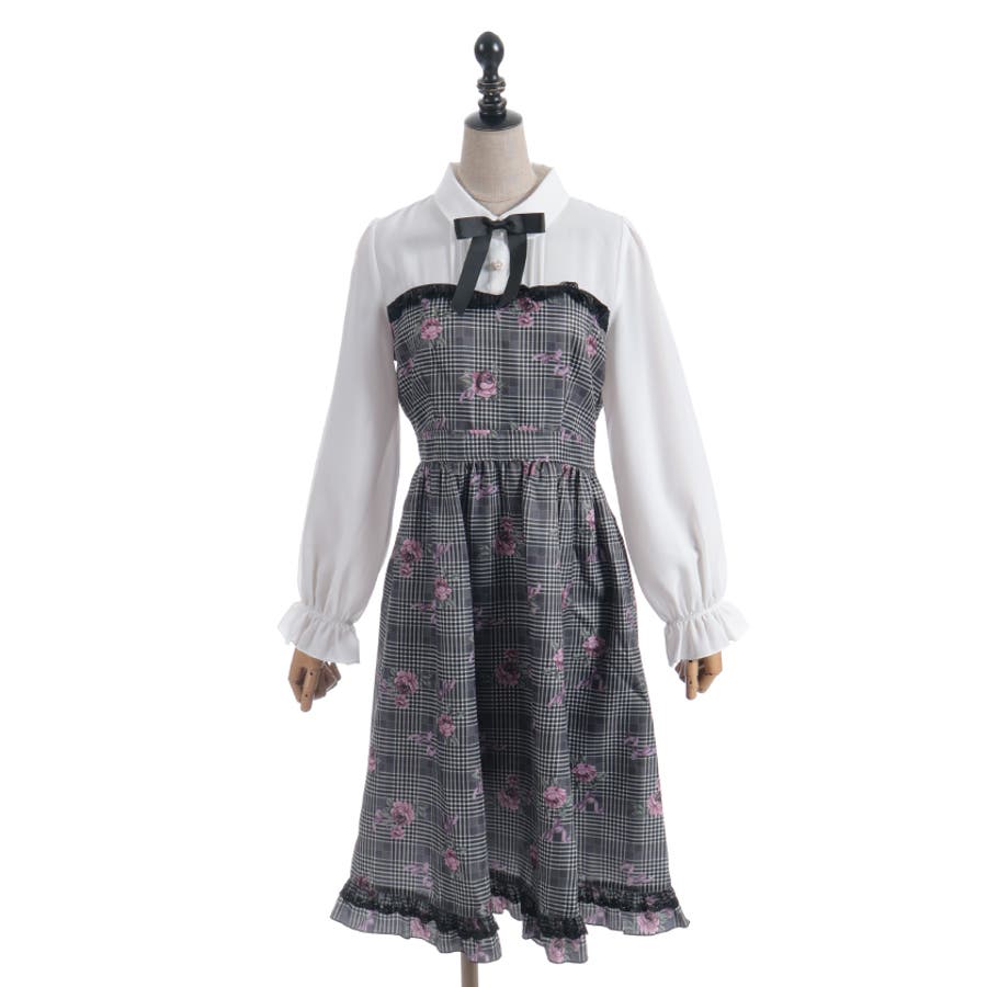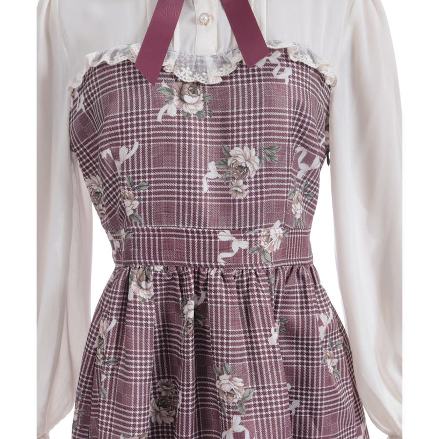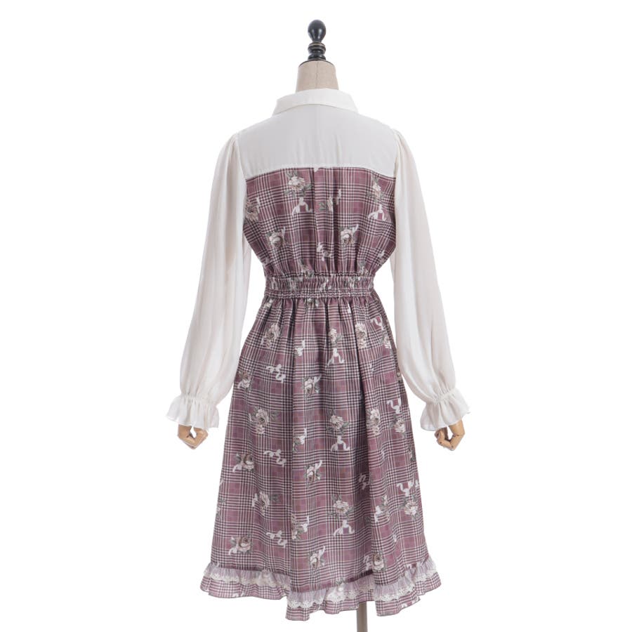 ホリデームードにぴったりのチェック×ローズ柄のワンピース