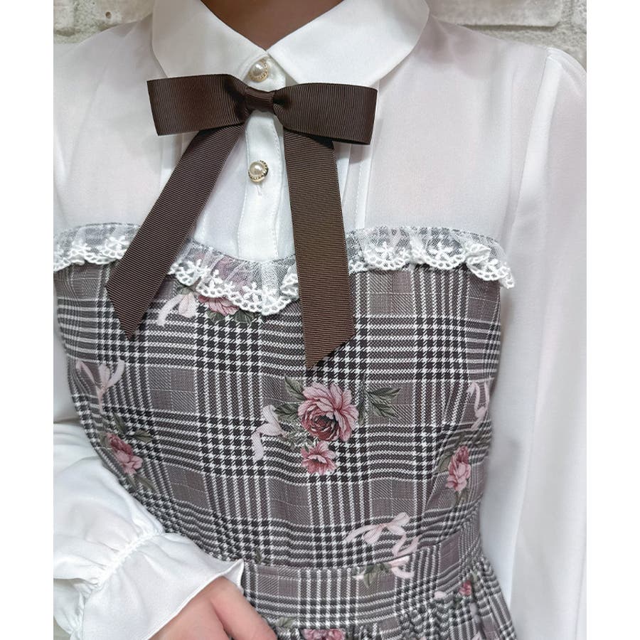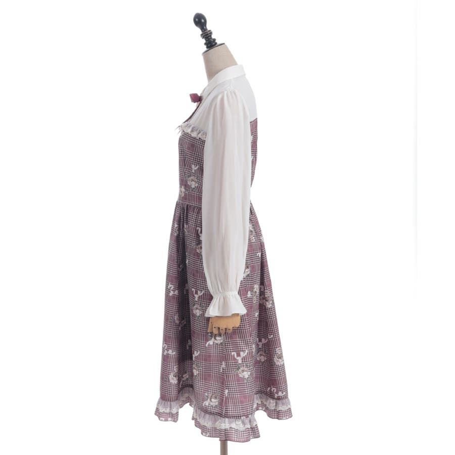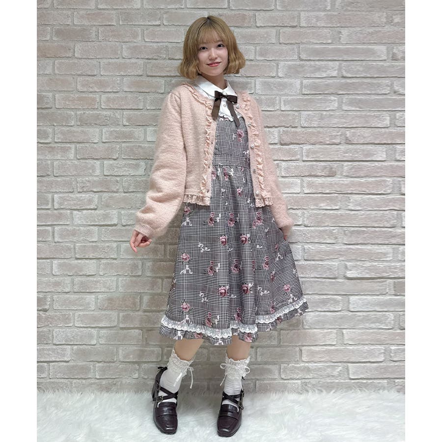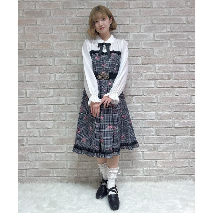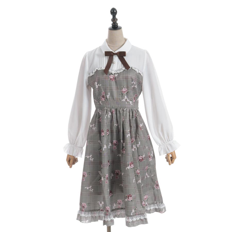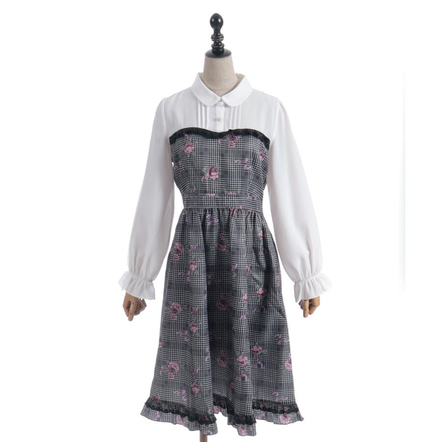 ホリデームードにぴったりのチェック×ローズ柄のワンピース