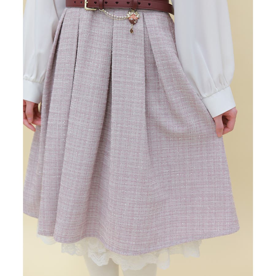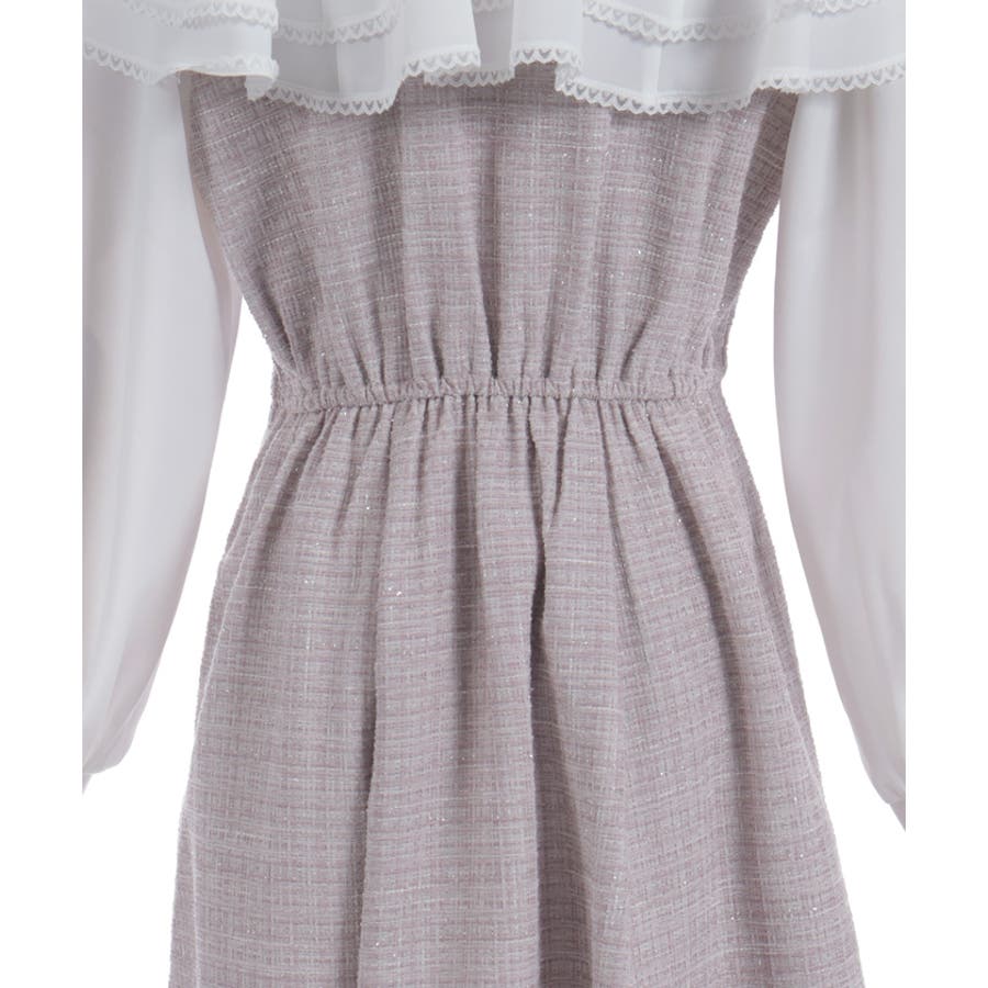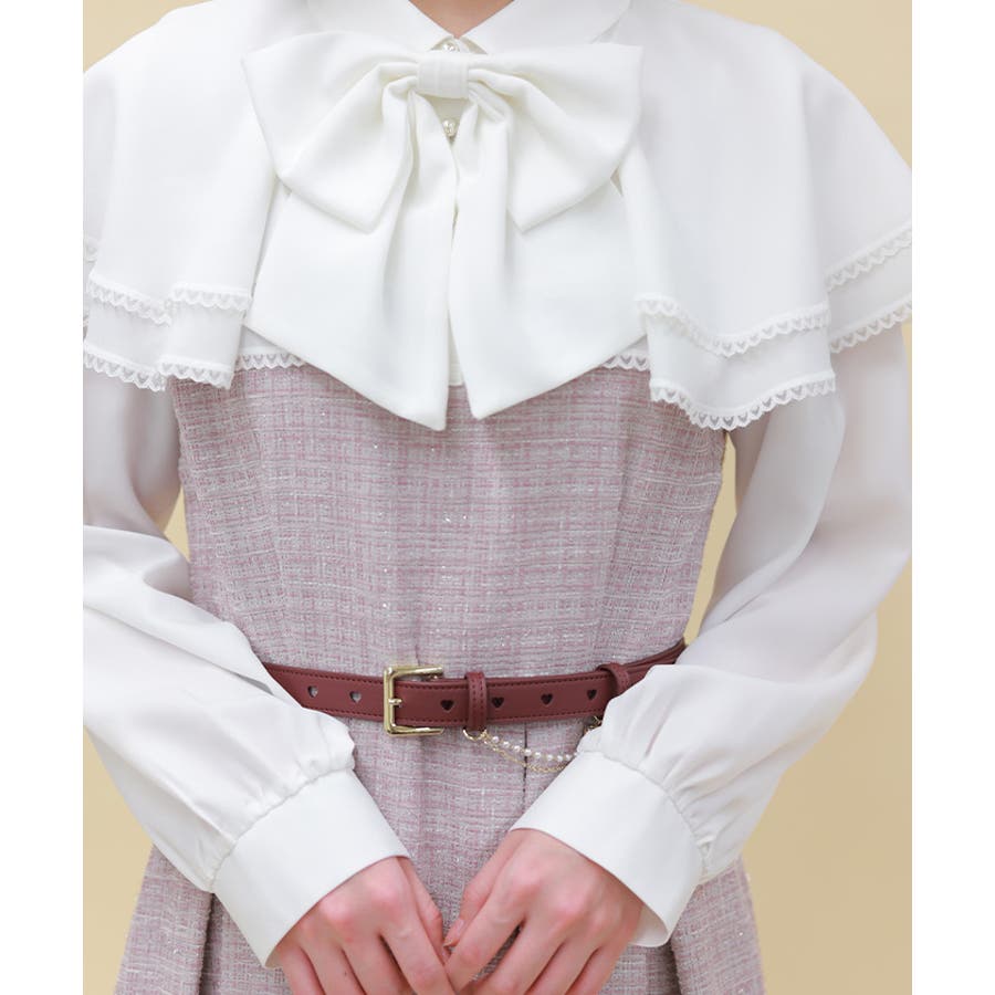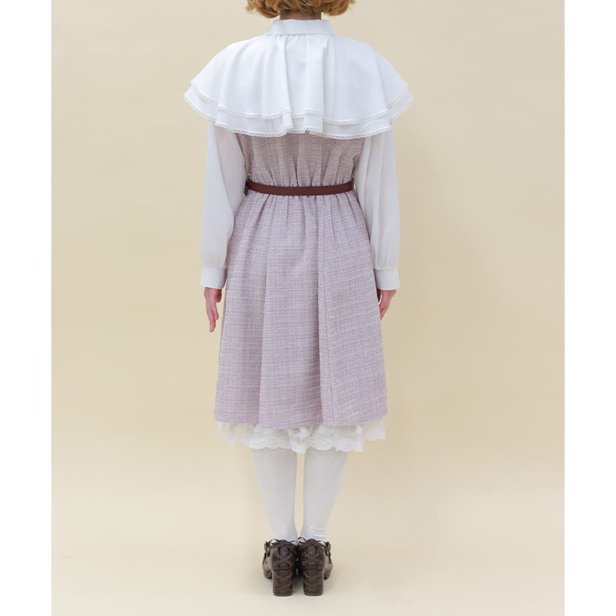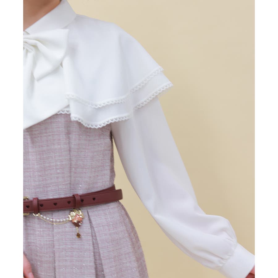 ケープ風にブラウス生地を重ねたデザインがガーリーなシルエットを演出。