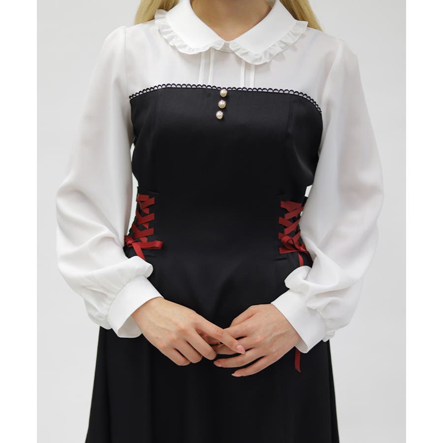 ビスチェ風に切り替えたシルエットがガーリーなワンピースです。