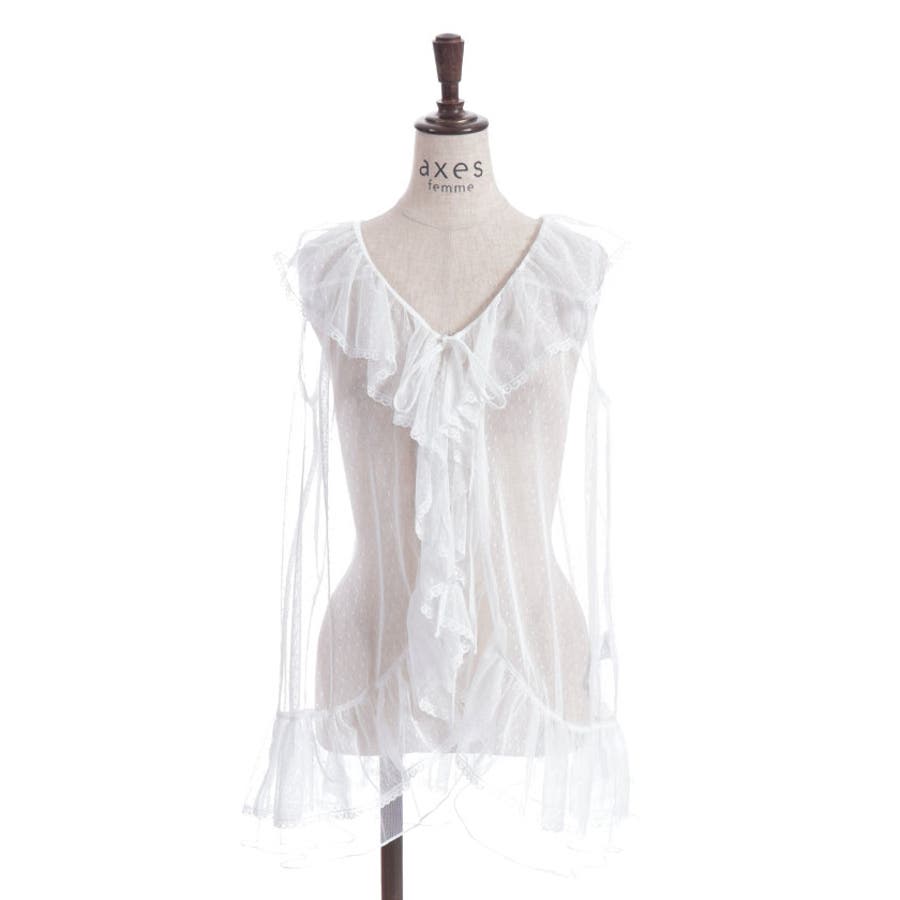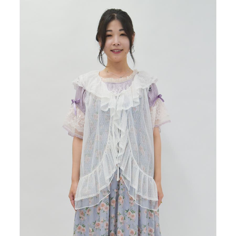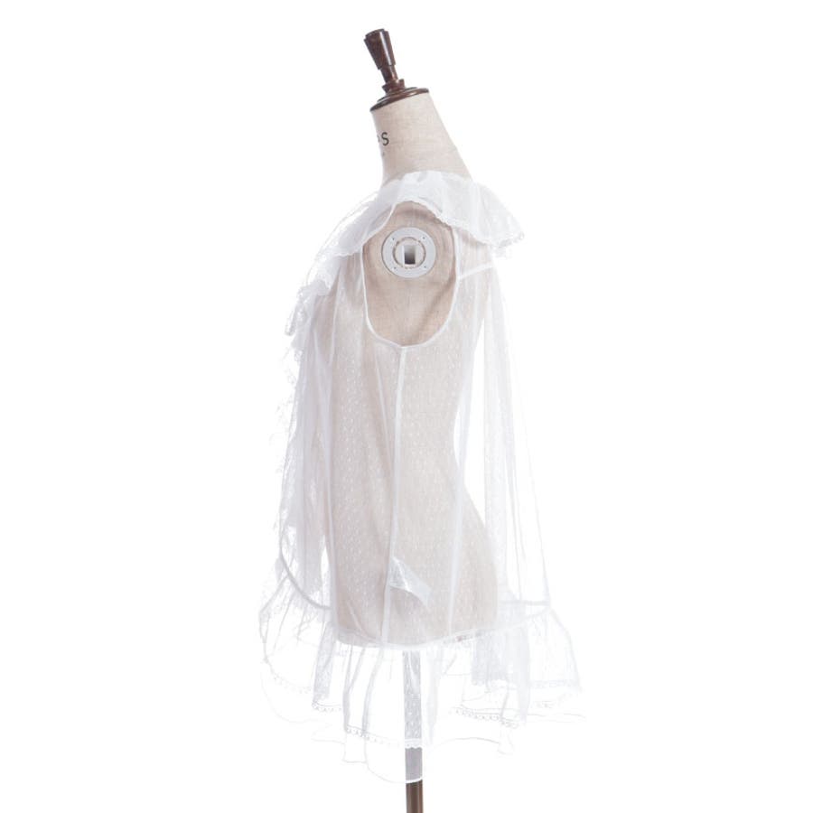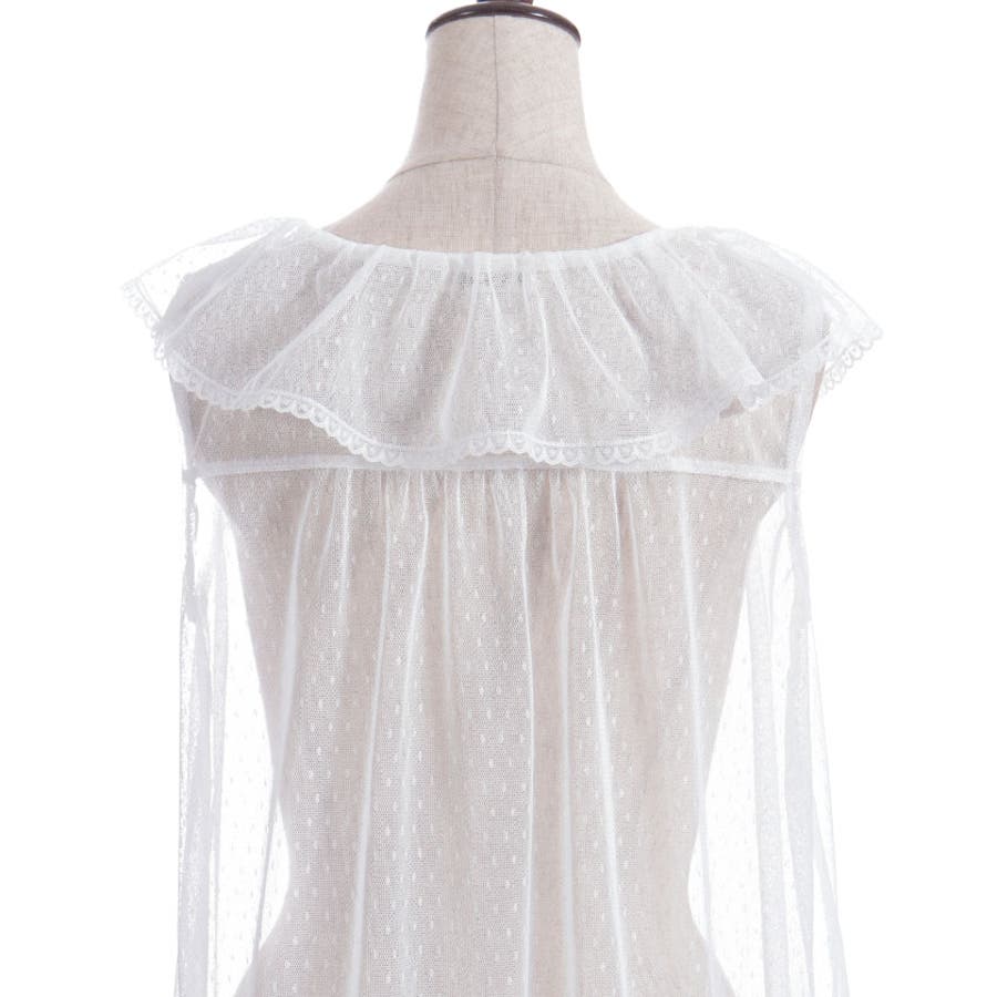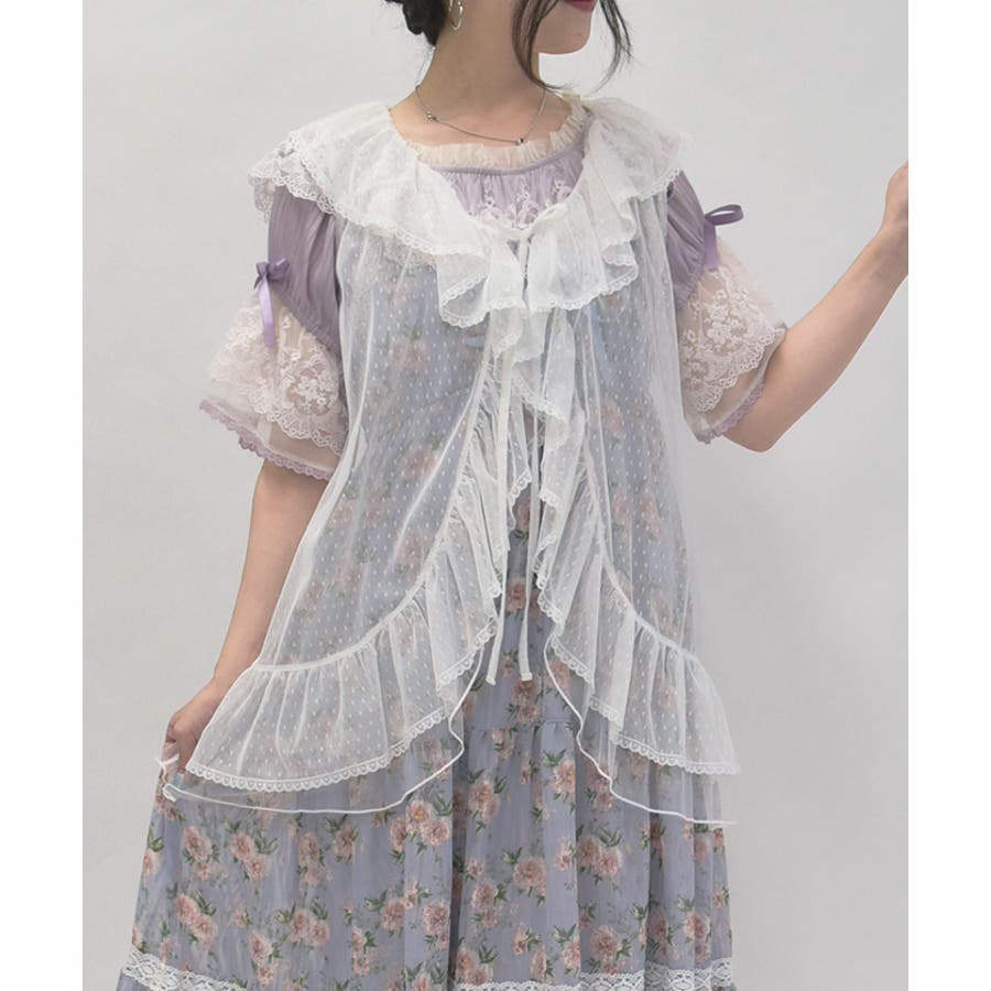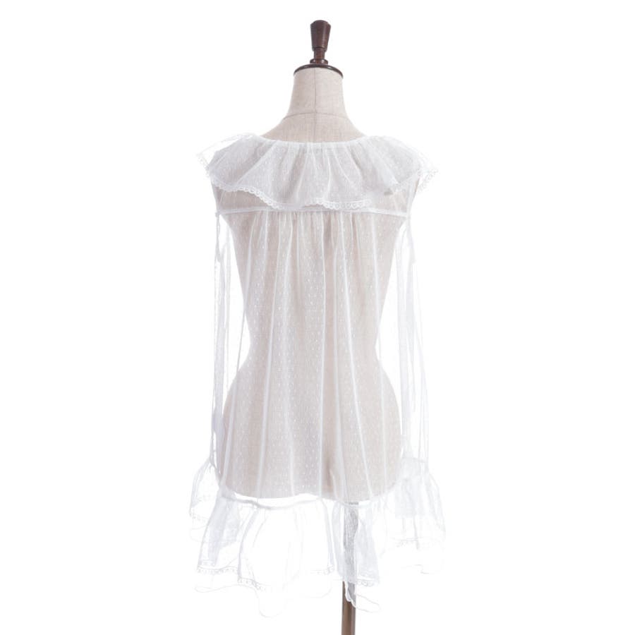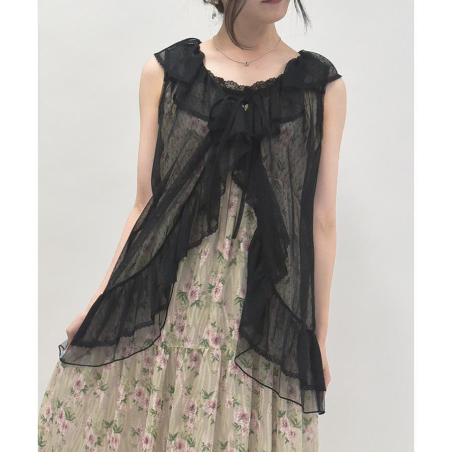 透け感のあるドットチュール素材を使用したジレのように扱えるガウンです。