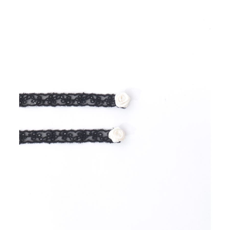 リボン先にはローズモチーフをあしらいワンポイントをプラス。