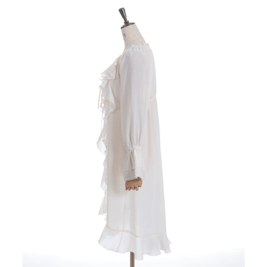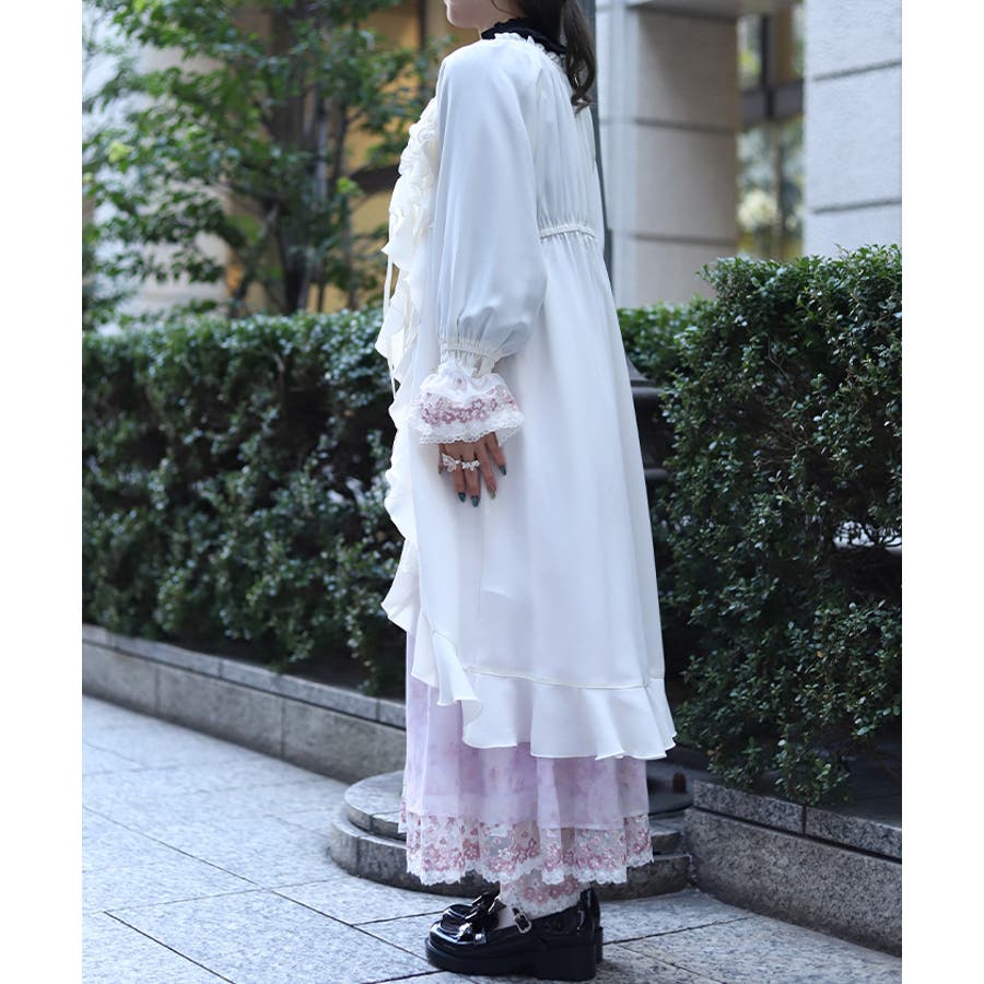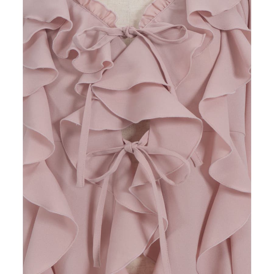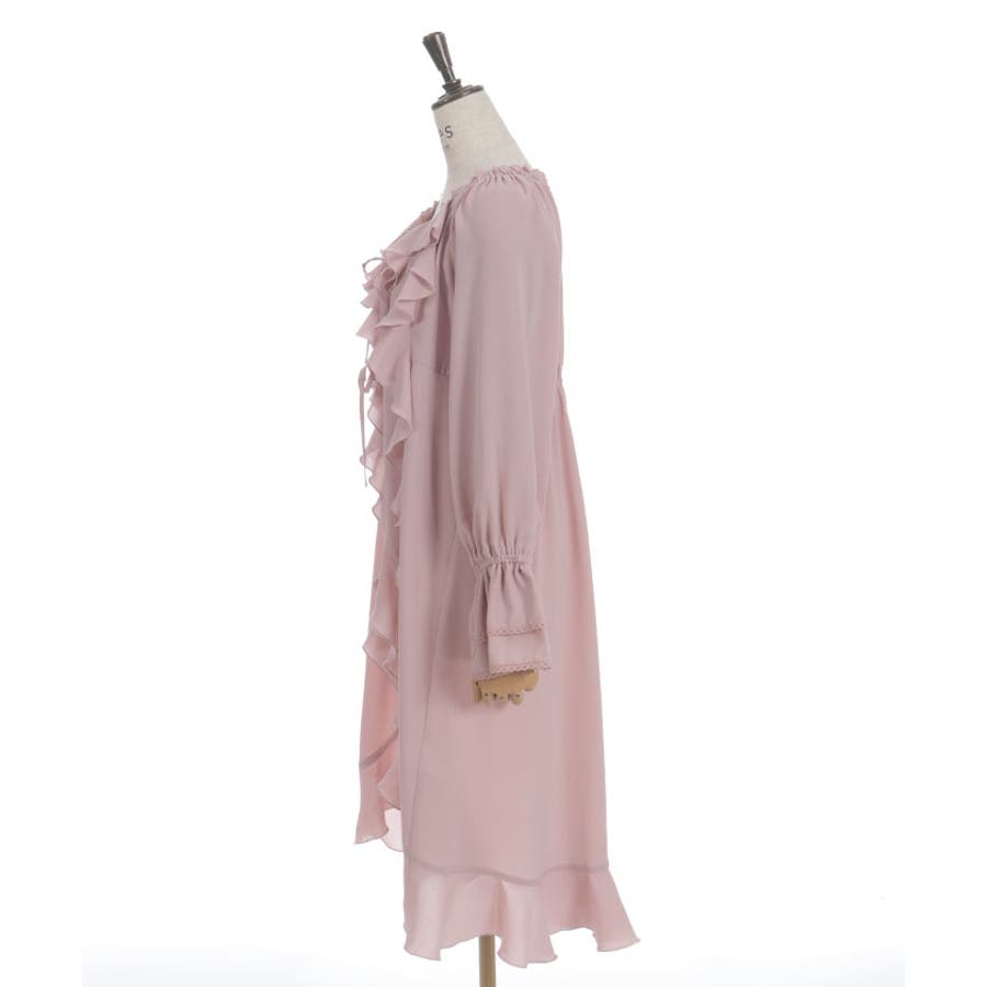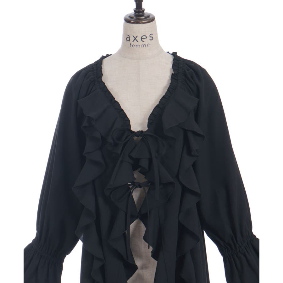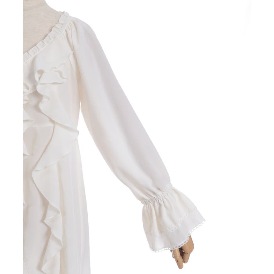 フロントにあしらったフリルが動きを生み、落ち感のある素材が全体をすっきりと見せてくれます。甘さを抑えたデザインで、上品さと存在感を兼ね備えた一着です。