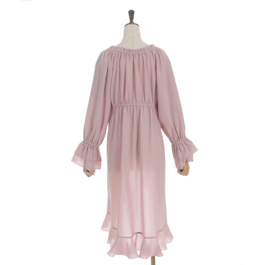 縦に流れるシルエットが美しく、羽織るだけでエレガントな雰囲気を纏えるロングガウン。