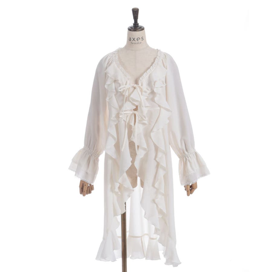 ワンピースに重ねて特別感のある装いに仕上げたり、シンプルなコーデに羽織って主役として取り入れるのもおすすめ。着こなしに奥行きを与え、洗練された印象へ導いてくれるガウンです。
