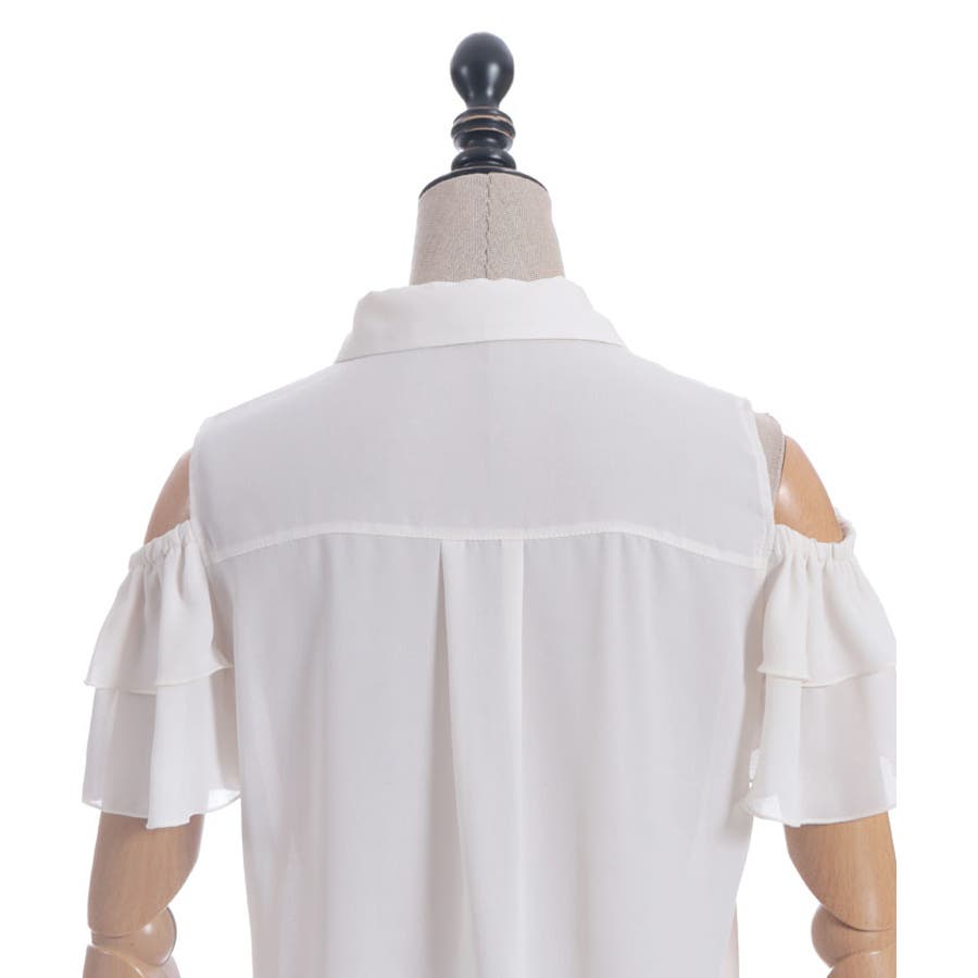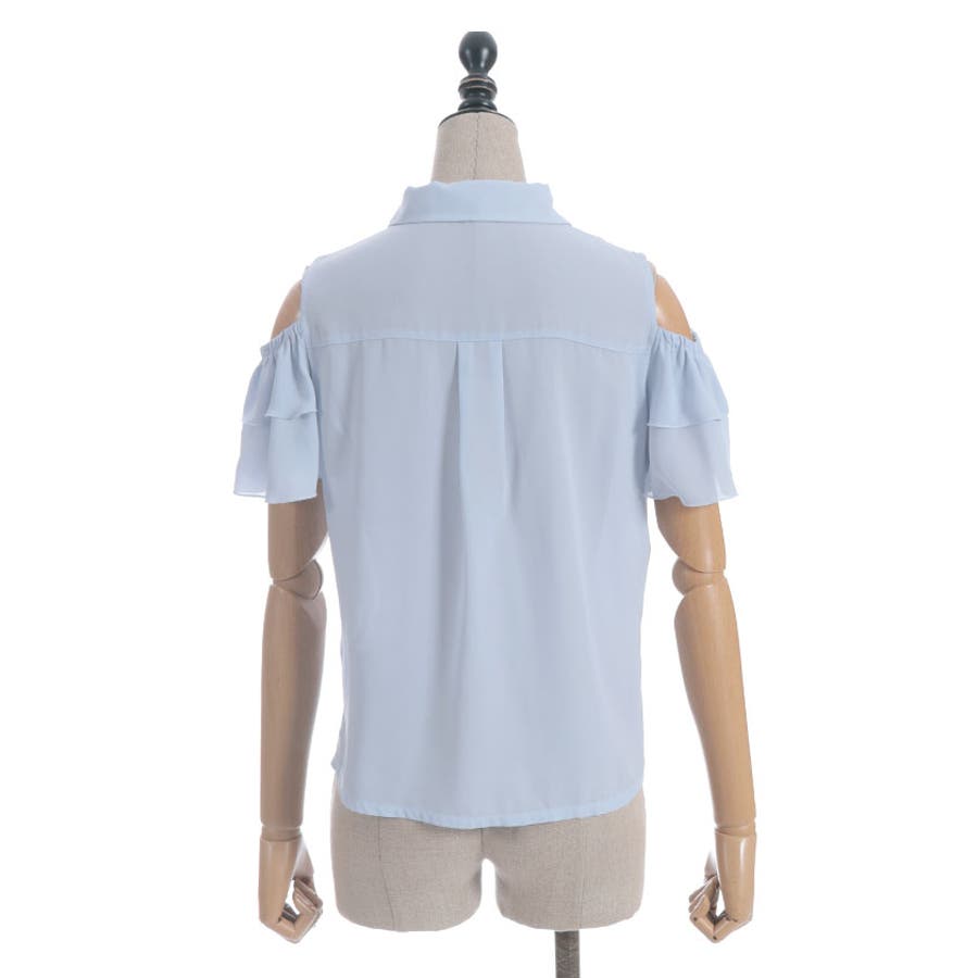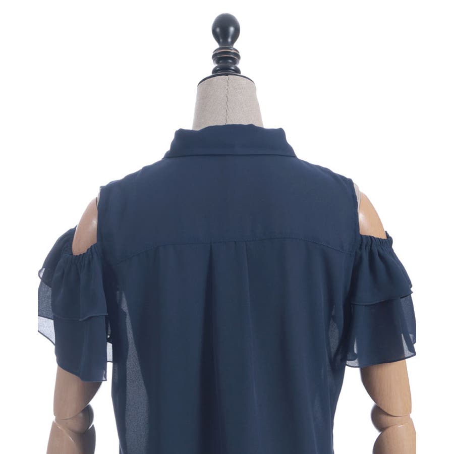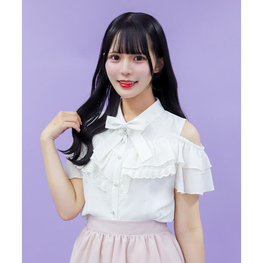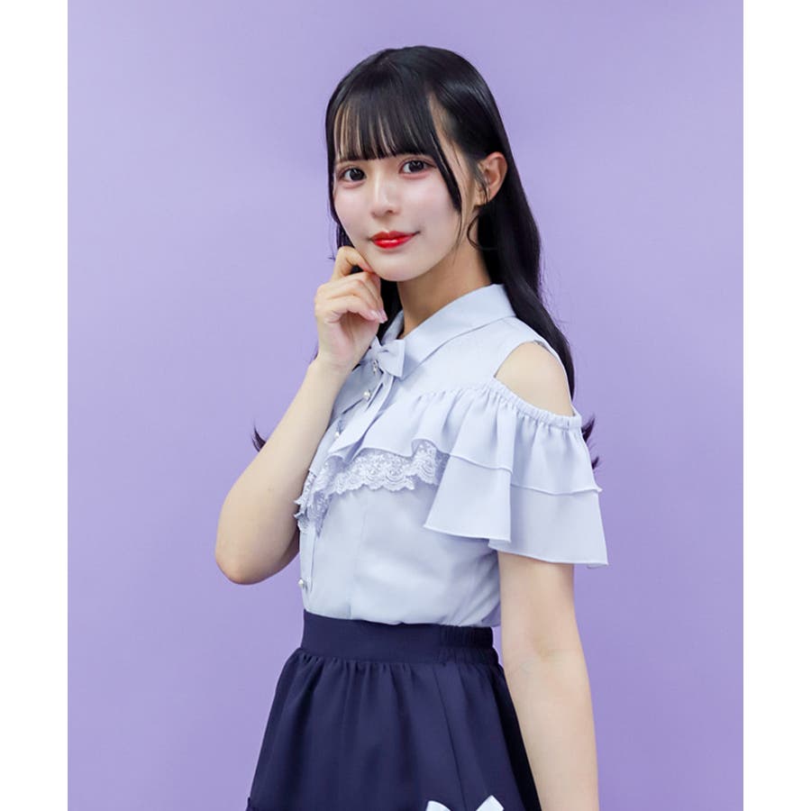 オフショルにもできるかわいいブラウスです。肩を出したくない時はボタンで留めれて2ウェイ仕様で着れます。