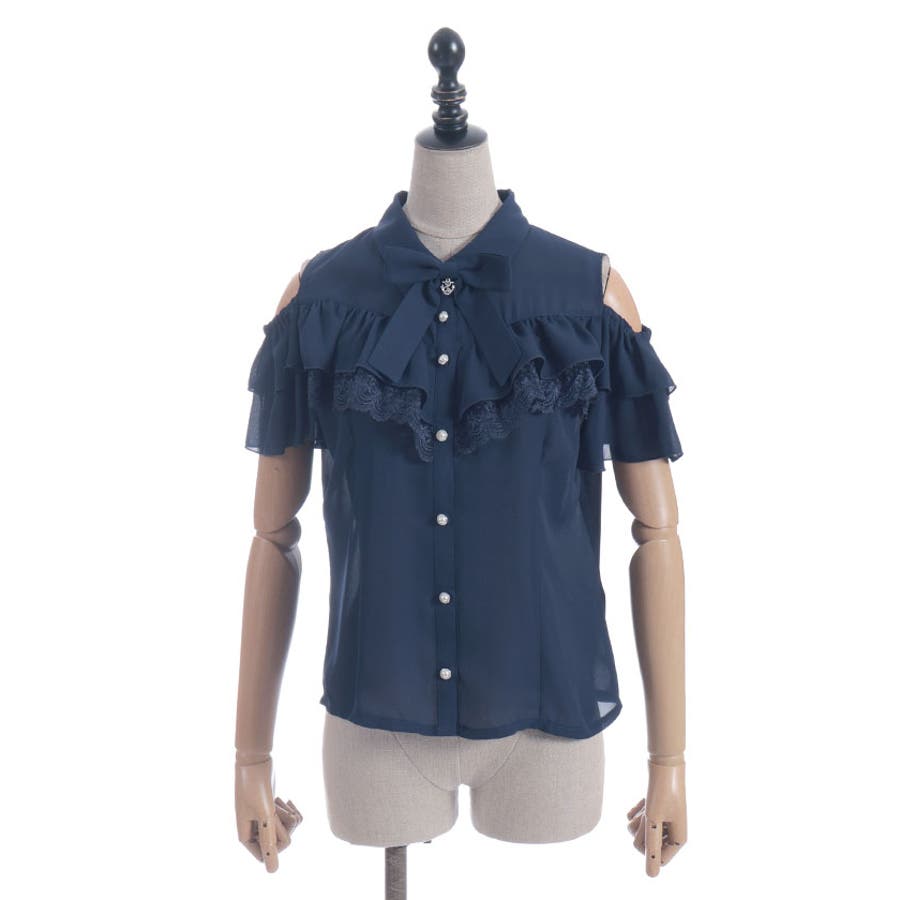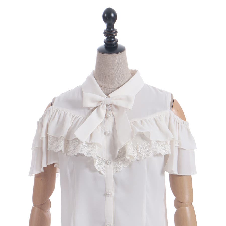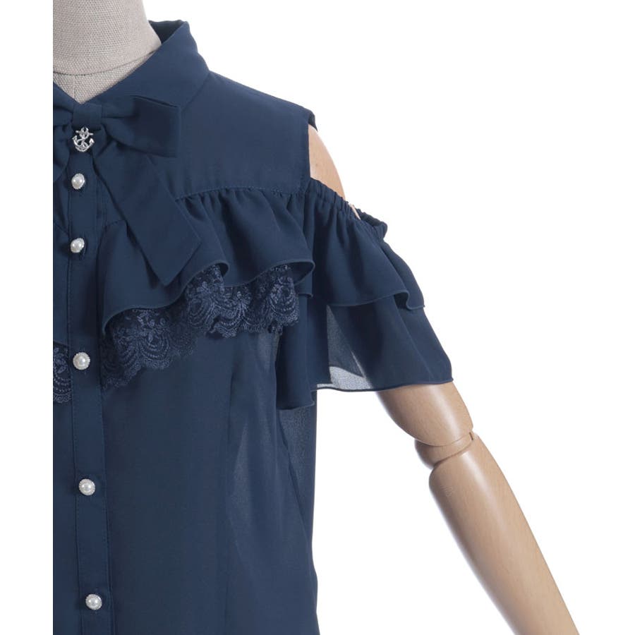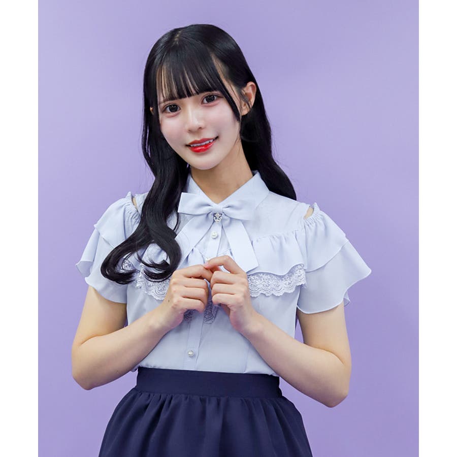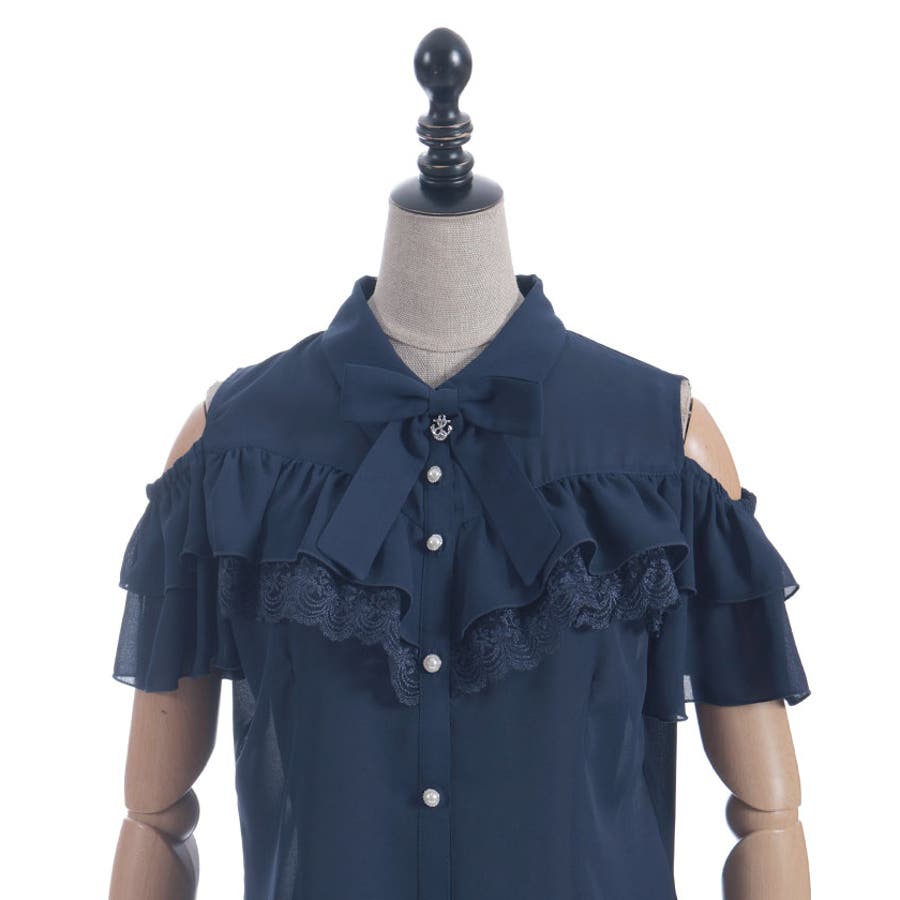 マリンチャーム付きリボンブローチがポイントのブラウスです。