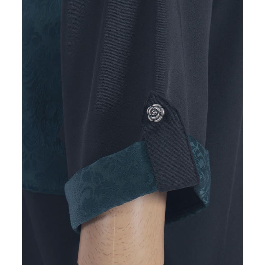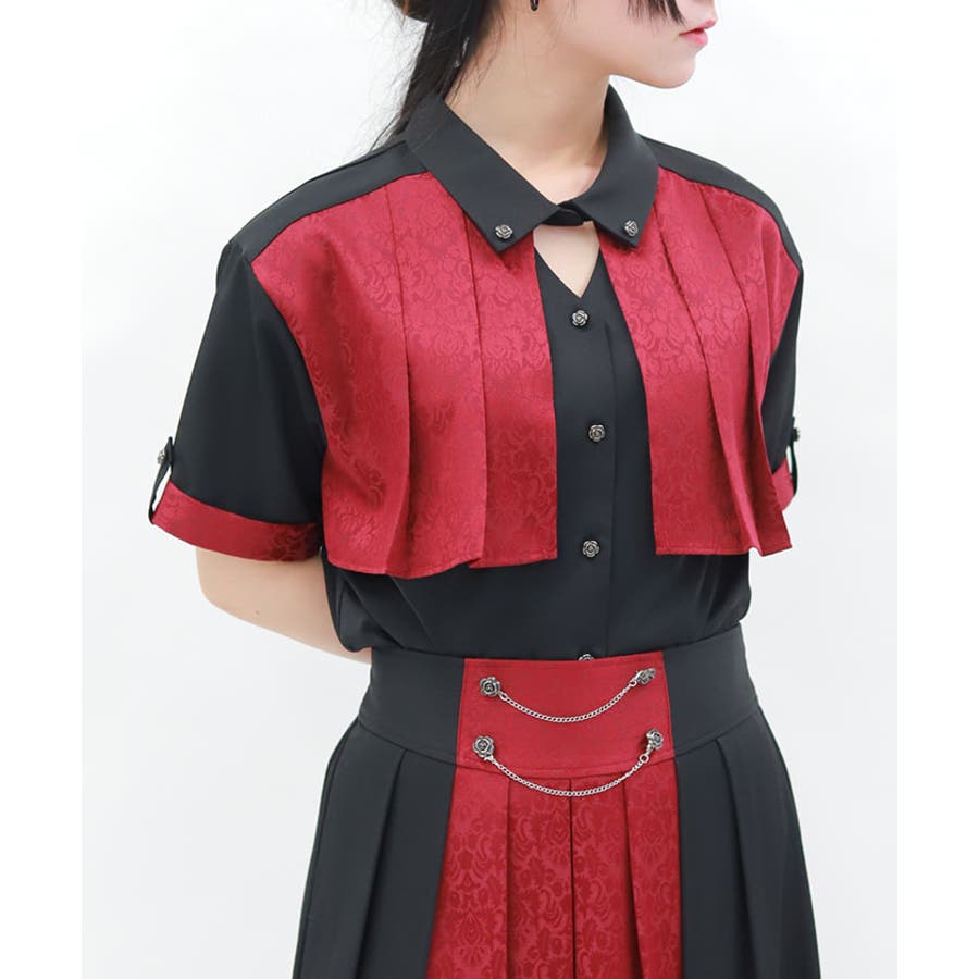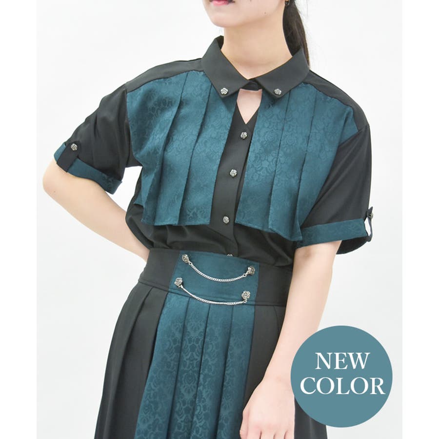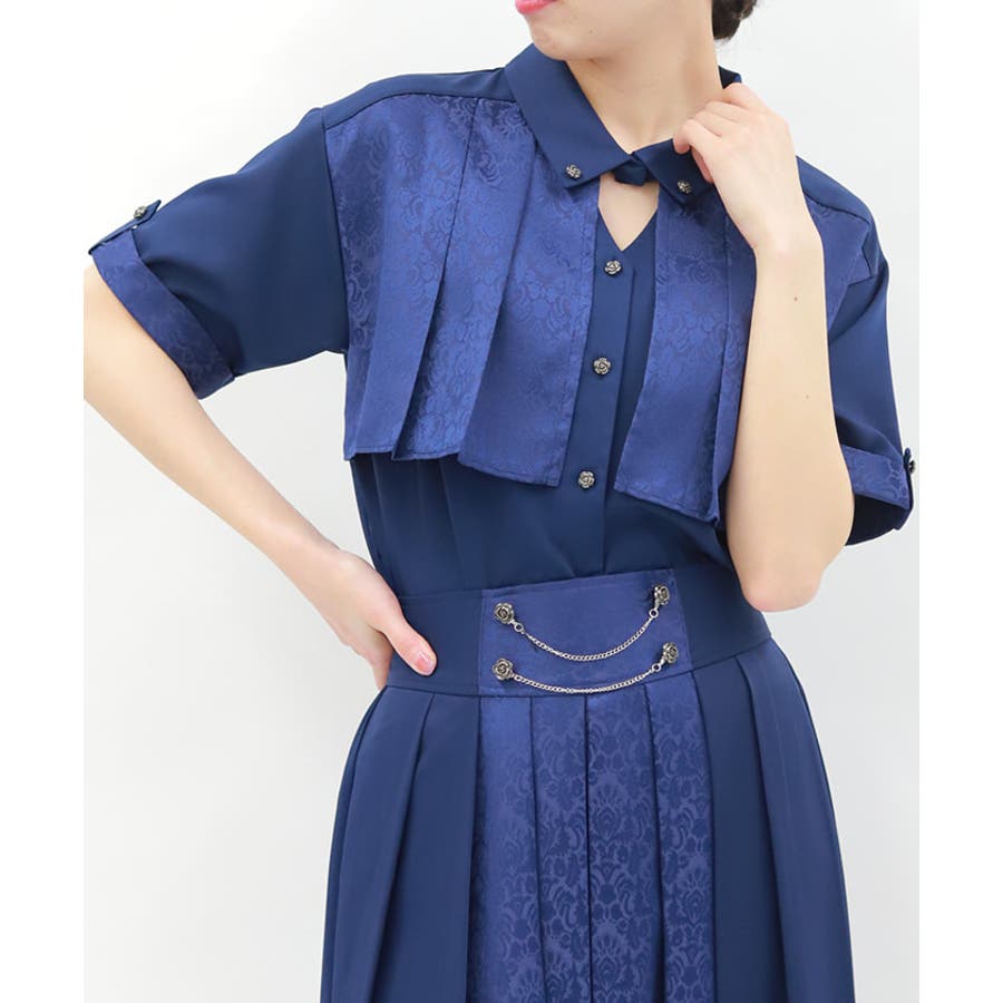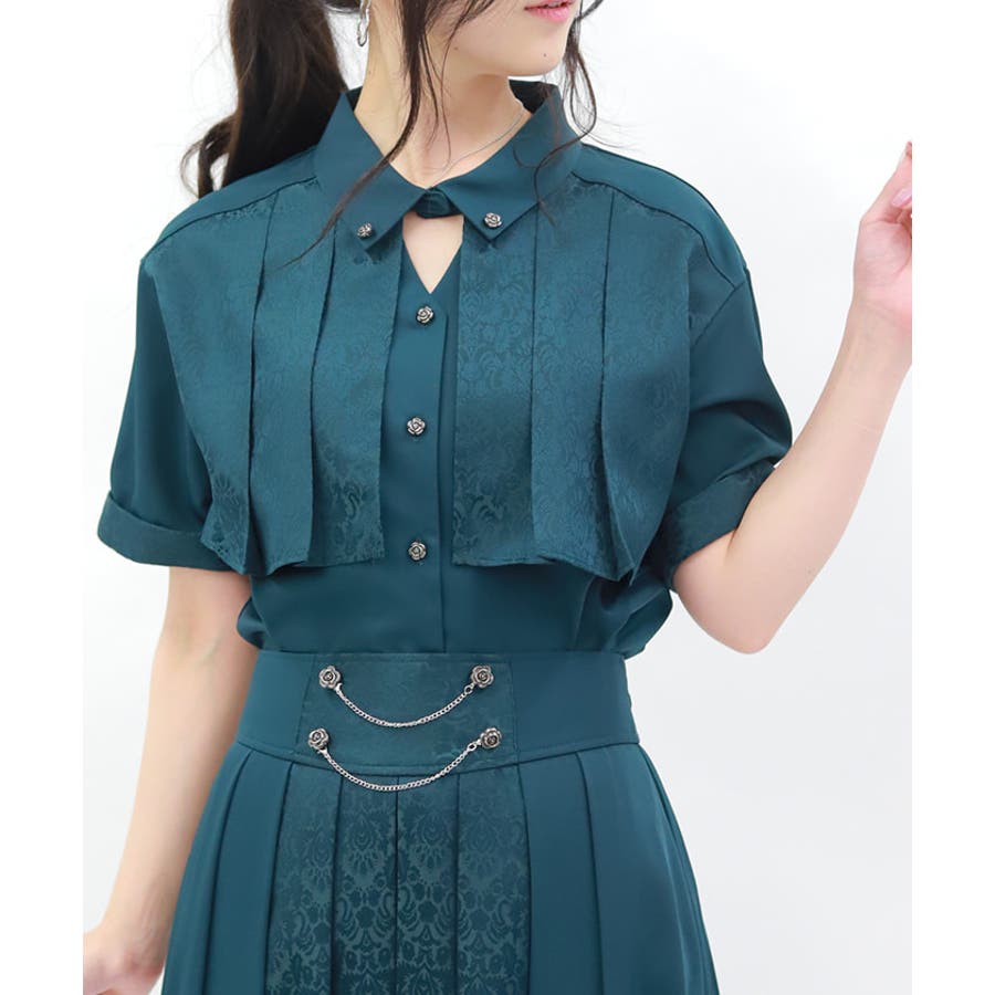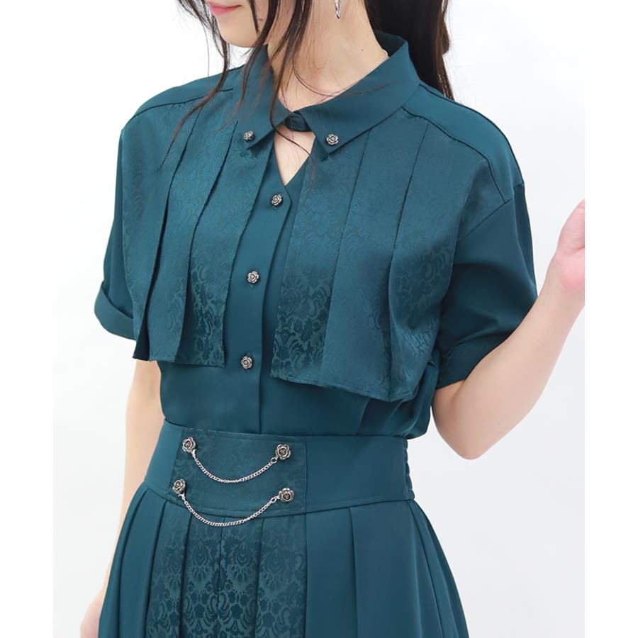 スカートのチェーンは取り外しができるのでブラウスの襟釦に付けてアレンジも◎。