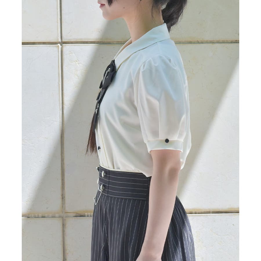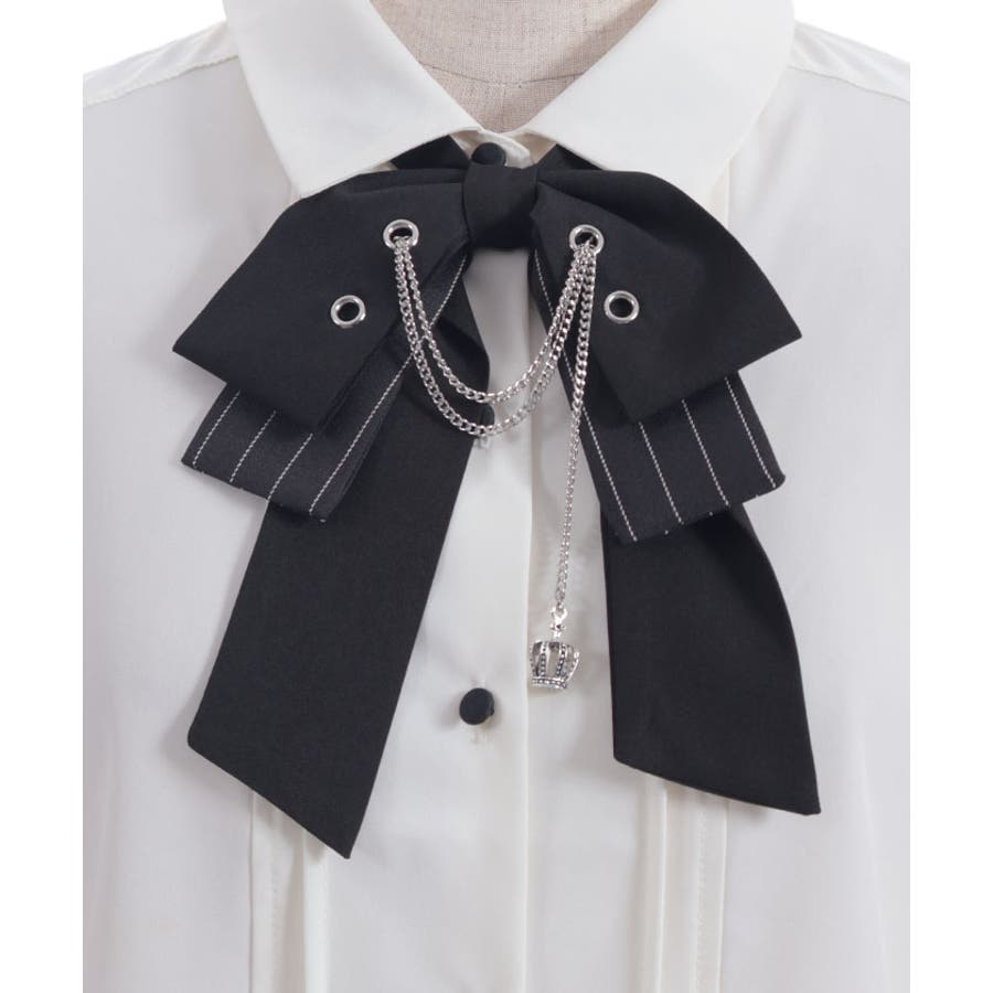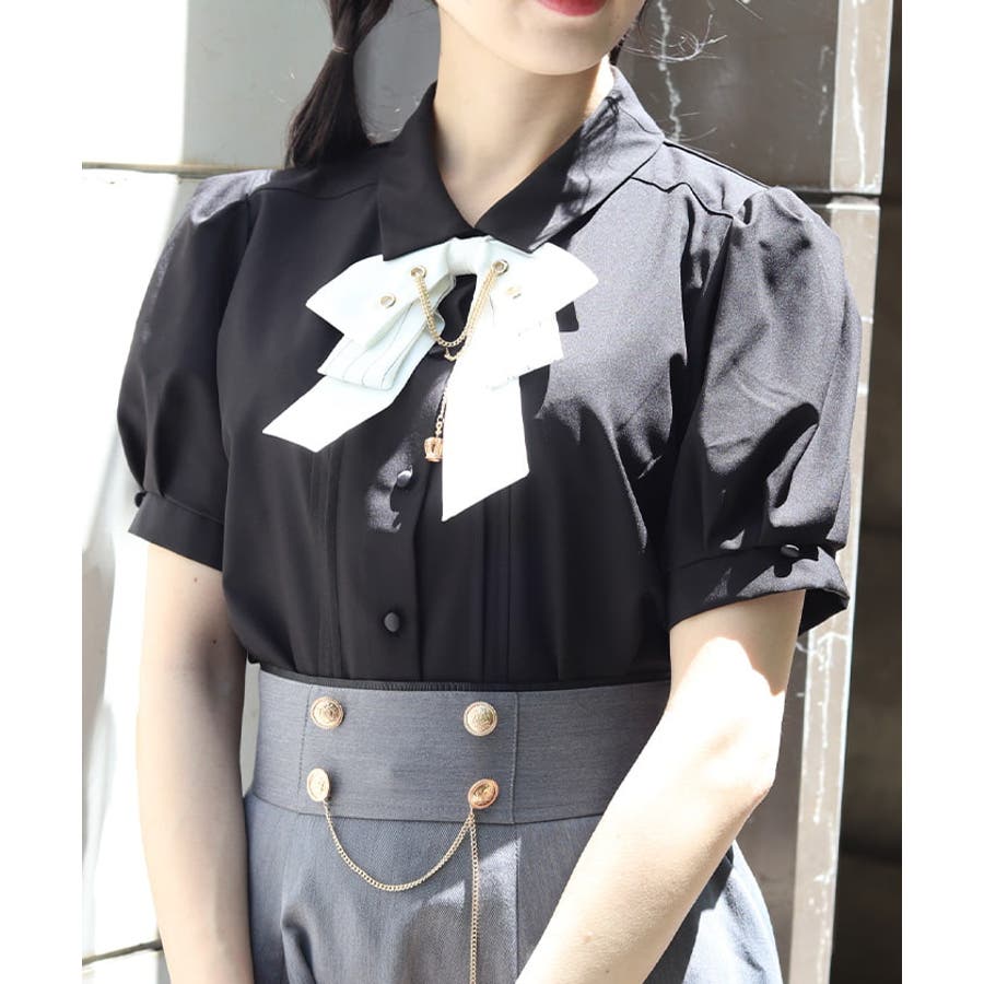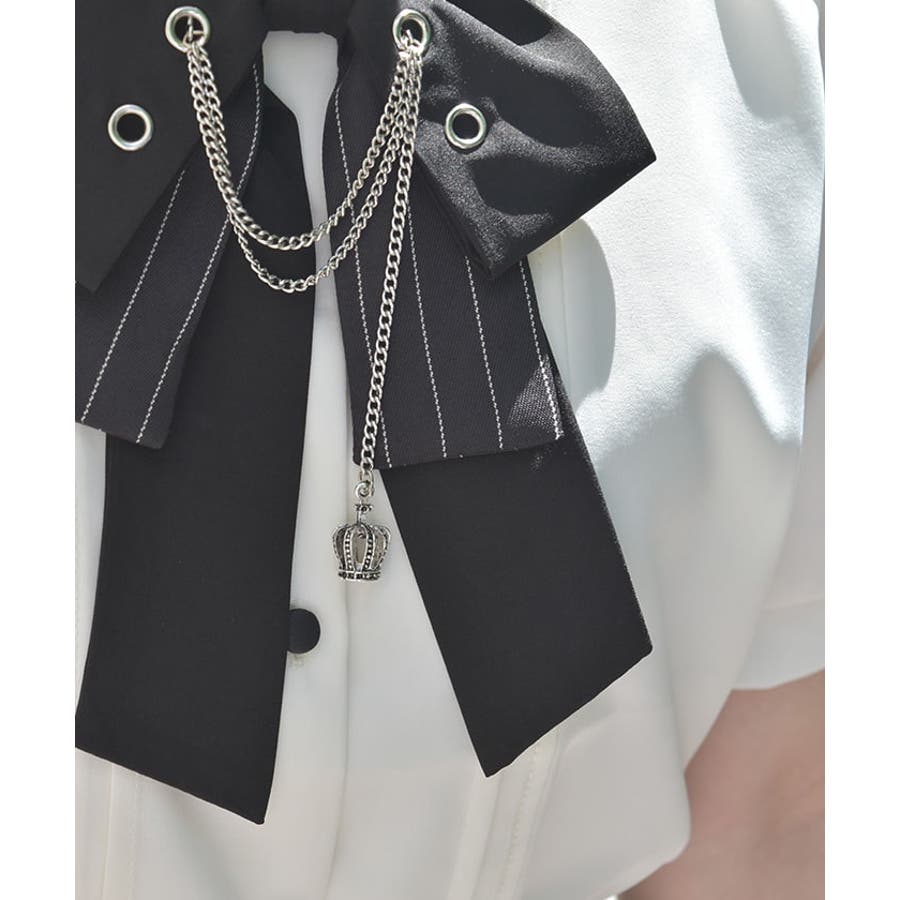 ハトメ×チェーン使いがポイントのリボンが目を惹くブラウス