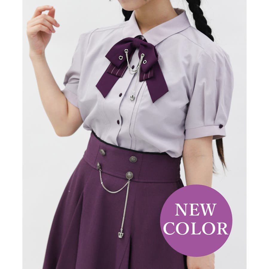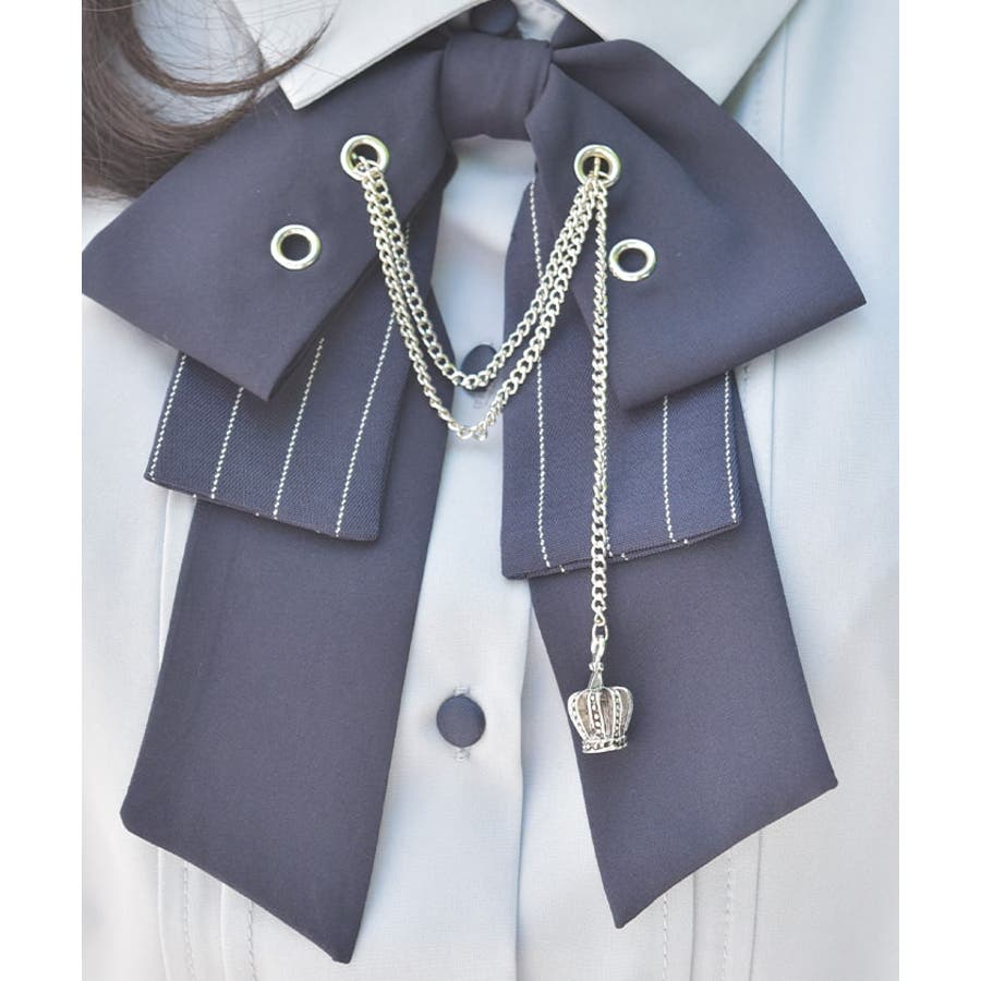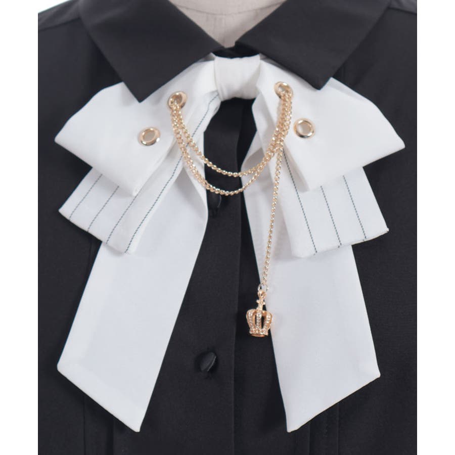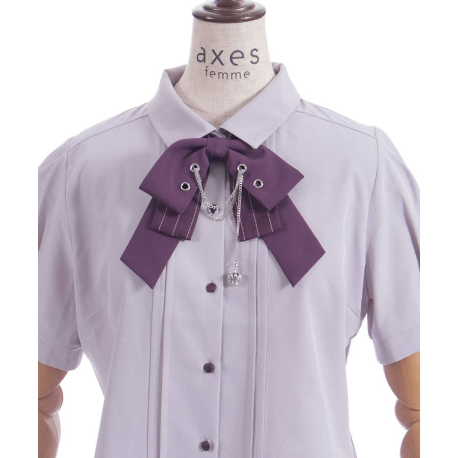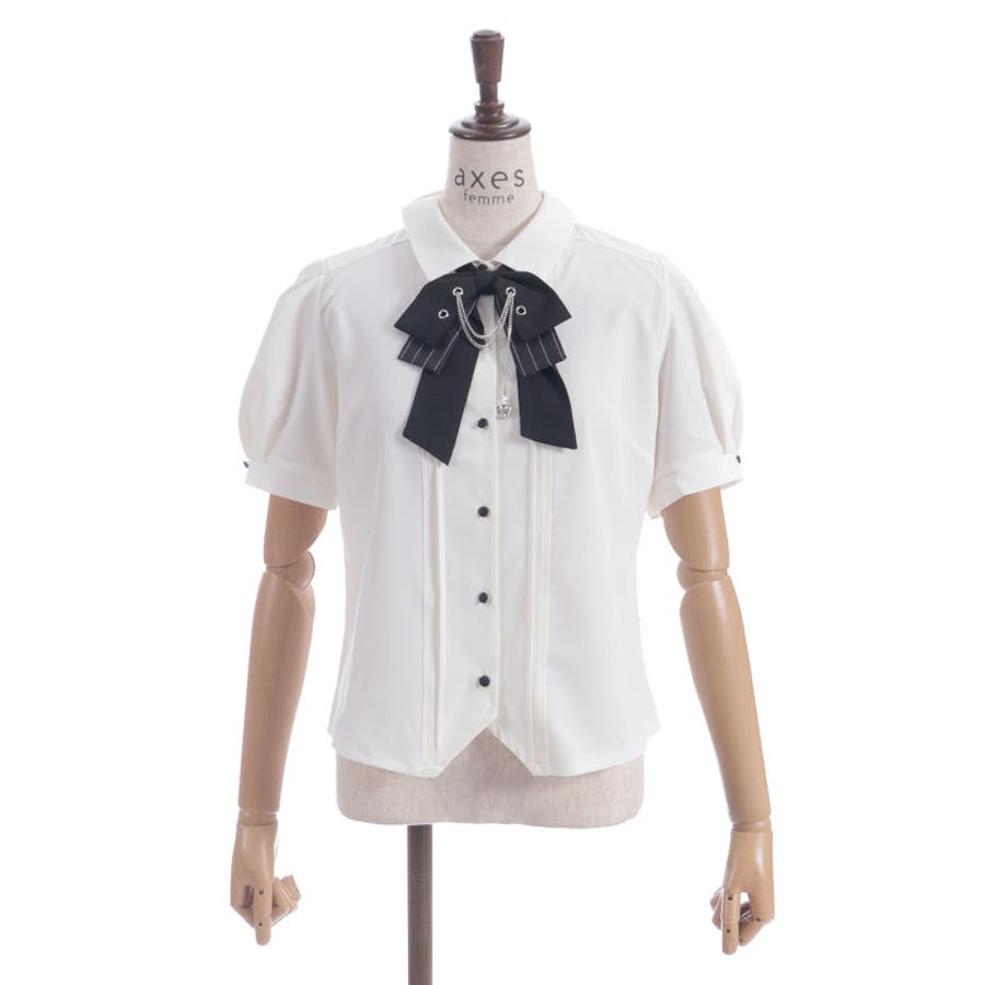 ハトメ×チェーン使いがポイントのリボンが目を惹くブラウス