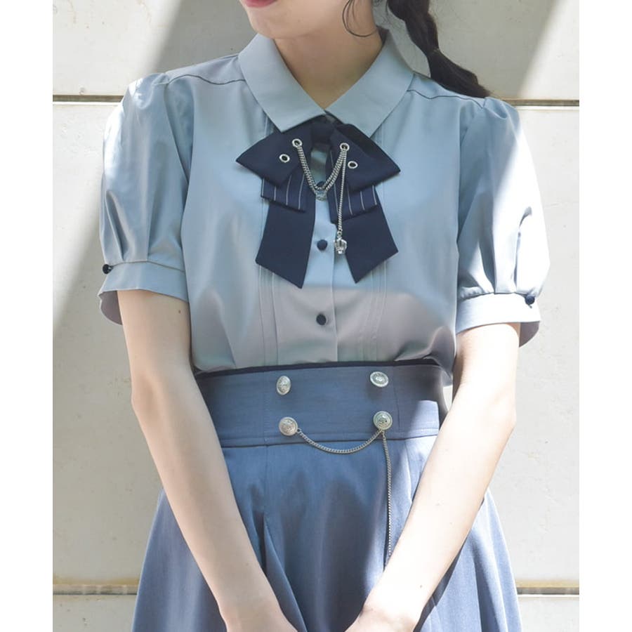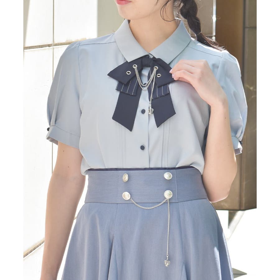 ハトメ×チェーン付リボンブラウス