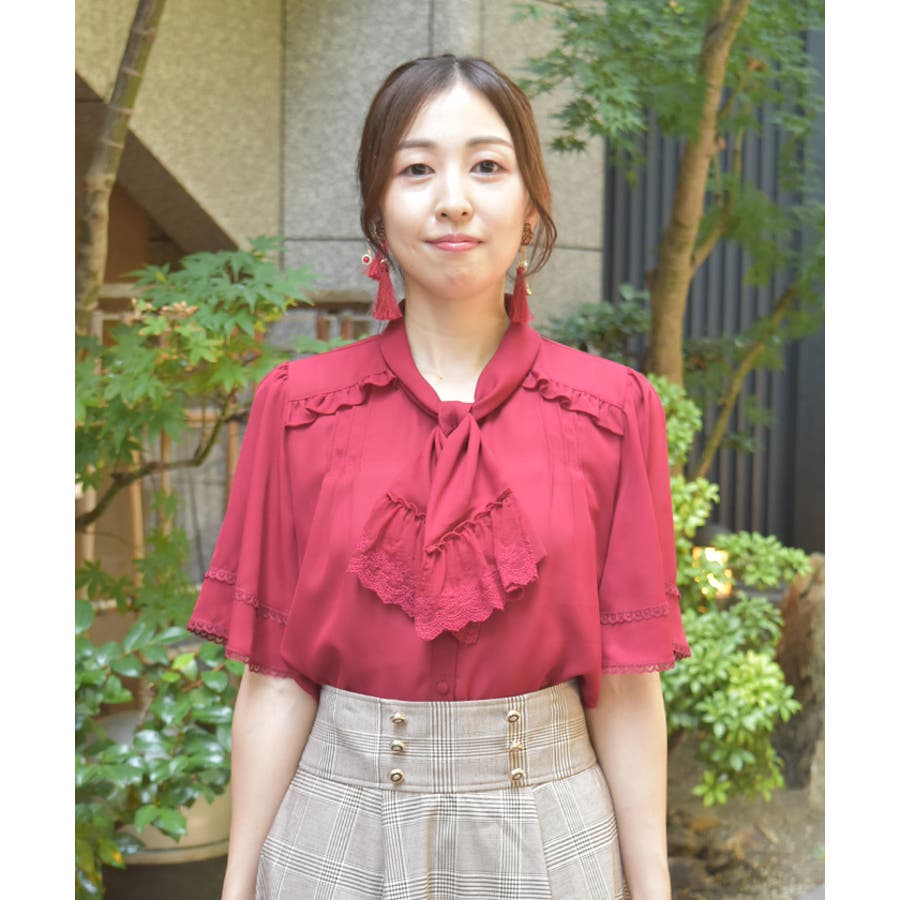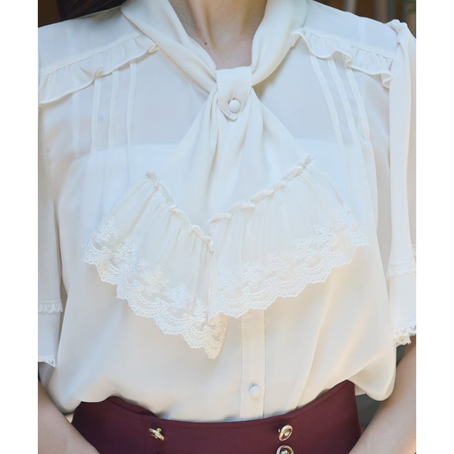 レース使いリボンブラウス