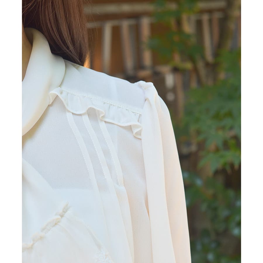 繊細なレースとリボンディテールが目を惹くクラシカルなブラウス。甘すぎない上品さが漂い、フェミニンなムードを高めてくれる一枚です。