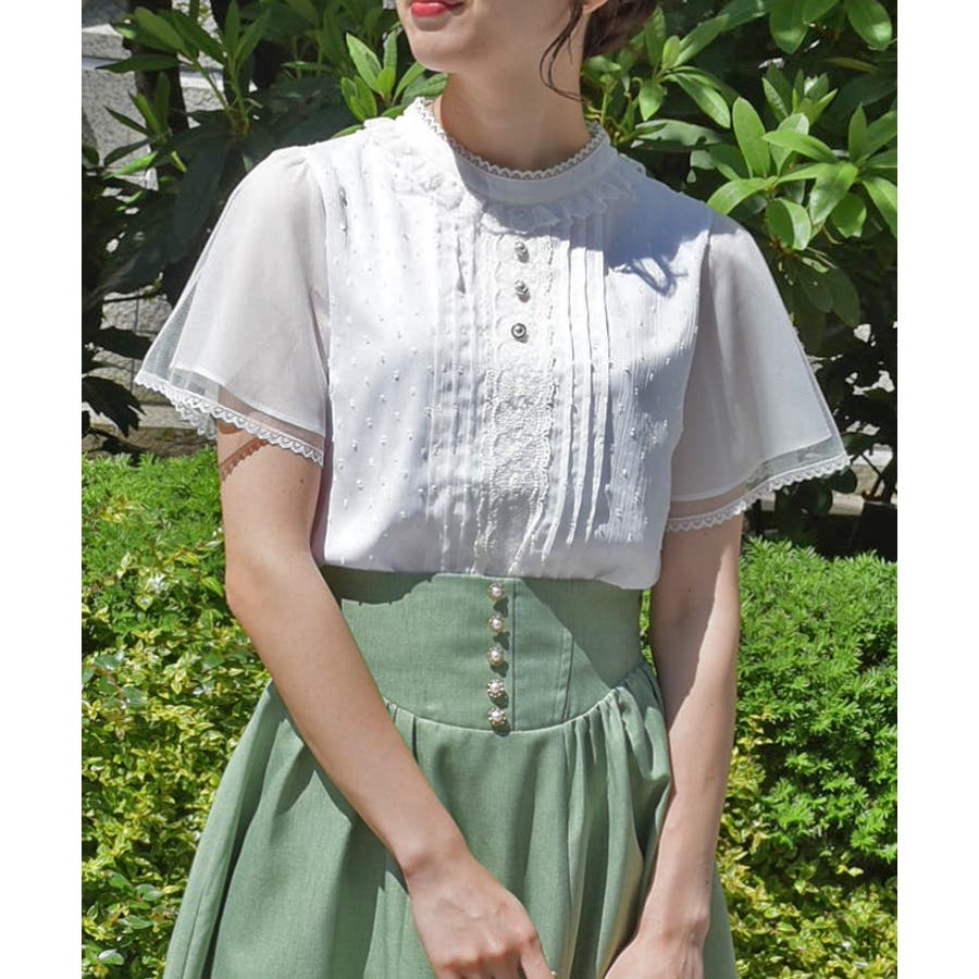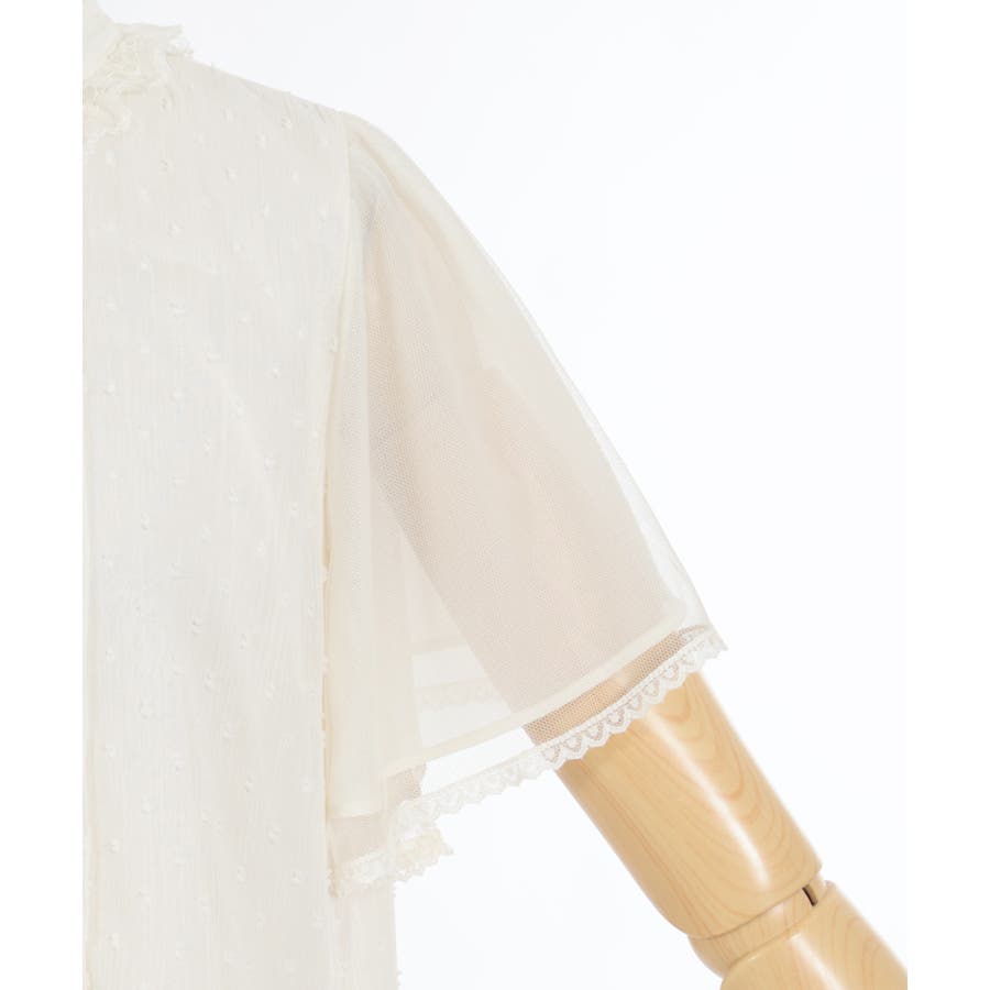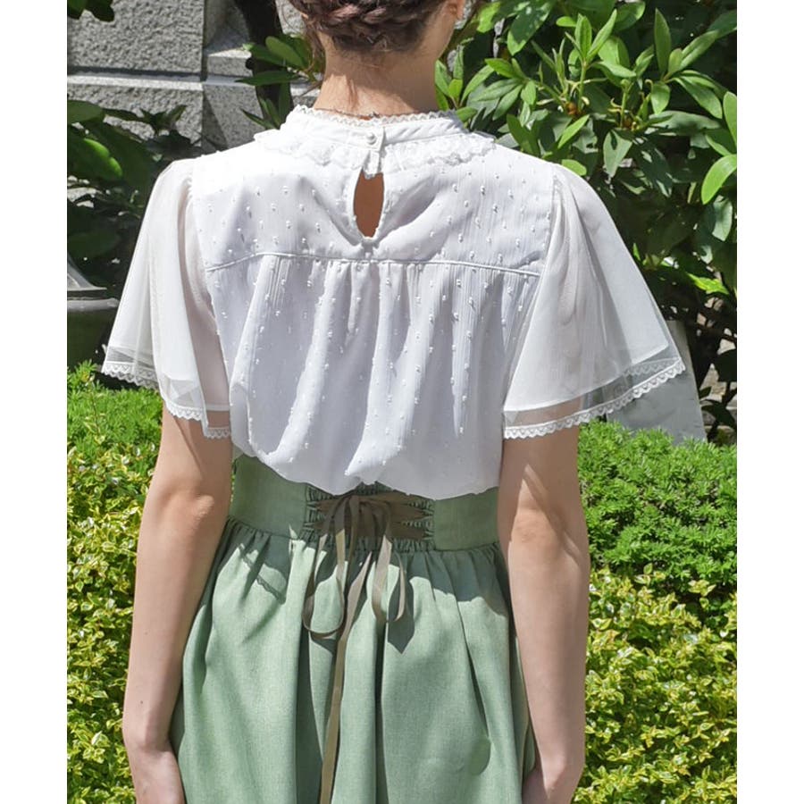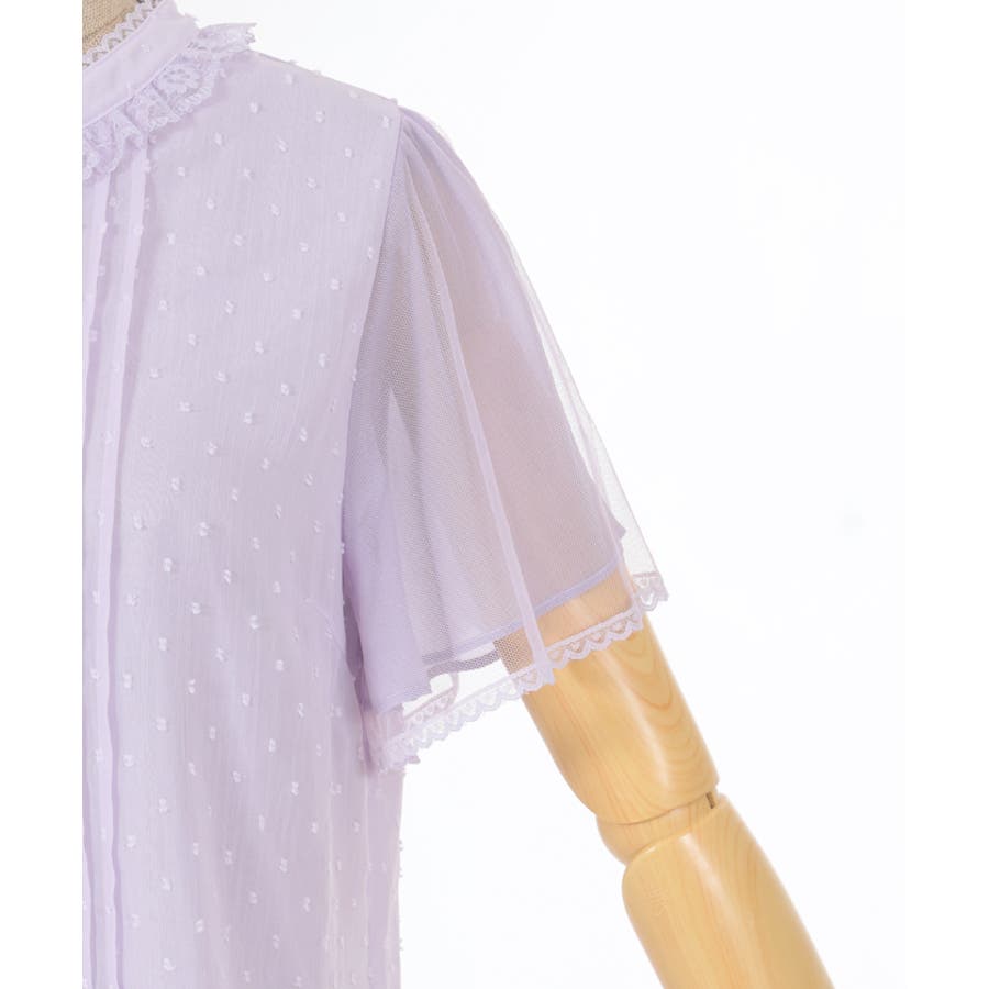 チュールをあしらったフレア袖で暑い季節にも涼し気に着用できるデザインに仕上げました。
