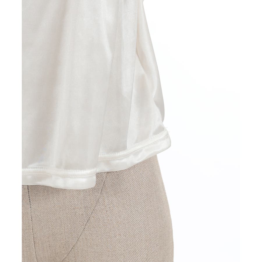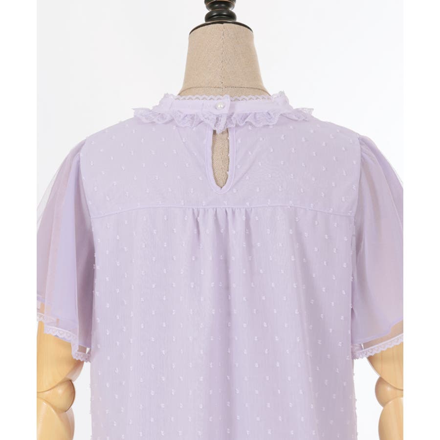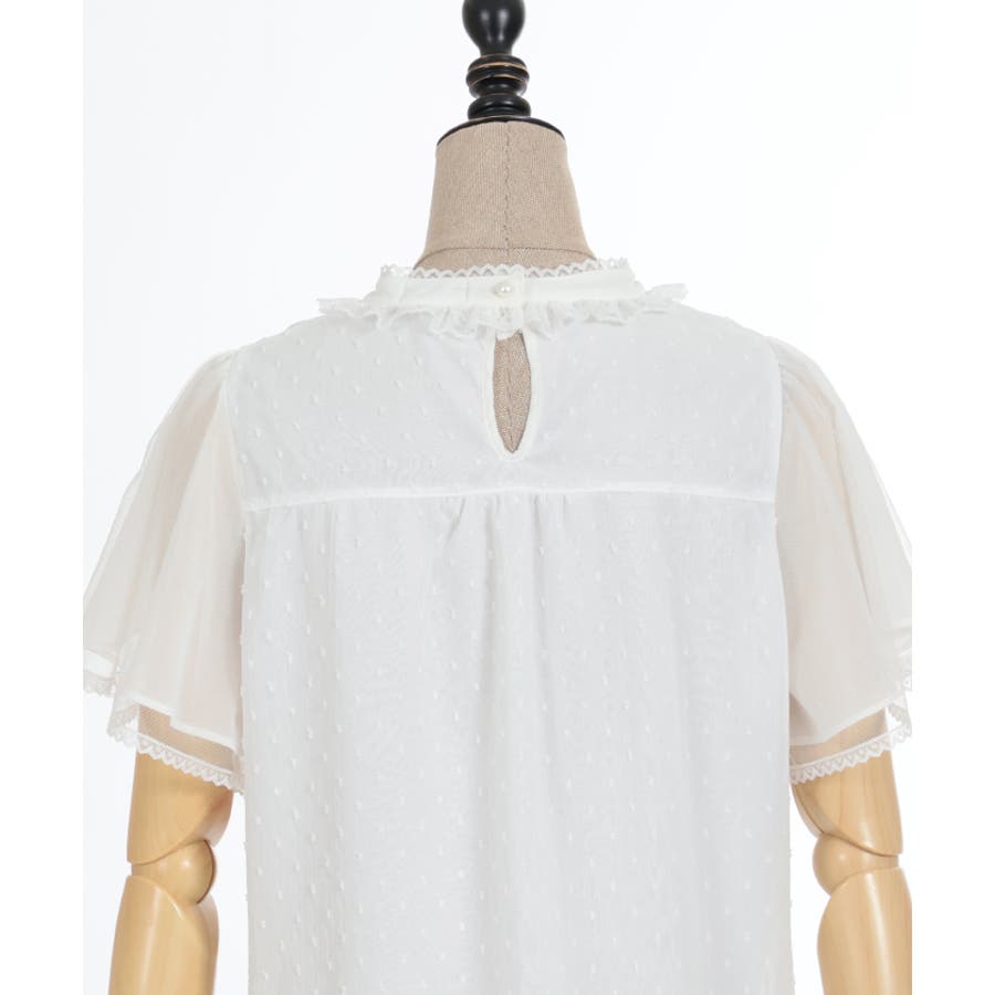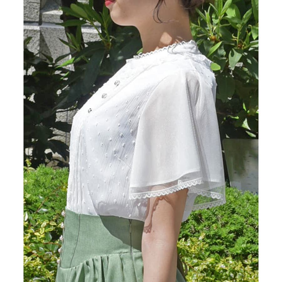 チュールをあしらったフレア袖で暑い季節にも涼し気に着用できるデザインに仕上げました。